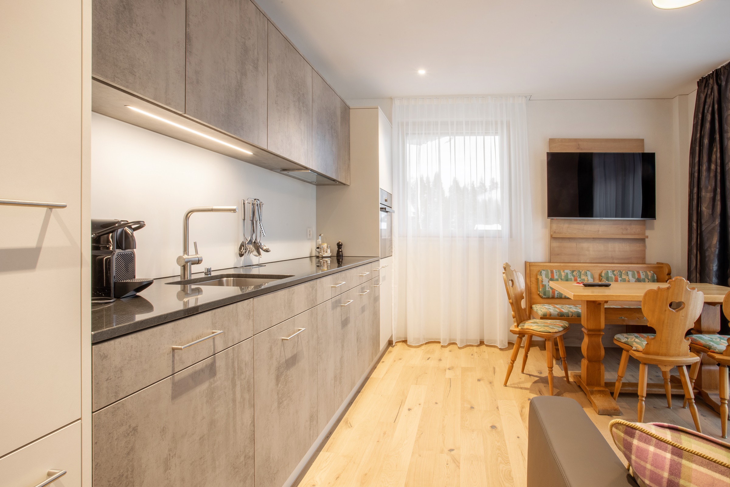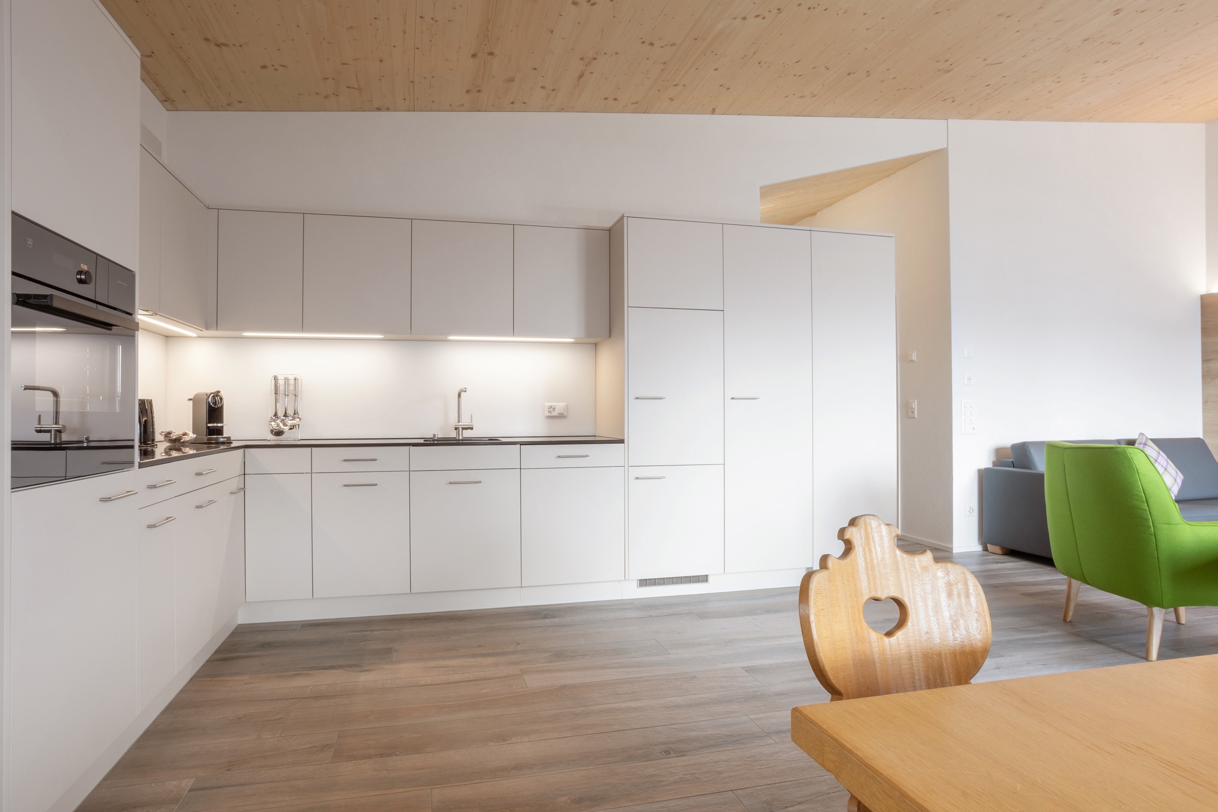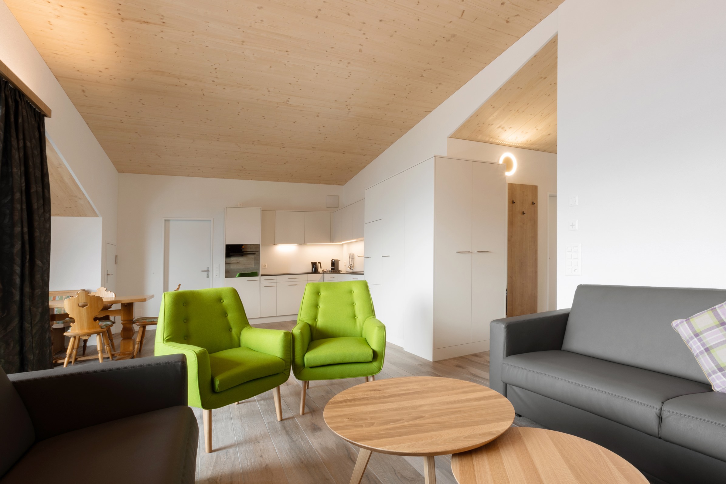 1x 3.5-Zimmer Ferienwohnung Tannenboden #32 (85 m2) Inneneinrichtung Die im Jahr 2020 neu gebauten Ferienwohnungen verfügen alle über einen geräumigen, gemütlichen Wohnraum und einen Balkon. Beide Küchen sind komplett ausgestattet mit Backofen, Elektroherd, Geschirrspüler, Kaffeemaschine, Kühlschrank und Wasserkocher. Die Badezimmer sind mit Dusche, WC, Lavabo und Haartrockner ausgestattet. Technische Einrichtung WLAN in der ganzen Wohnung (kostenlos), TV und Radio sind vorhanden.