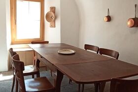Liebe Gäste, wir freuen uns darauf, Ihnen einen wunderschönen Aufenthalt im Herzen der Schweizer Alpen zu bieten. Dieses alte Herrenhaus, das zu Beginn des letzten Jahrhunderts vollständig restauriert wurde, wird Sie überraschen! Für alle Wünsche und Ratschläge stehen wir Ihnen gerne persönlich zur Verfügung! Bitte zögern Sie nicht, uns auch für spezielle Anfragen bezüglich Zeiträumen, Veranstaltungen oder anderem zu kontaktieren, wir sind sehr flexibel! Das Haus ist perfekt für Gruppen oder große Familien, wir nehmen gerne bis zu 10 Gäste auf, plus ein paar kleine Kinder. Mit 5 separaten Schlafzimmern wird jeder seine eigene Privatsphäre und Ruhe haben. Im Laret handelt es sich um ein großes Haus aus der Gründerzeit, das sich im alten Dorfkern befindet und einen weiten Panoramablick auf die umliegenden Täler und Berge bietet. Die große Terrasse ist von morgens bis mittags sonnig, während der erhöhte Garten bis in den späten Abend hinein Sonne bietet. Durch die Fenster kann man den großen Brunnen sehen und das Wasser des Flusses fließen hören. Jedes Schlafzimmer ist komplett mit Zirbenholz getäfelt, was eine einzigartige, natürliche und gemütliche Atmosphäre schafft. Die erste Stube heißt Stüve, ist ganz aus Holz und mit einem großen Kachelofen ausgestattet, der perfekte Ort, um Tee zu trinken und sich vom Holz und dem Geschmack der alten Eleganz dieses herrschaftlichen Hauses verwöhnen zu lassen. Die Küche und das angrenzende Esszimmer haben glatte weiße Gewölbedecken und dunkle Natursteinböden. In der Küche finden Sie einen großen neuen Kühlschrank, einen Geschirrspüler, einen Backofen und verschiedene Utensilien, mit denen Sie jede Köstlichkeit zubereiten können. Die große Eingangshalle, Suler, verspricht Ihnen einen kühlen Platz zum Ausruhen im Sommer und einen großen Eingangsbereich im Winter, nicht besonders beheizt, aber perfekt zum Umziehen und Ablegen von Kleidung für Ihre Abenteuer in den umliegenden Wäldern. Wir lieben es, morgens in der Sonne auf der Terrasse zu frühstücken und dabei das Panorama, den Fluss und den bukolischen Blick auf das Dorfleben zu genießen. Das Dorf bietet ein begehrtes Angebot an künstlerischen und kulturellen Aktivitäten und das Tal ist bekannt für seine unendlichen Möglichkeiten für Sport im Freien. Zum Schwimmen empfehlen wir den Teich von Ftan oder den Teich von Tarasp unterhalb des Schlosses Not Vital. Das Tal ist ideal für Radtouren oder wunderschöne Wanderungen.