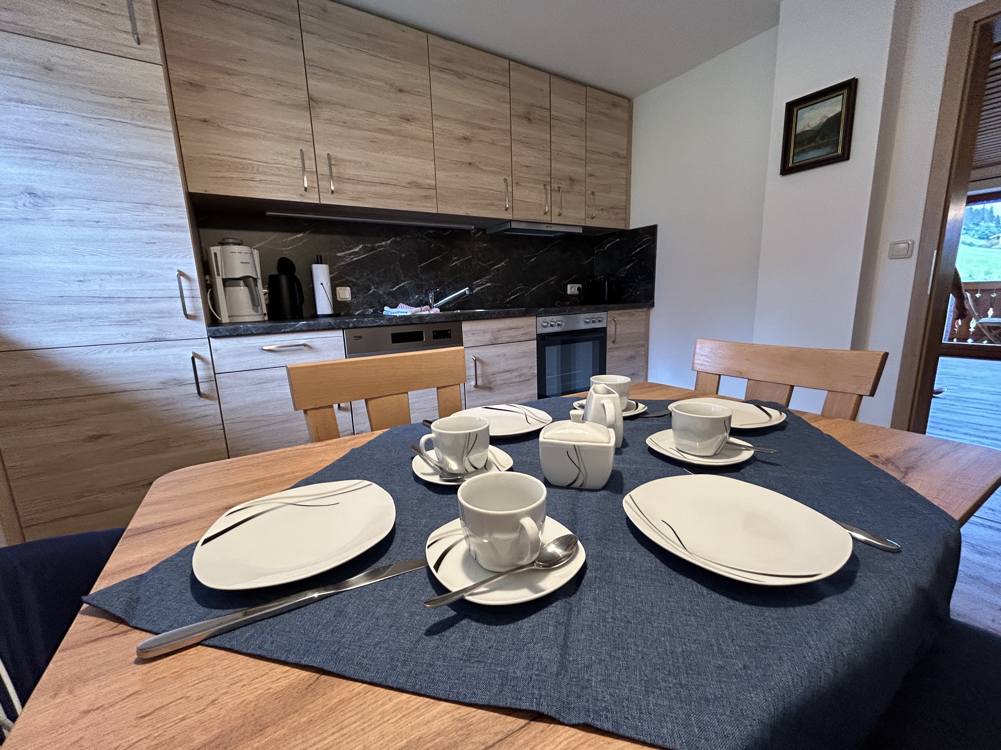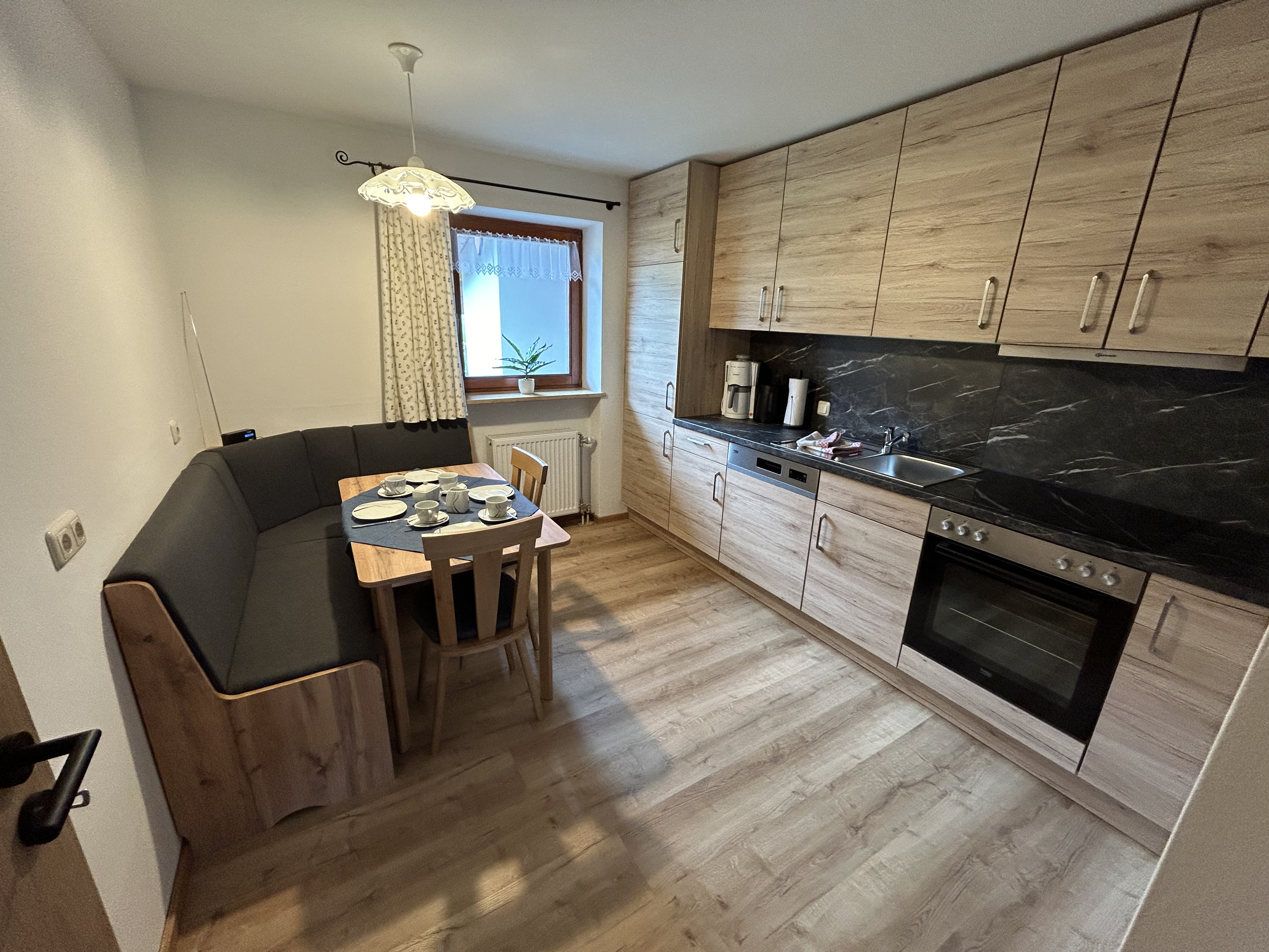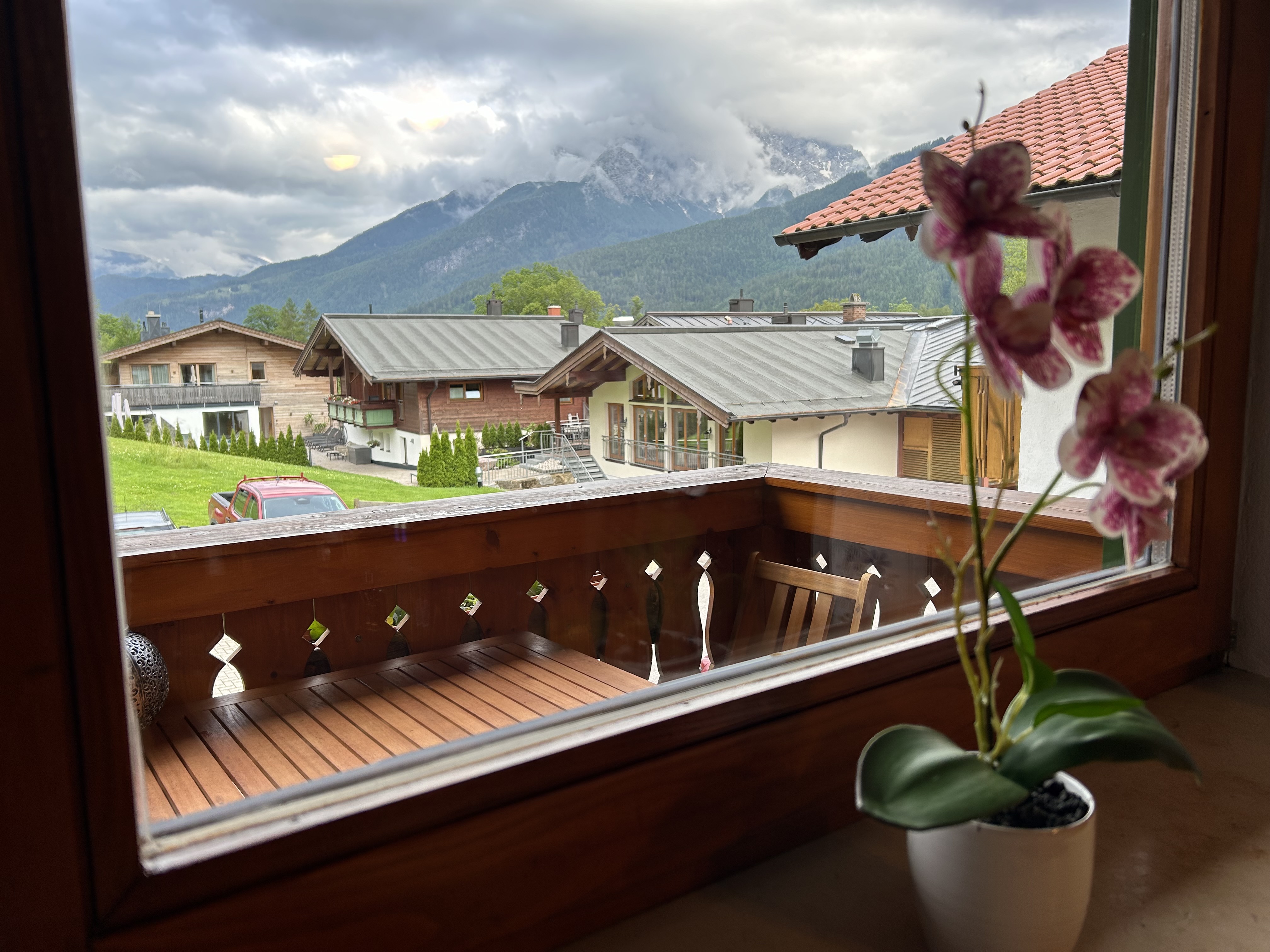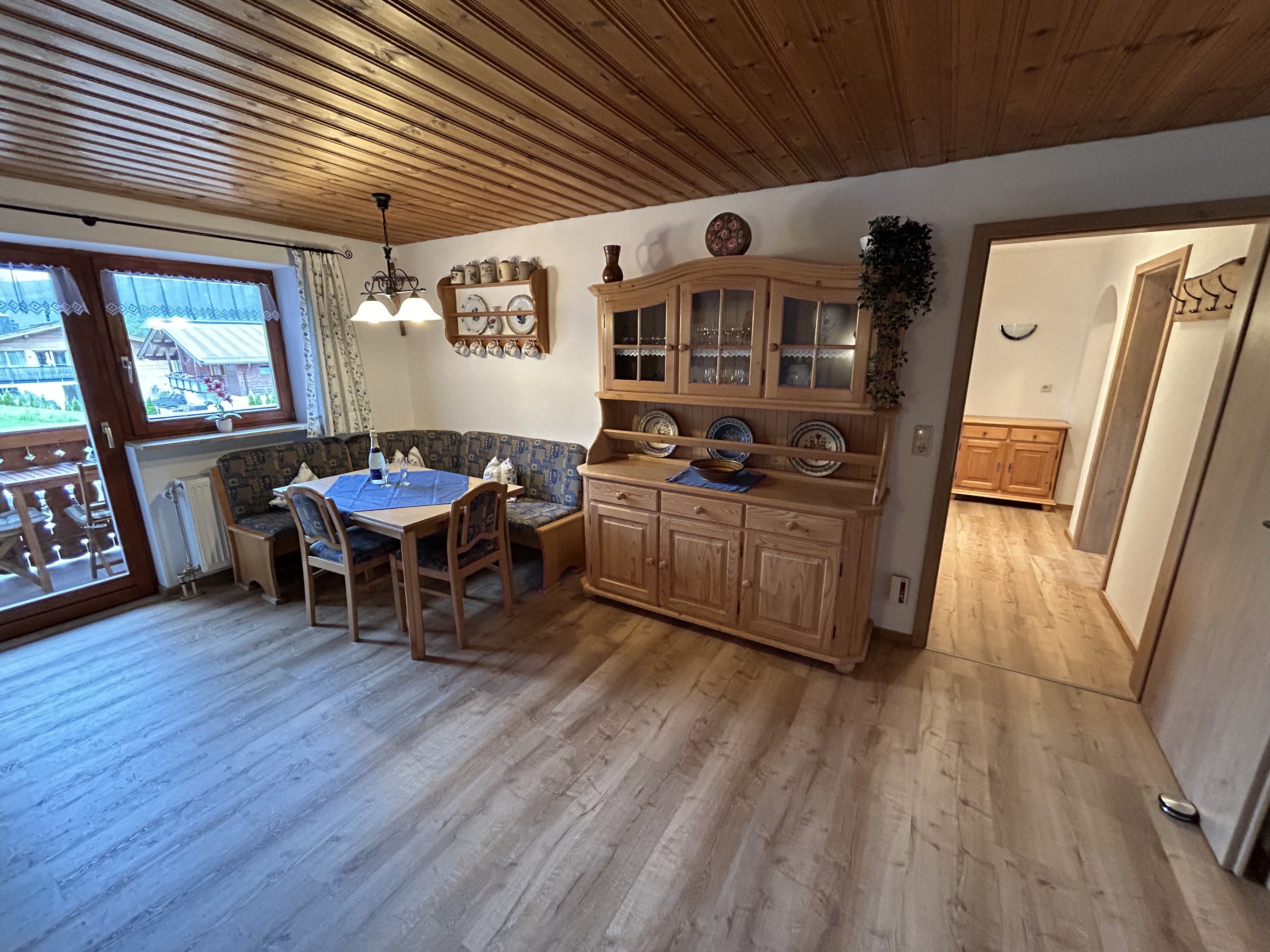 Diese Ferienwohnung bietet Platz für 1-4 Personen auf einer Fläche von 62 qm. Sie verfügt über ein Wohnzimmer, eine Küche, zwei Schlafzimmer und ein Bad mit Dusche und WC. Der Balkon liegt auf der Ostseite und bietet einen herrlichen Blick auf den Watzmann. Suchen Sie eine gemütliche Ferienwohnung in schöner Atmosphäre mit herrlichem Gebirgsblick? Dann werden Sie sich bei uns wohlfühlen. . Das Wohnzimmer ist mit einer Eckbank, einem Sofa und einem TV-Gerät ausgestattet. In der separaten Einbauküche finden Sie einen Ceranfeldherd, eine Spülmaschiene, einen Backofen, einen Dunstabzug, einen Kühlschrank mit Gefrierfach, eine Kaffeemaschine, einen Wasserkocher und einen Toaster. Eine Eckbank mit Tisch und zwei Stühlen sowie ein Radio sind ebenfalls vorhanden. Die beiden Schlafzimmer bieten insgesamt vier Betten, Bettwäsche ist inklusive. Zudem gibt es ausreichend Kleiderschränke für Ihre Garderobe. Das Bad ist mit einer Duschkabine, einem WC und einem Badspiegel mit LED-Beleuchtung ausgestattet. Handtücher und ein Föhn stehen Ihnen ebenfalls zur Verfügung. Die neue, sehr schöne Ferienwohnung befindet sich im 1. Stock und verfügt über einen Balkon zur Ostseite. Hier können Sie die Ruhe und den atemberaubenden Blick auf die Berge genießen.