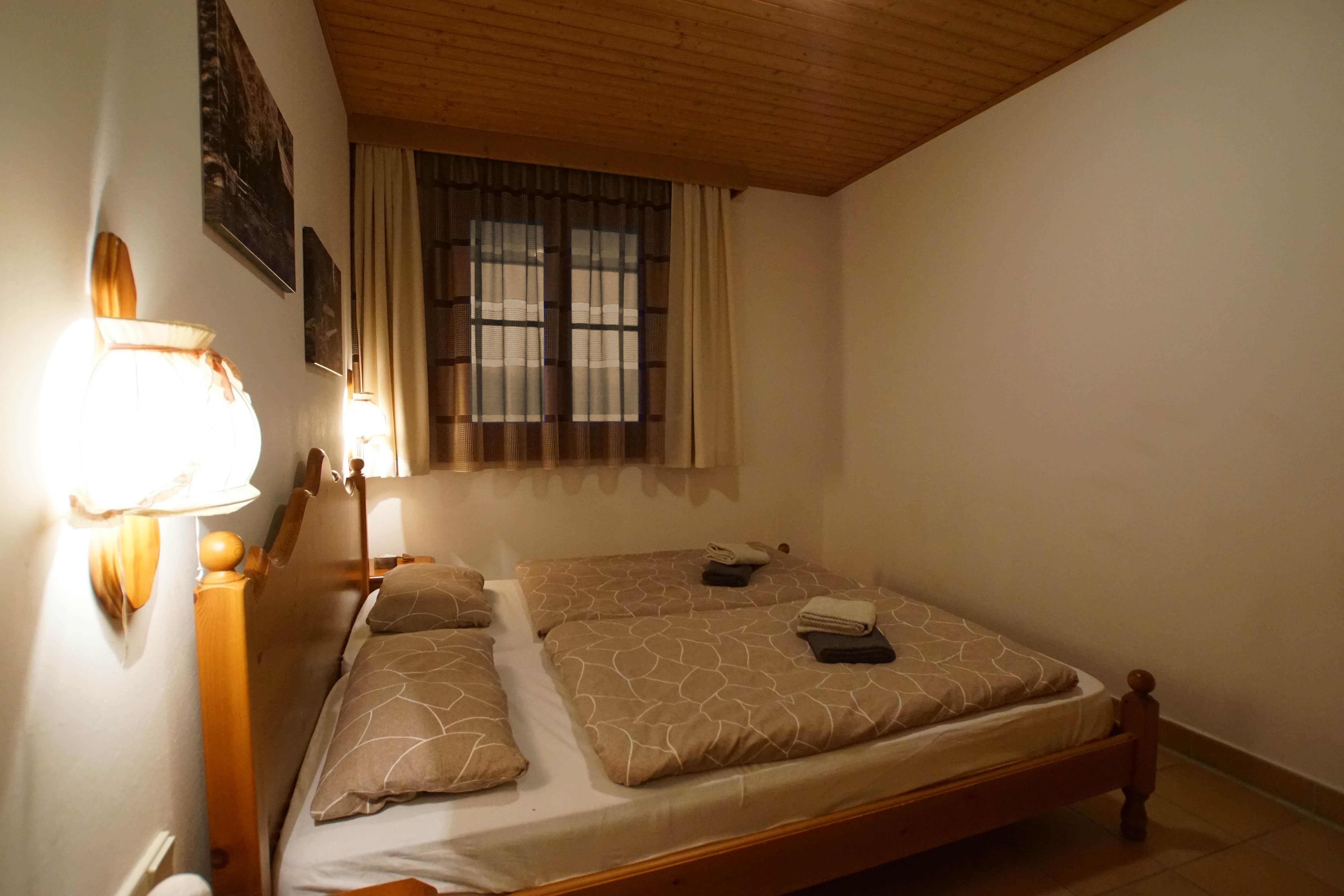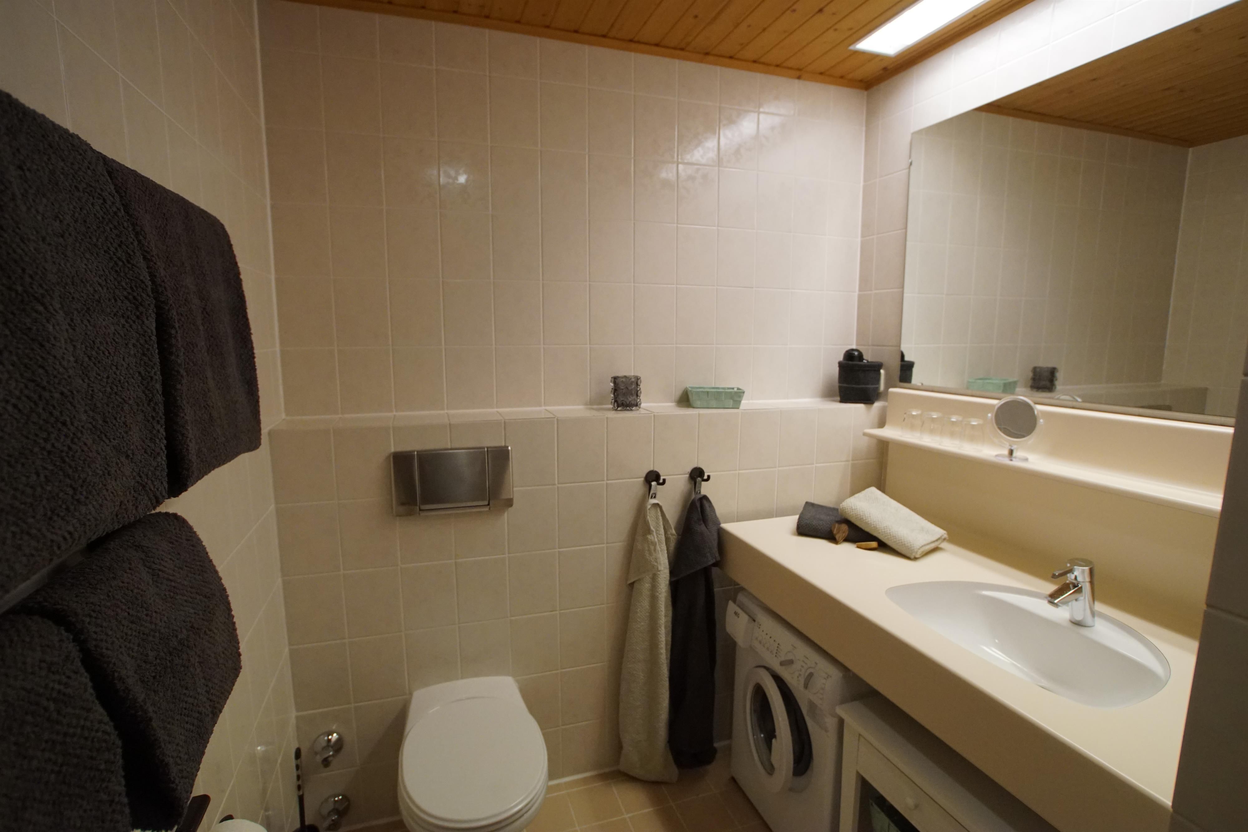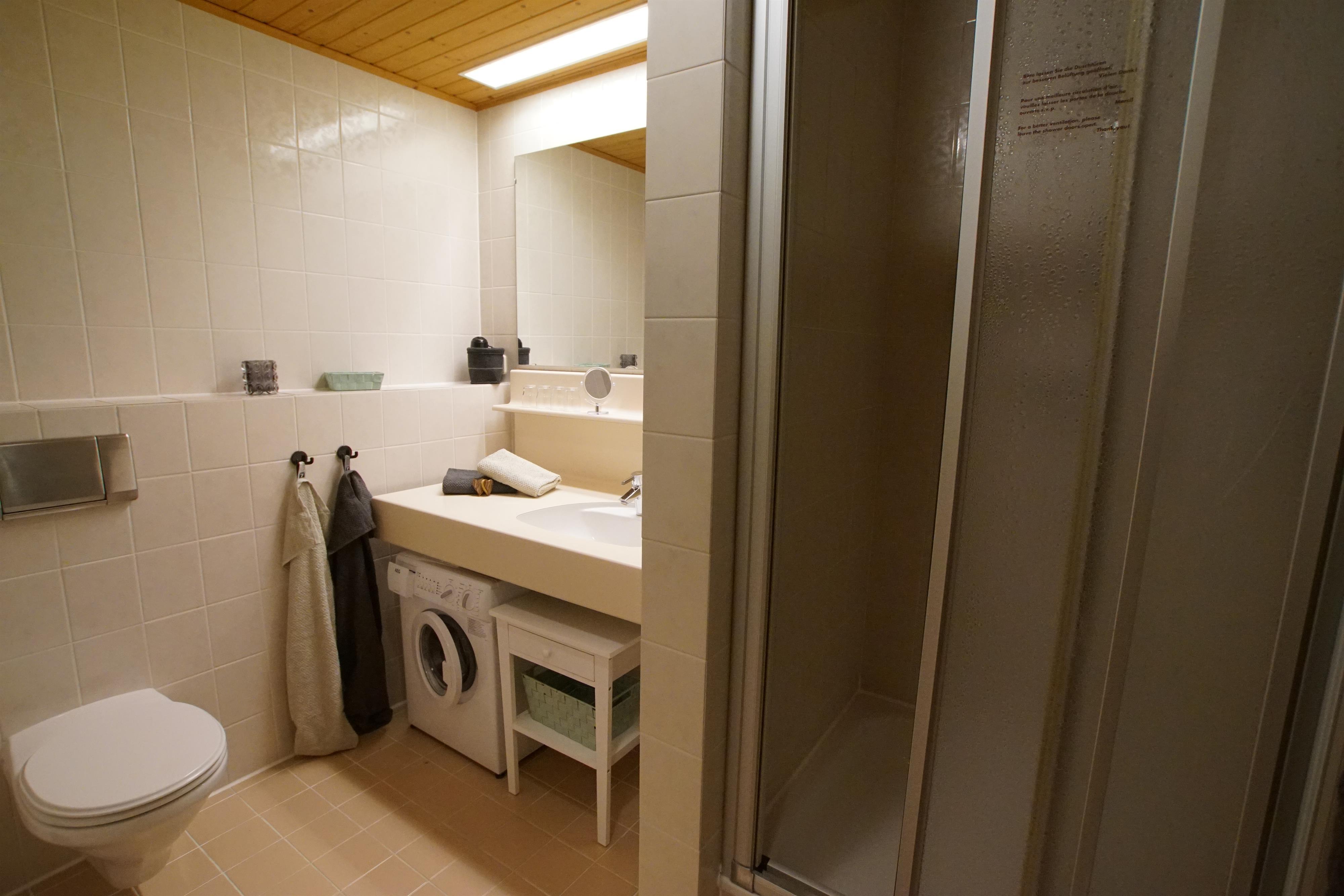 In dem in den Hang gebauten Gebäude befindet sich das Apartment im 1. Untergeschoss.