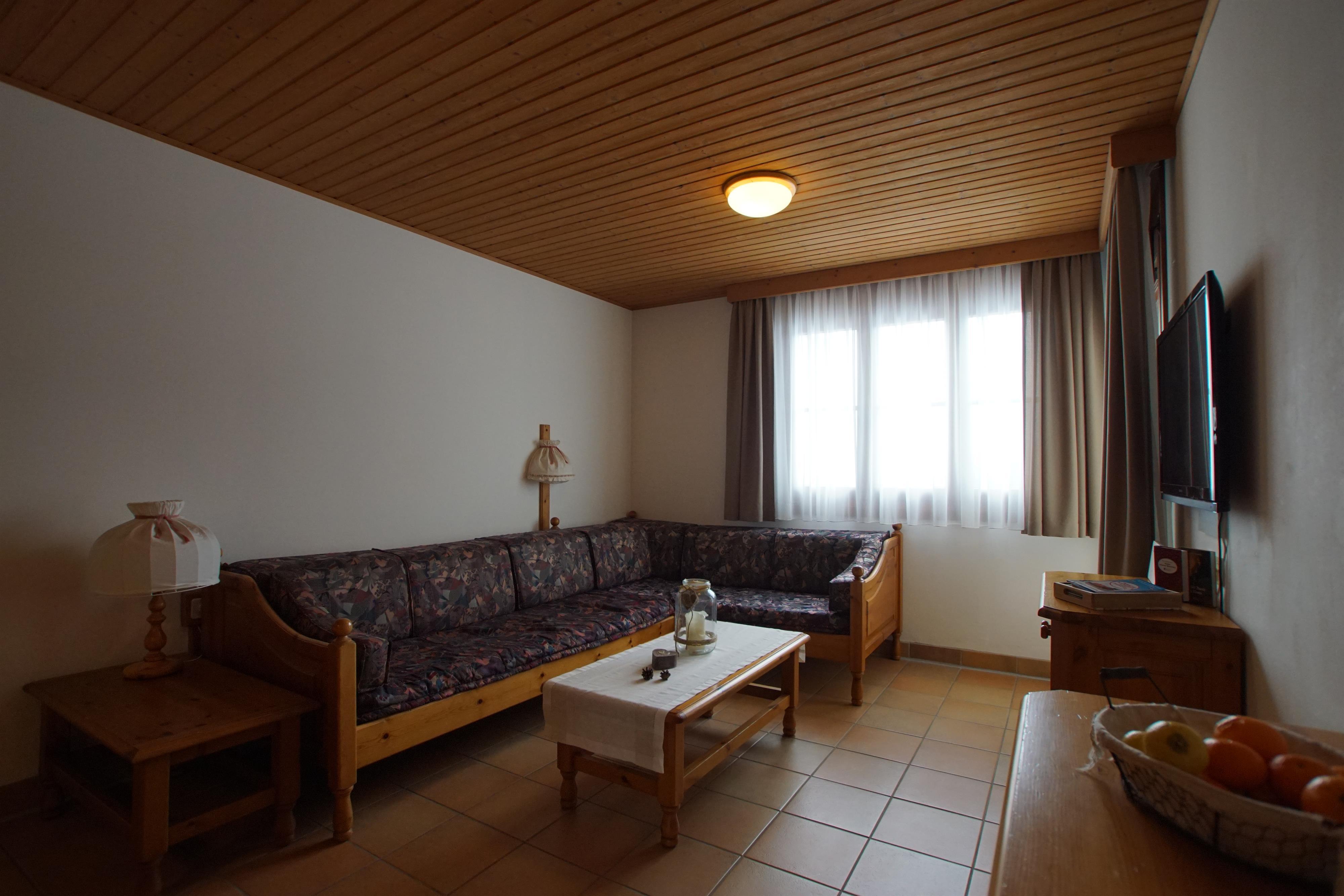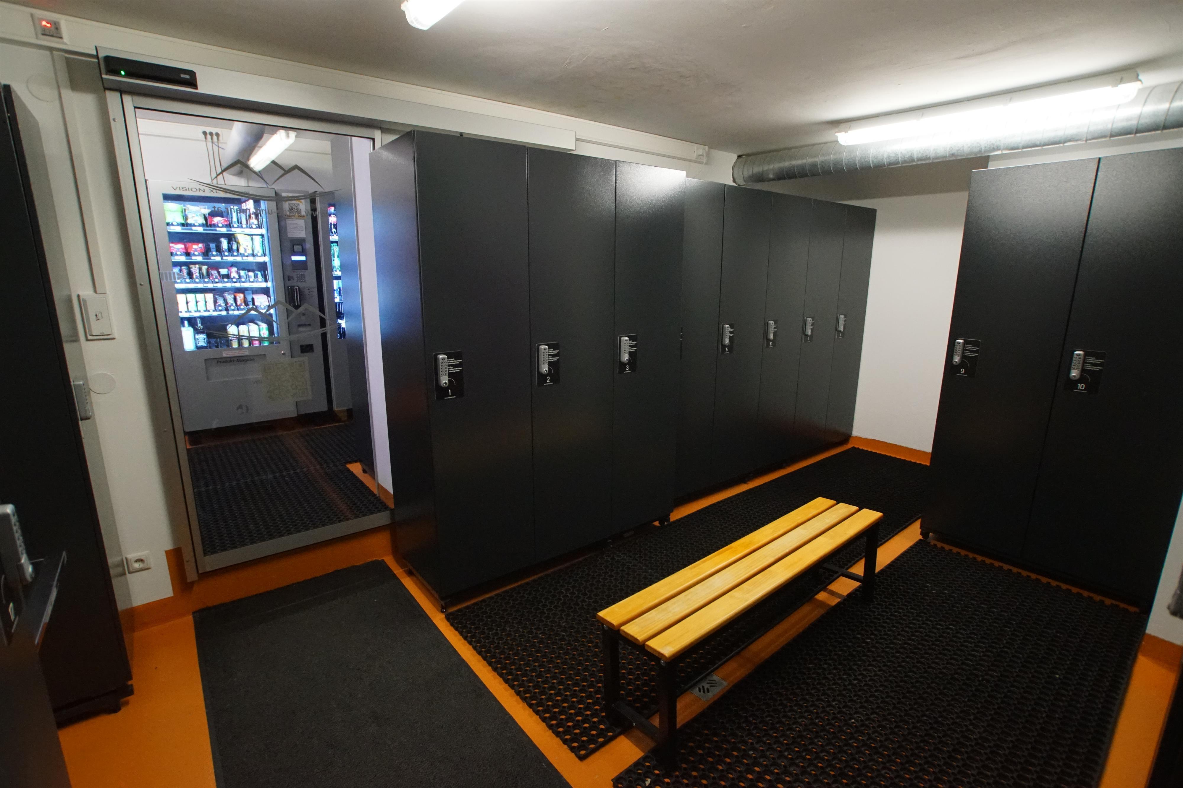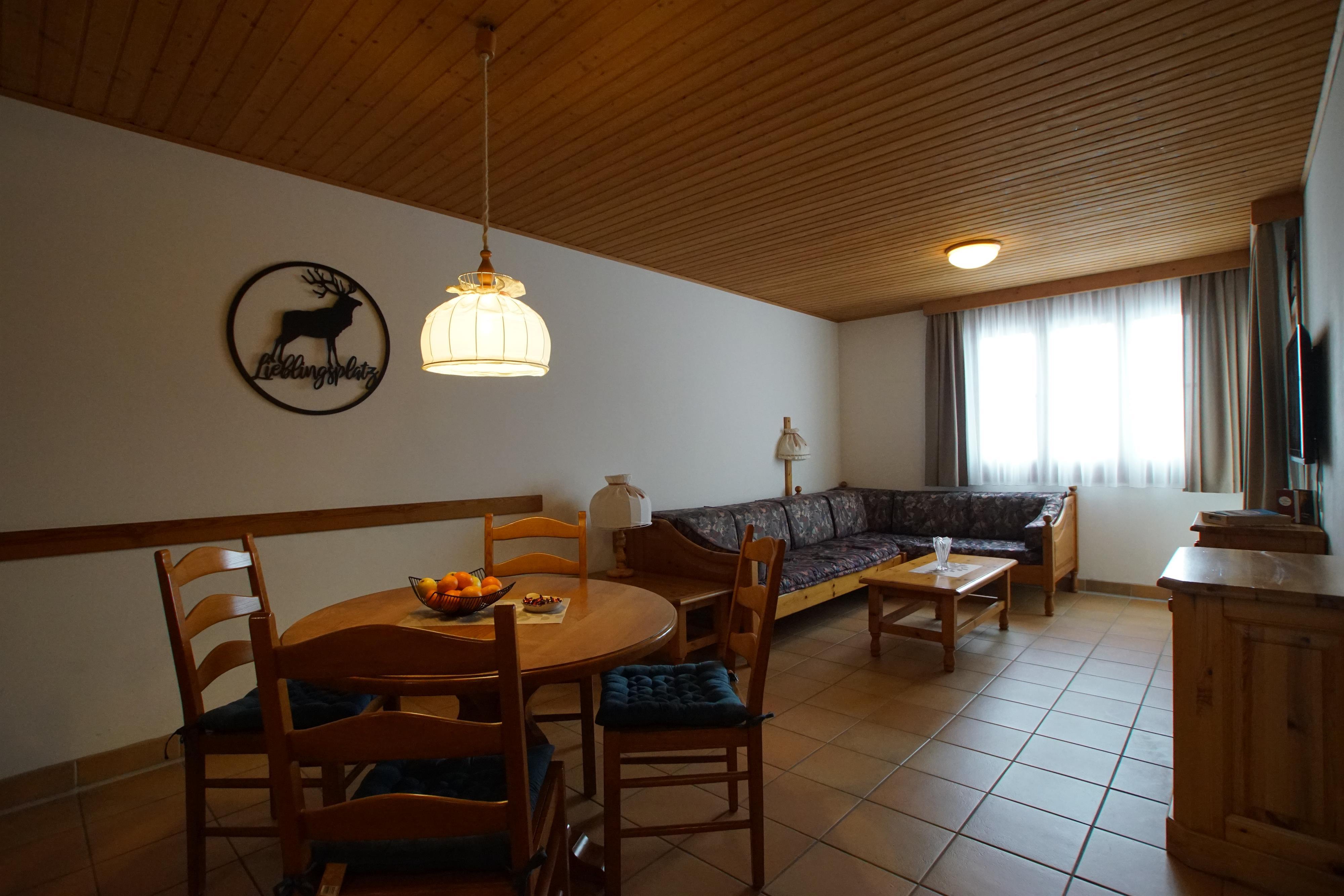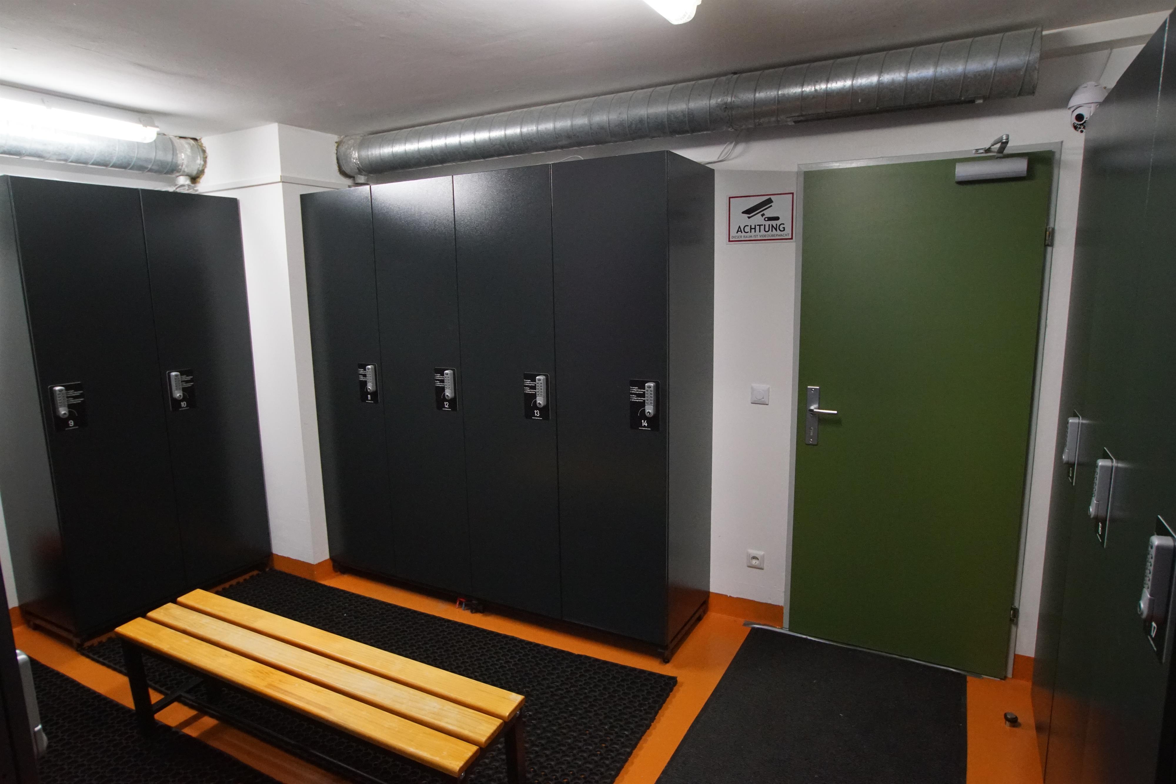 In dem in den Hang gebauten Gebäude befindet sich das Apartment im 1. Untergeschoss.