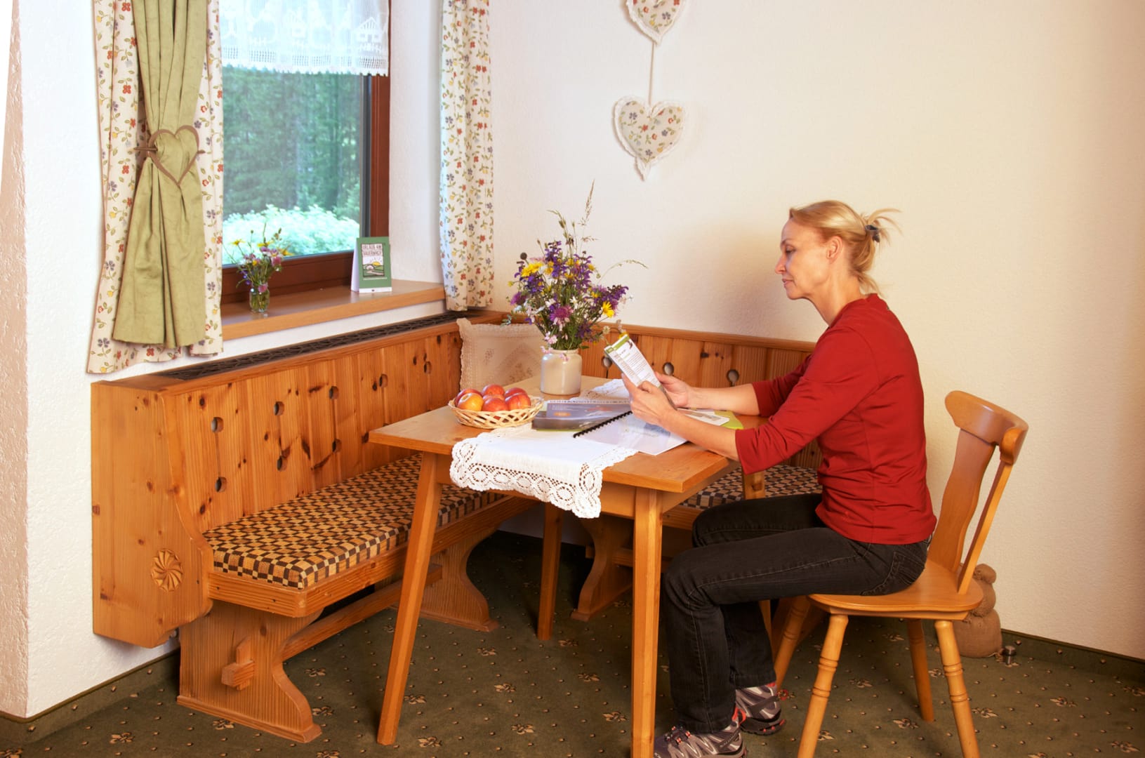Raus aus der Kälte - rein in die Wärme, in der Heustadelsauna oder bei einer herrlich duftenden Tasse Tee bewusst entspannen und die Seele baumeln lassen. Gemütlich in der Stube sitzen und einfach lesen, oder den Tanz der Schneeflocken beobachten - bewusst Natur erleben. Berghof am Schwand - hier werden Winterträume wahr!