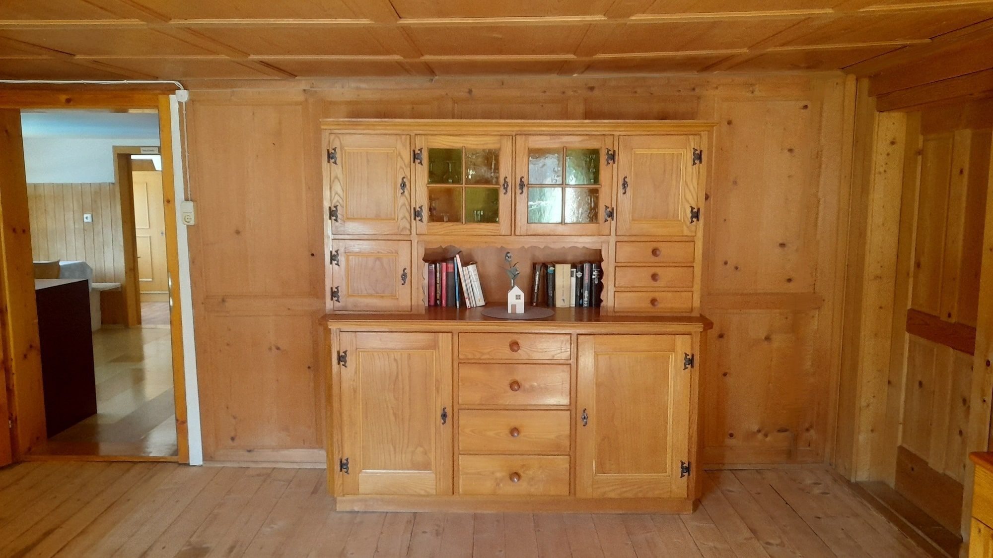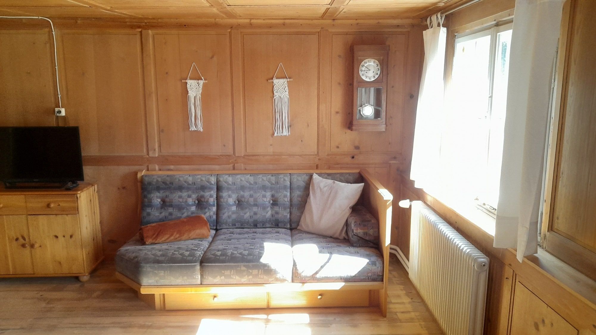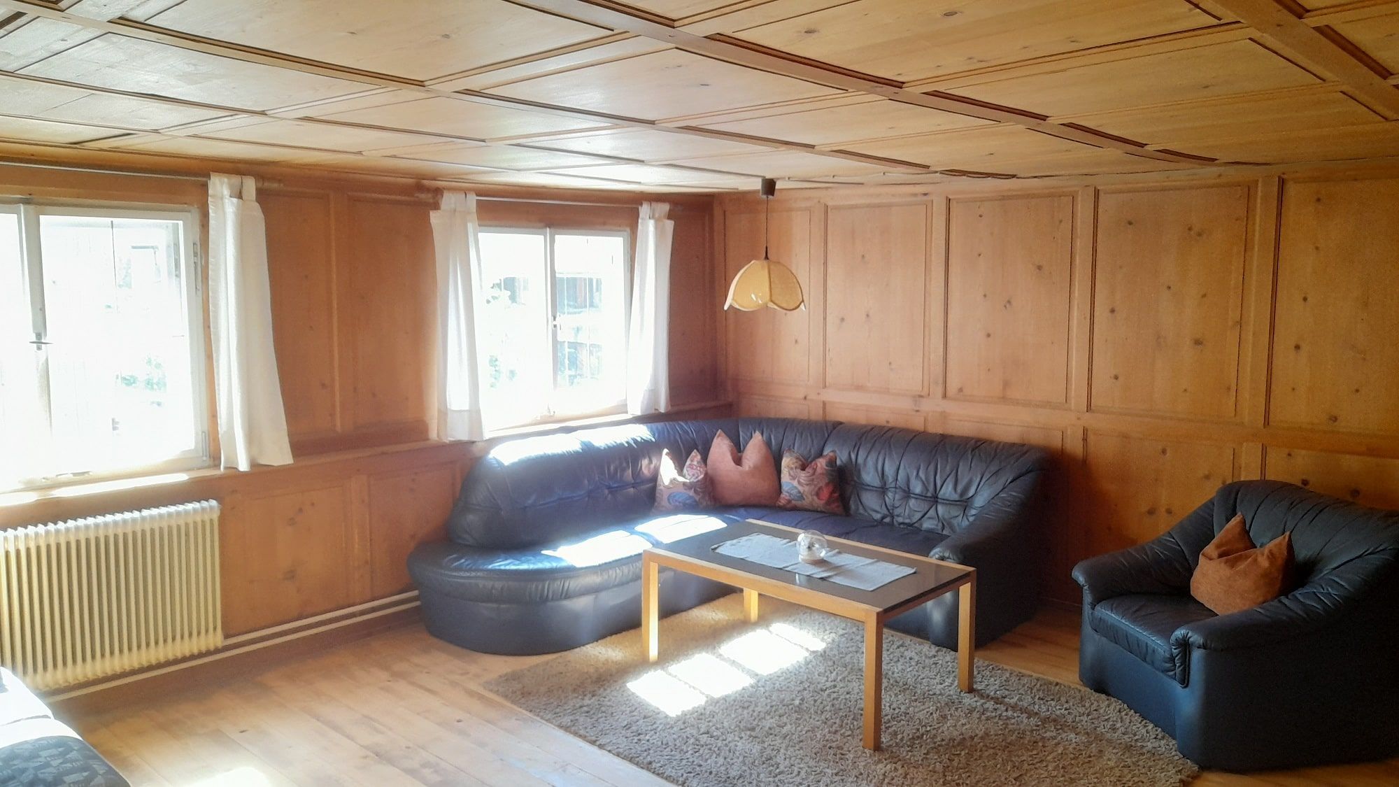 geräumige Wälderstube mit Eckcouch, Sofa, Beistelltisch, Stubenschrank, TV
