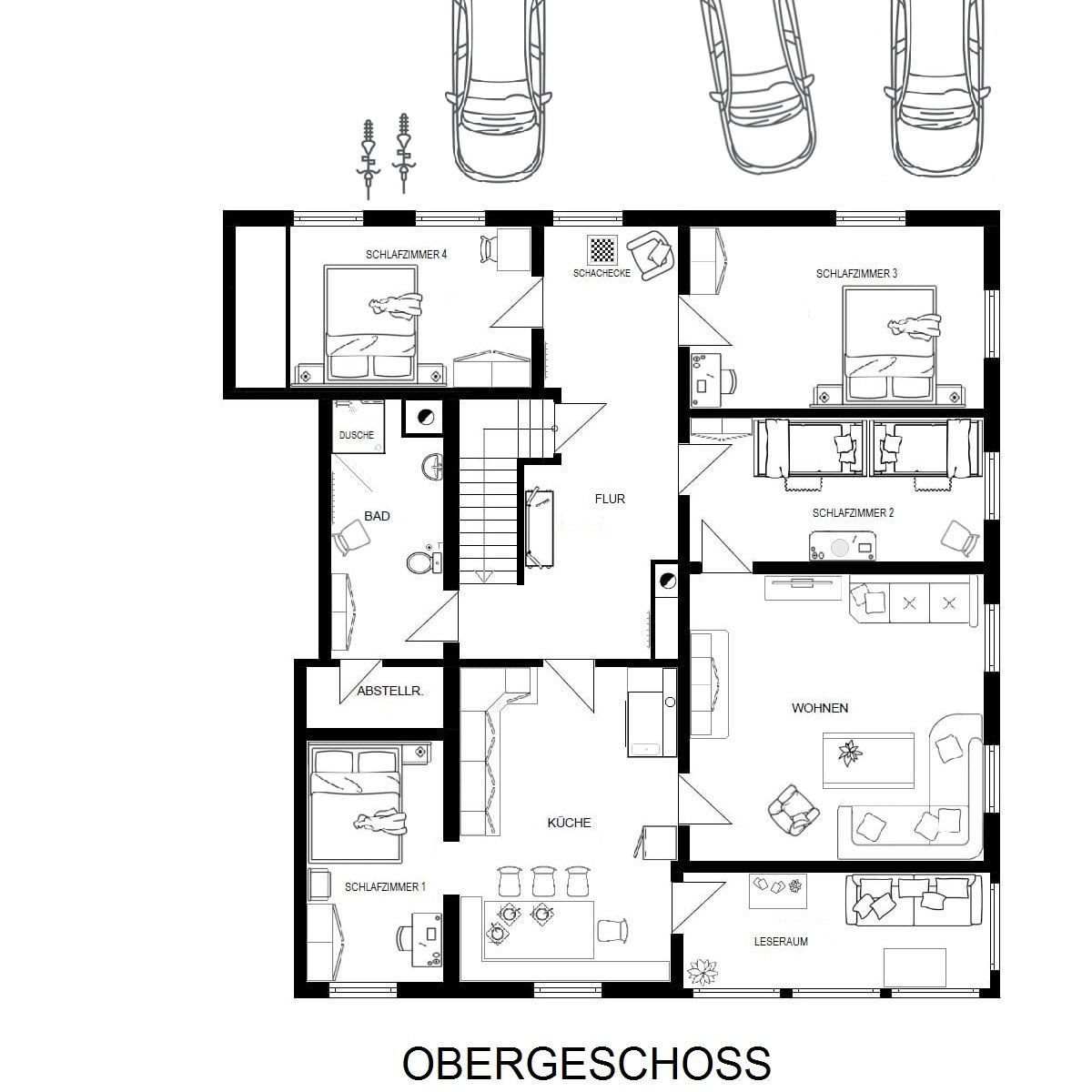 Das Ferienhaus besteht aus einer ebenerdigen Ferienwohnung im Erdgeschoss für bis zu 2 Personen, und einer großen Ferienwohnung im Obergeschoss für bis zu 8 Personen.