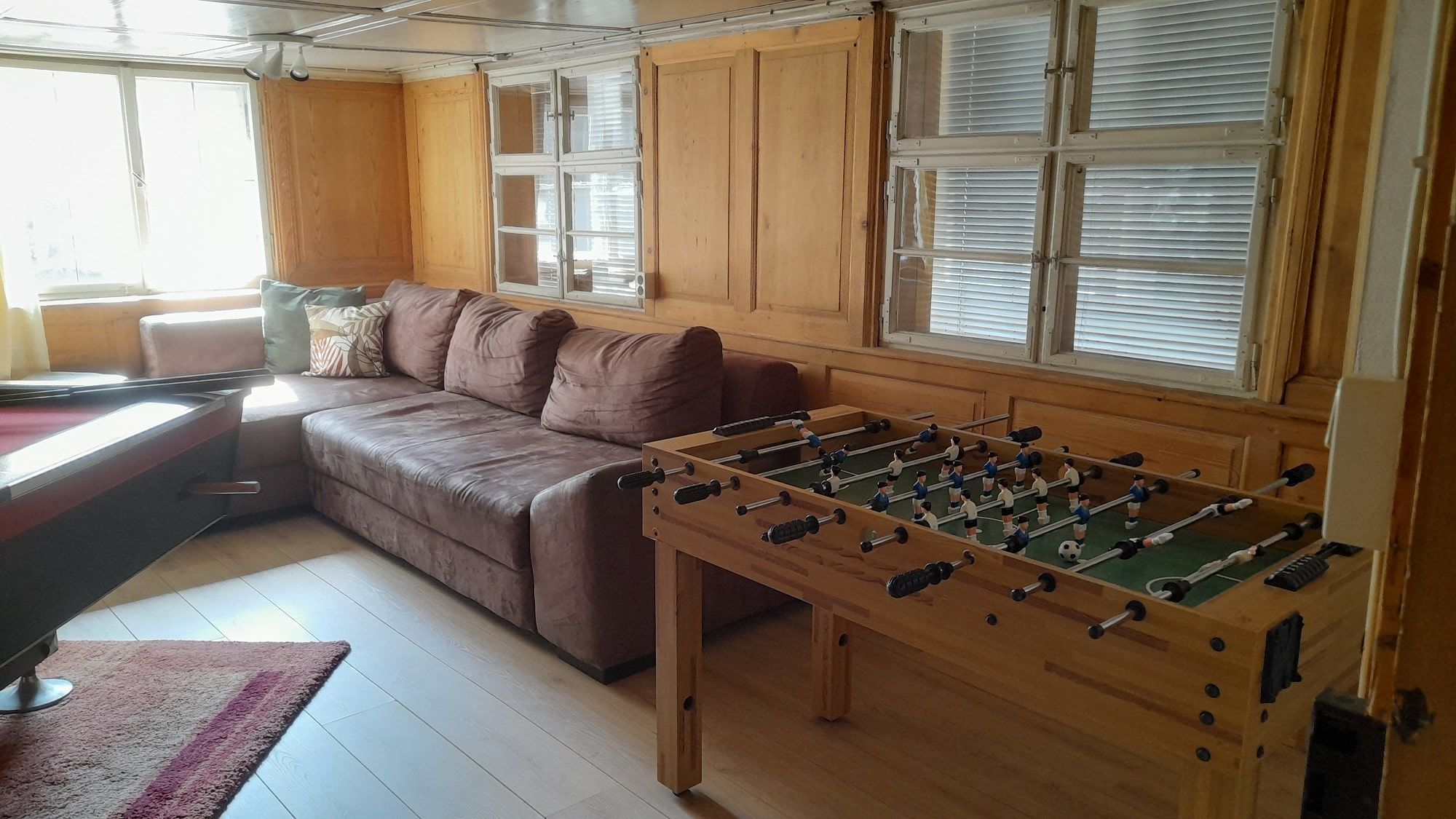 Ein Spieleraum mit Billiardtisch, Tischfußball sowie Dart, lädt im Erdgeschoss zum geselligen Spielen ein.
