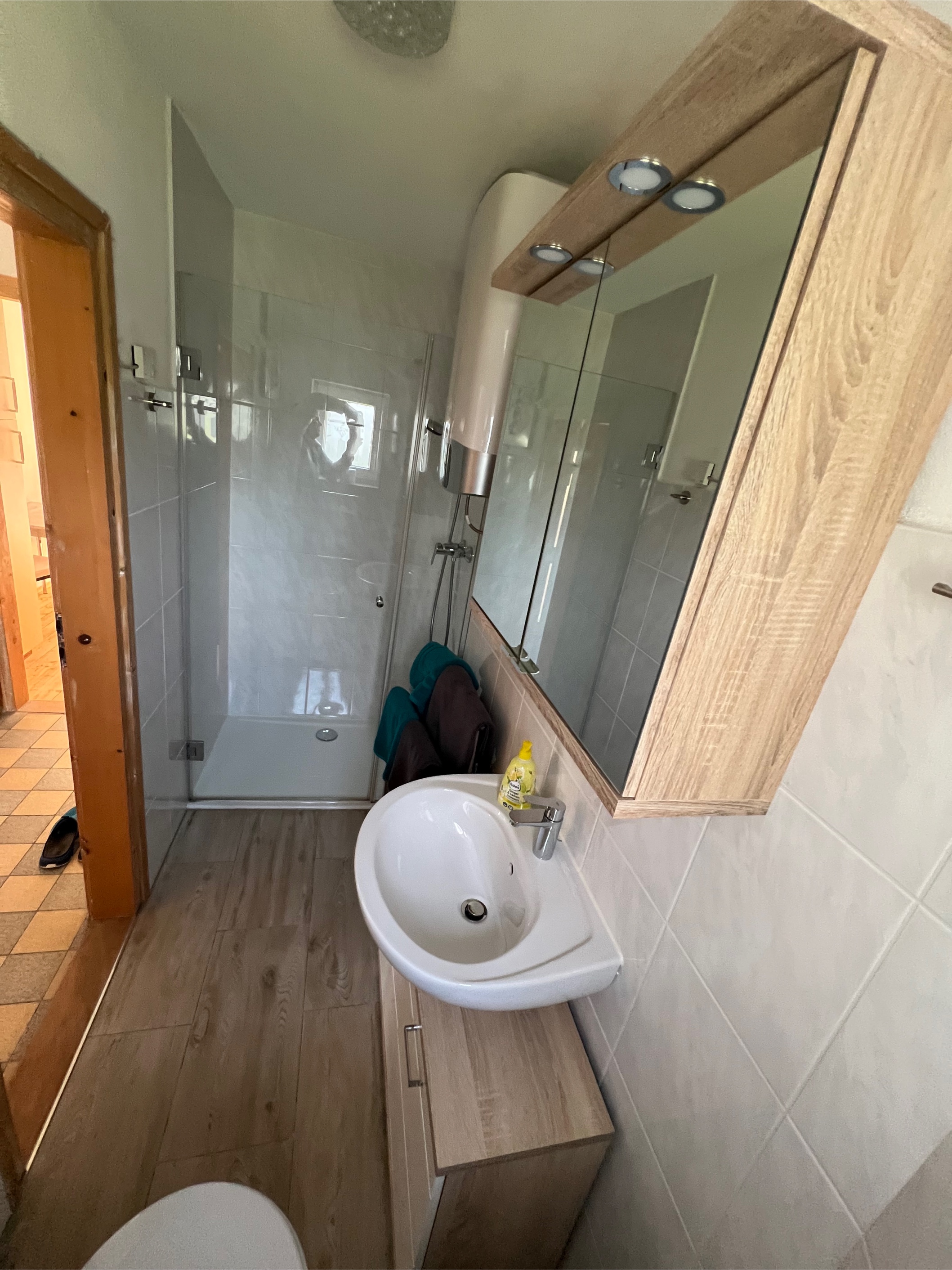 Ein schönes Bad das neu renoviert wurde. Sowie über ein bequemes Boxspringbett mit Topper in 180 x 200cm.