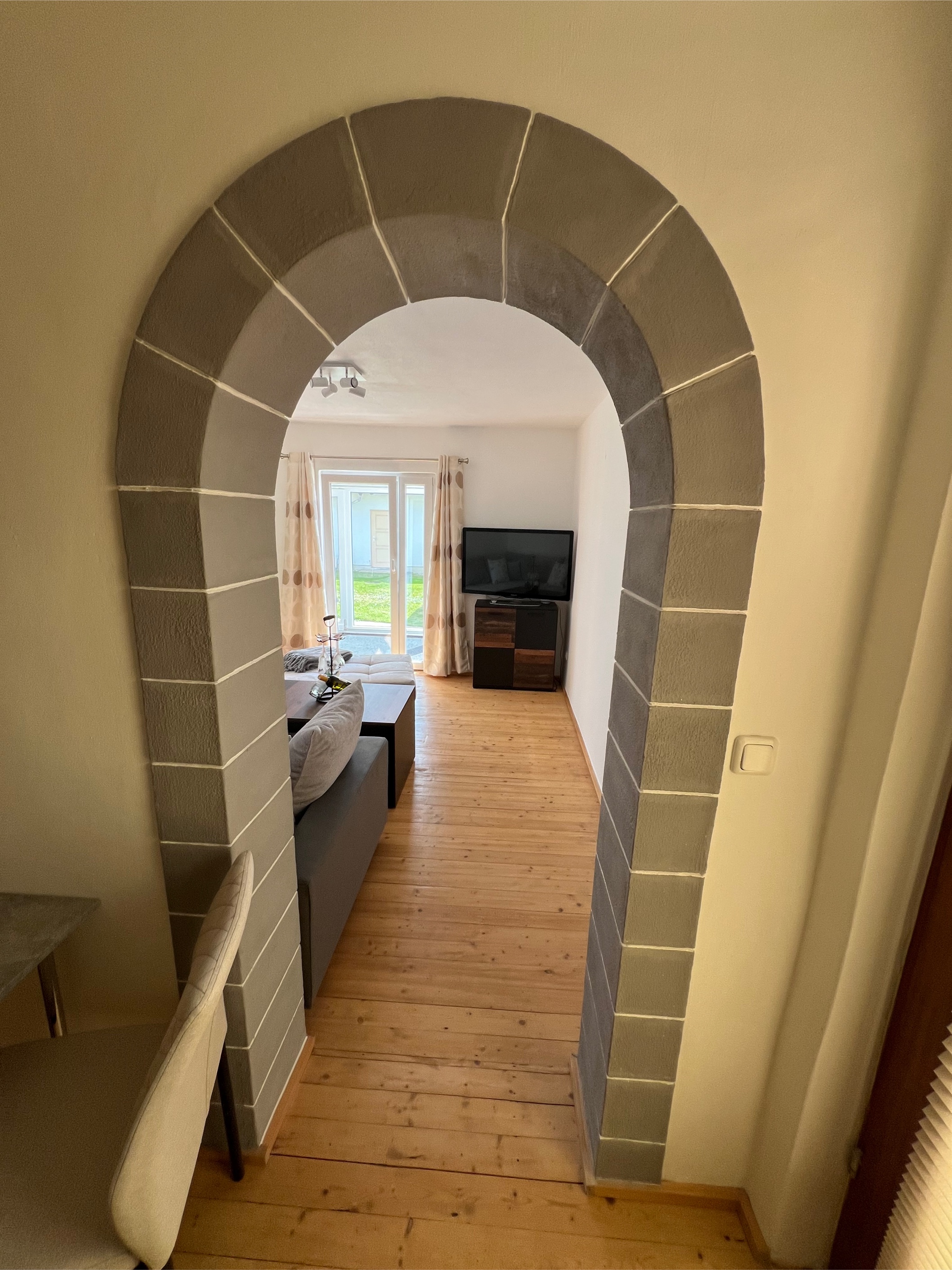 Die Ferienwohnung liegt im Erdgeschoß, verfügt über einen eigenen Eingang, sowie Parkmöglichkeit auf dem Grundstück, evtl. Garage.
