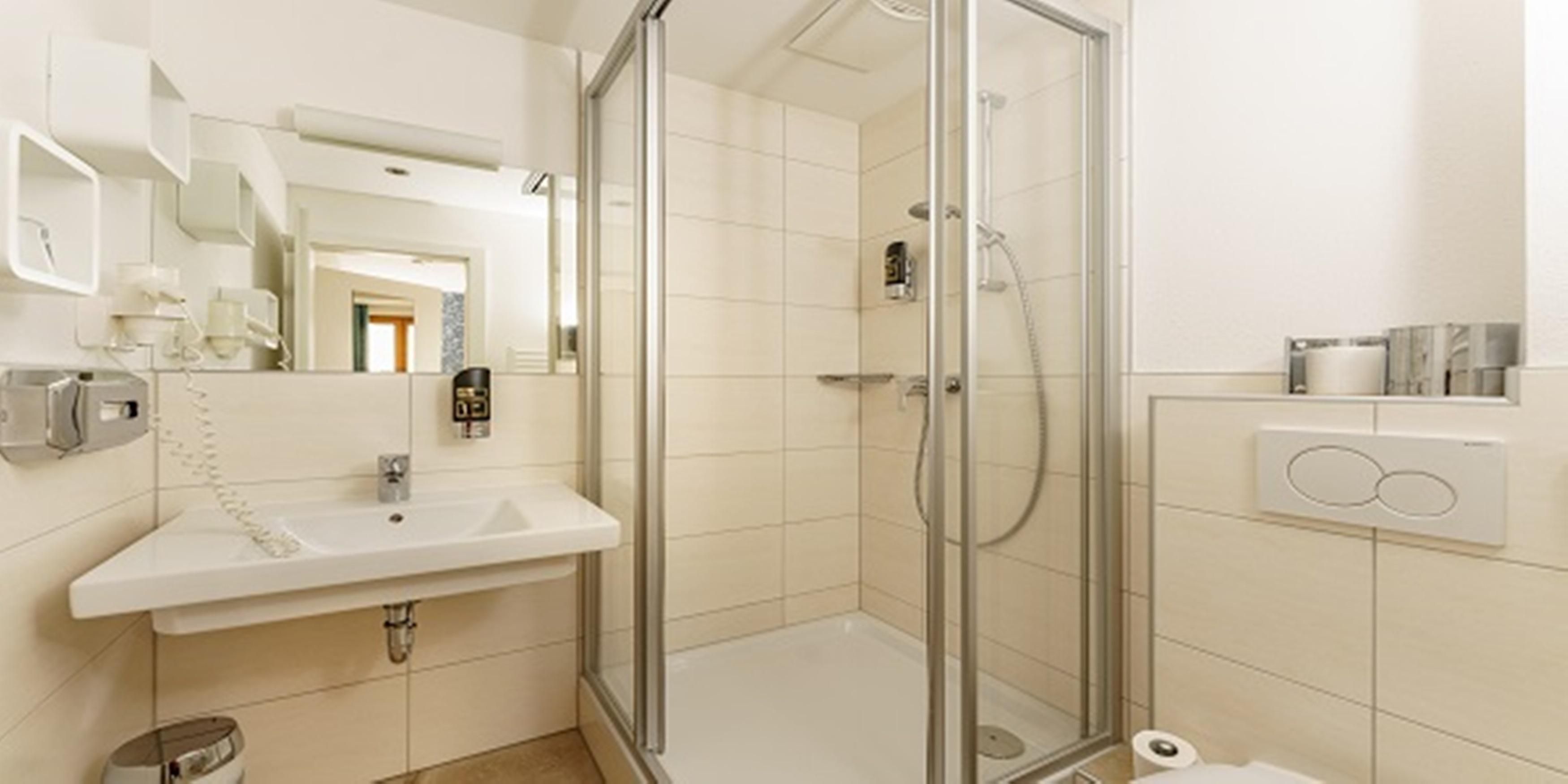 • Badezimmer mit Dusche/WC, Haarföhn & Handtuchtrockner