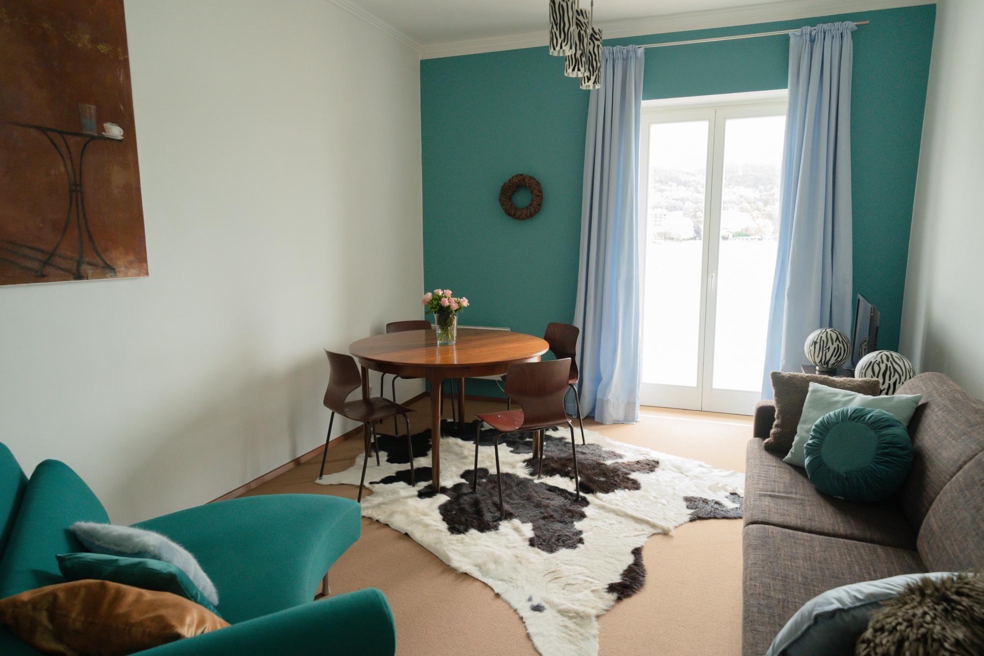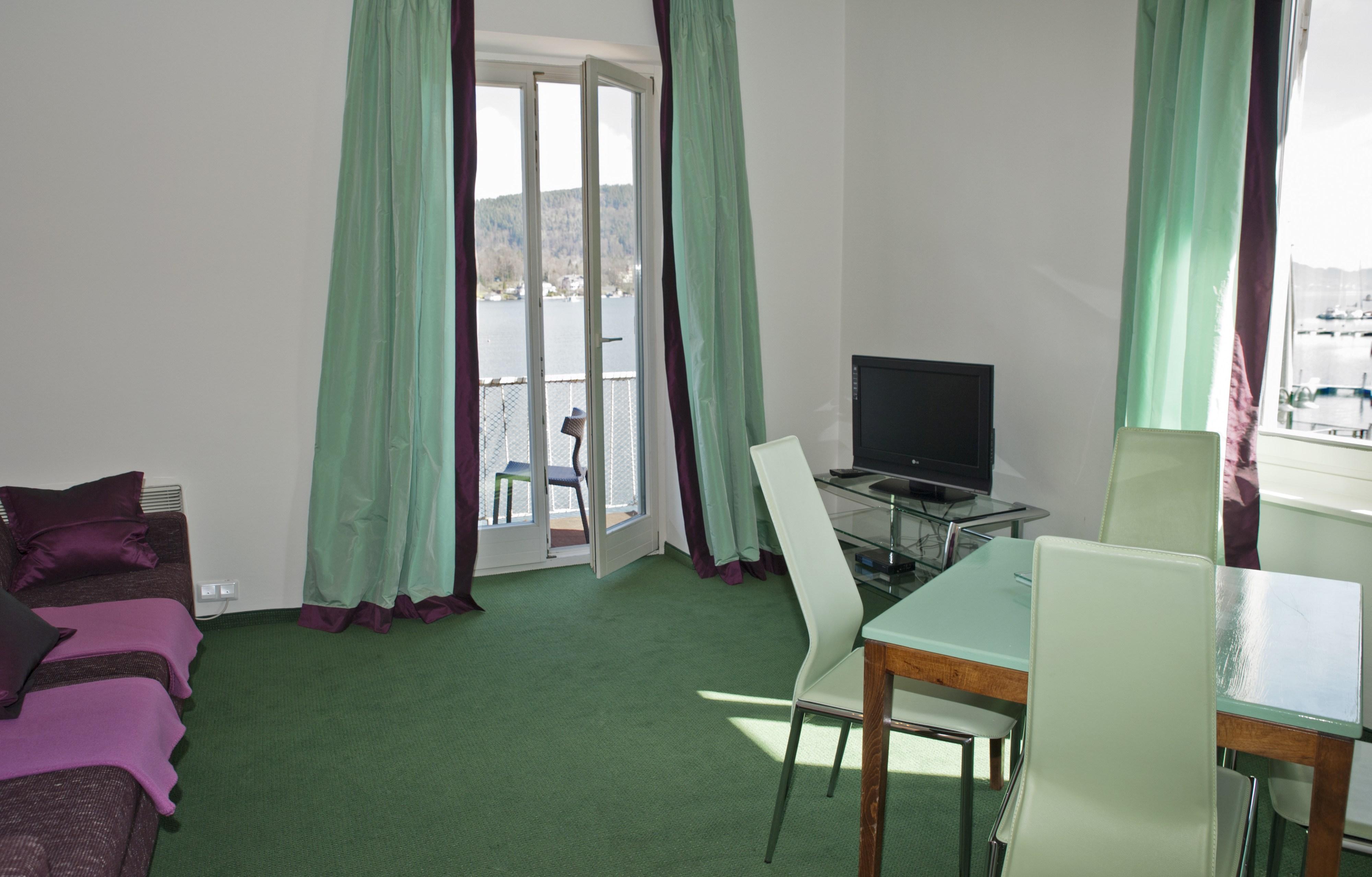 Die Wohnung befindet sich im 1. Stock des Hauses direkt am Seecorso mit Blick auf den Wörthersee. Mit seinen 2 Schlafzimmern ist das Apartment ideal geeignet für Familien. In einem Schlafzimmer dürfen 2 Personen im Kingsize Bett zur Ruhe kommen, das zweite Zimmer beinhaltet zwei Einzelbetten. Außerdem verfügt die 60m² große Wohnung über ein großzügiges Badezimmer mit Dusche und Badewanne. Die beiden Balkone eignen sich perfekt um einen erlebnisreichen Tag mit Blick auf den Wörthersee ausklingen zu lassen.