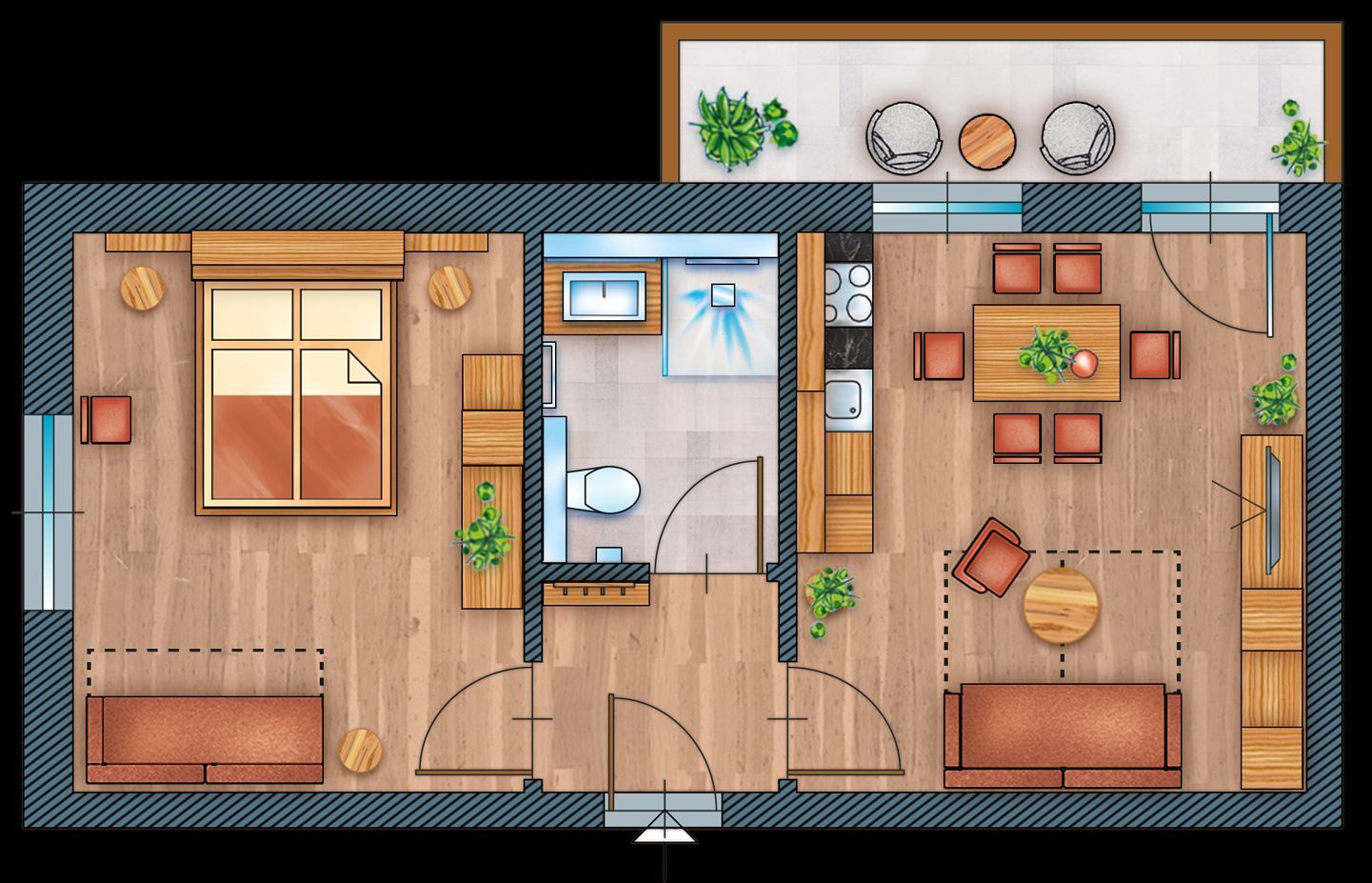 Egal, ob Kurztrip oder mehrwöchiger Aufenthalt – in unserem Appartement Saphir finden Sie als Gast alles, was es für unbeschwertes Urlauben braucht.