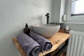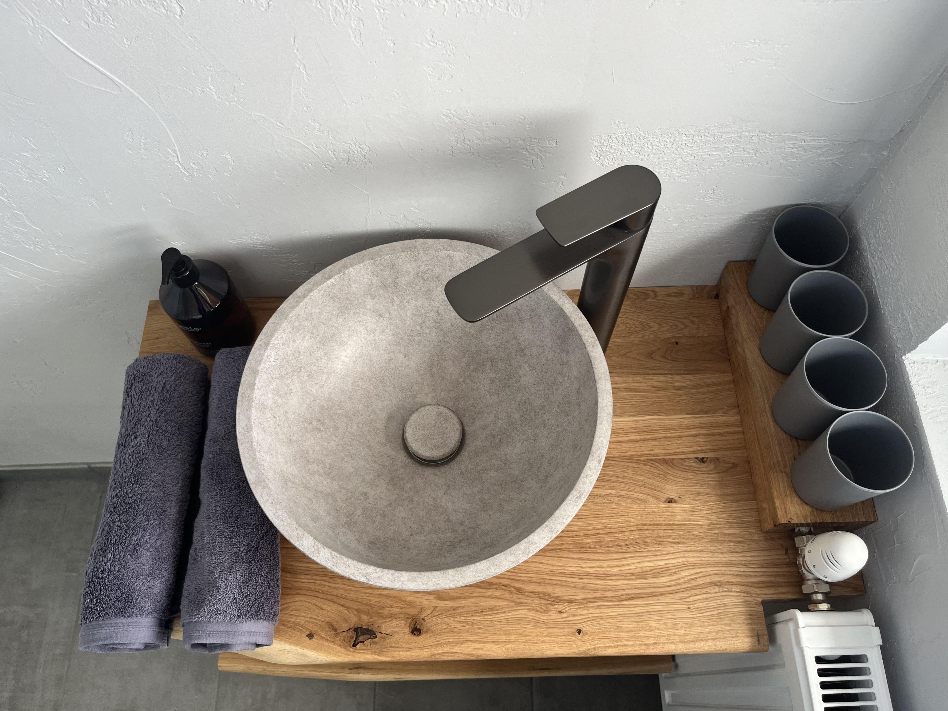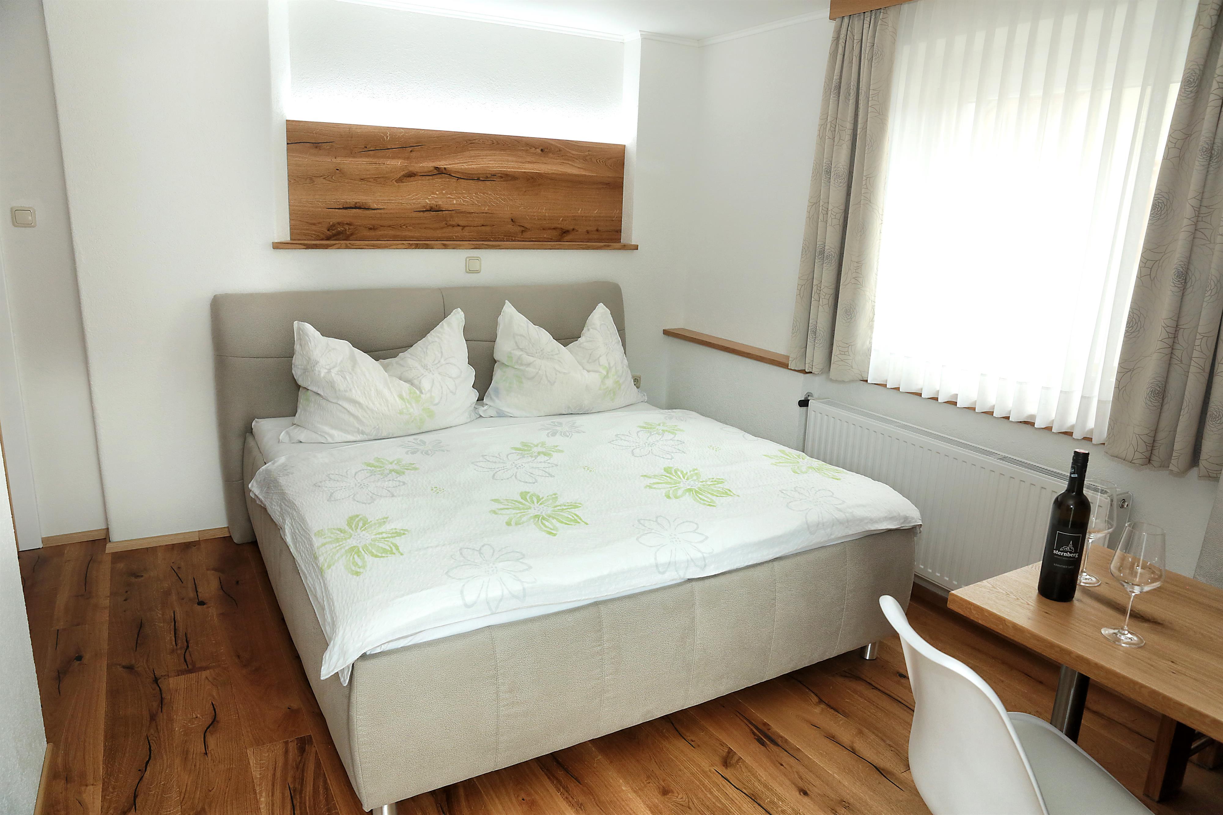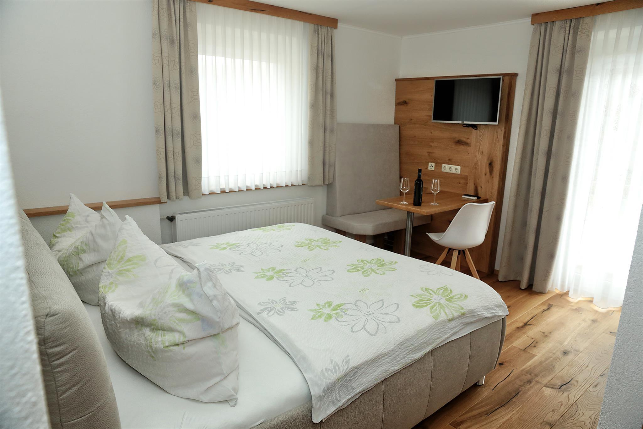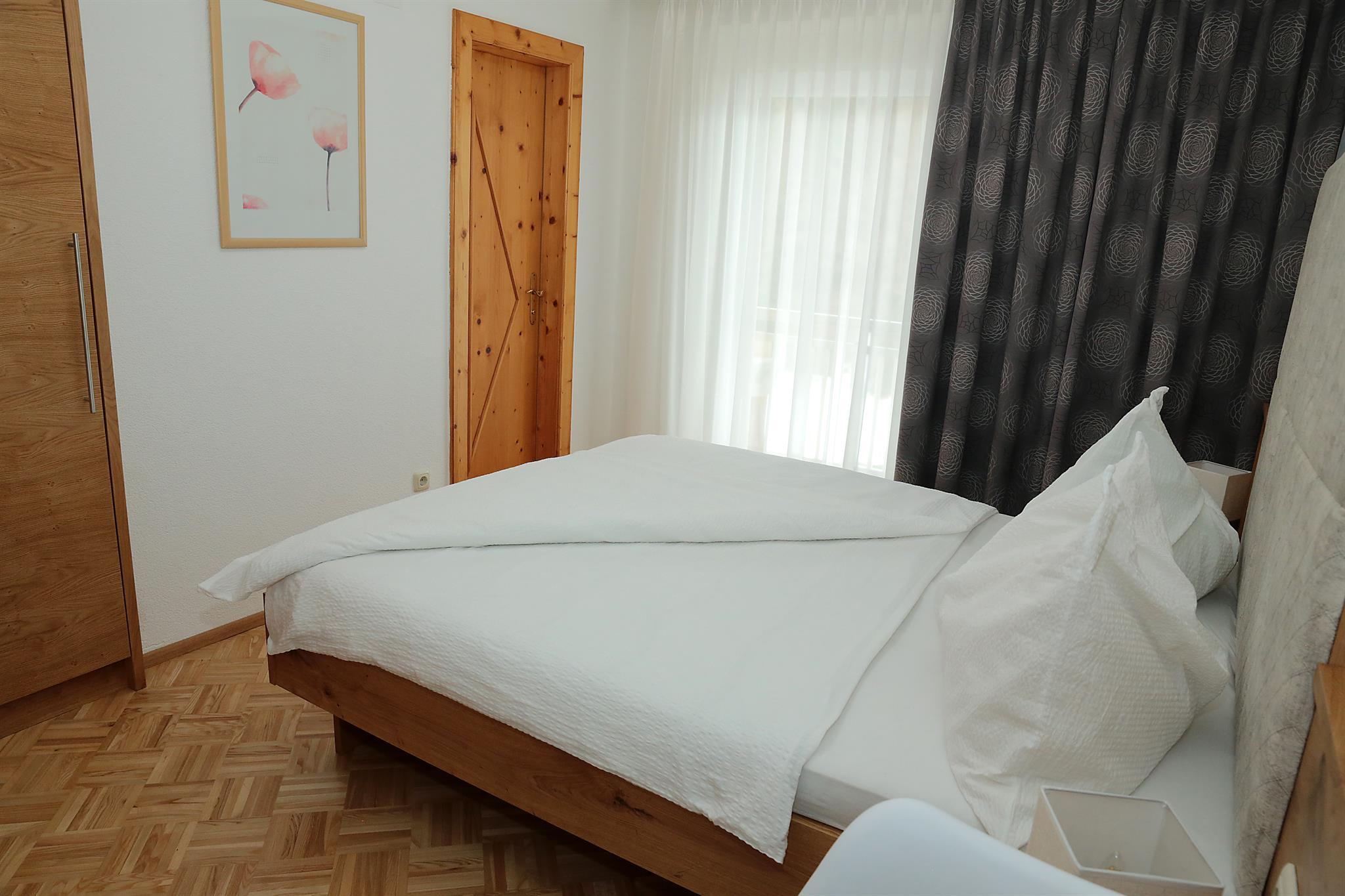Zwei Doppelzimmer mit Verbindungstüre. In der Mitte befindet sich die Dusche mit WC. Beide Zimmer haben Balkon, sowie Fernseher, einen Kühlschrank. Die Zimmer sind südseitig ausgerichtet mit Sicht auf den Karawanken.