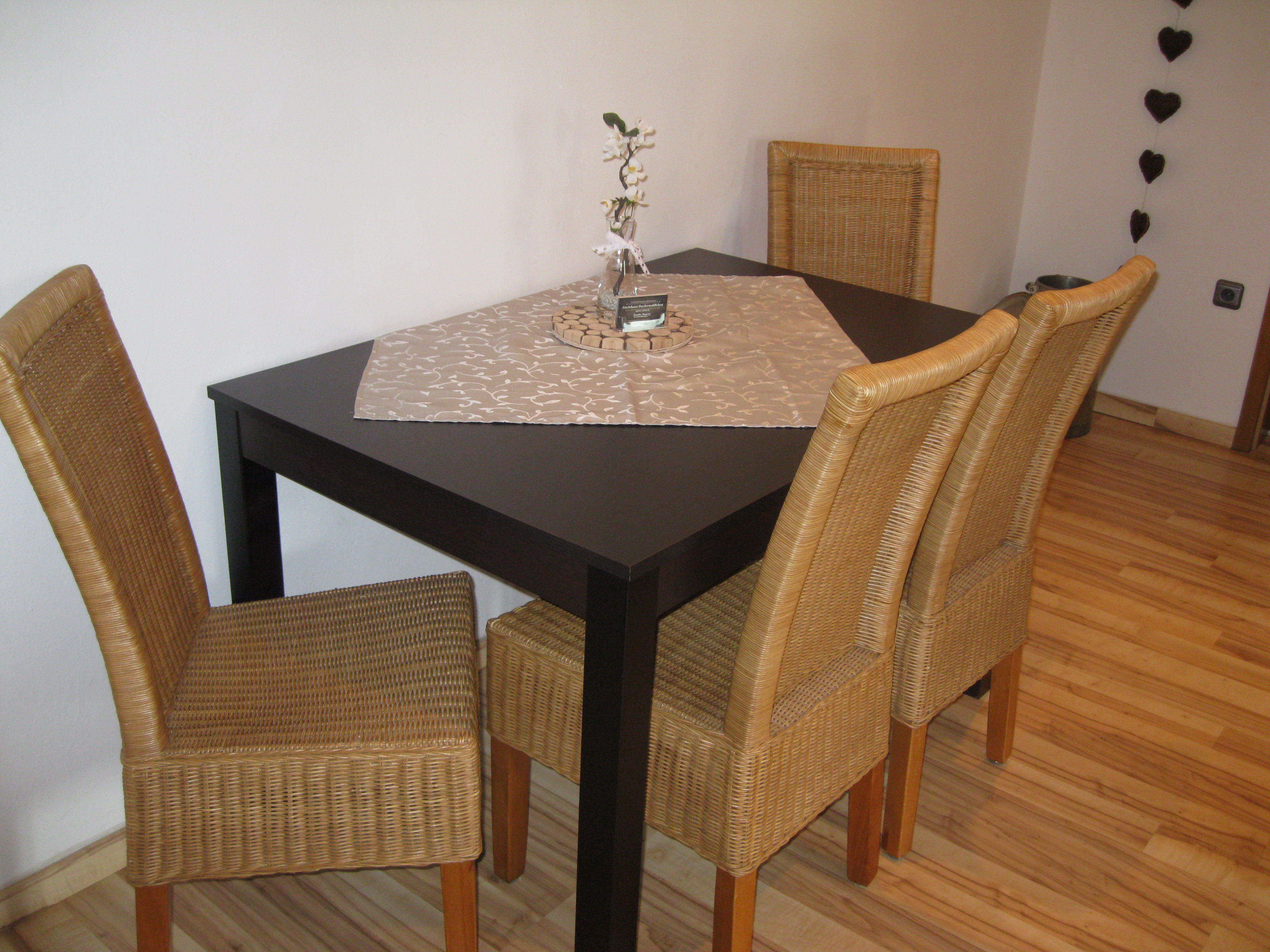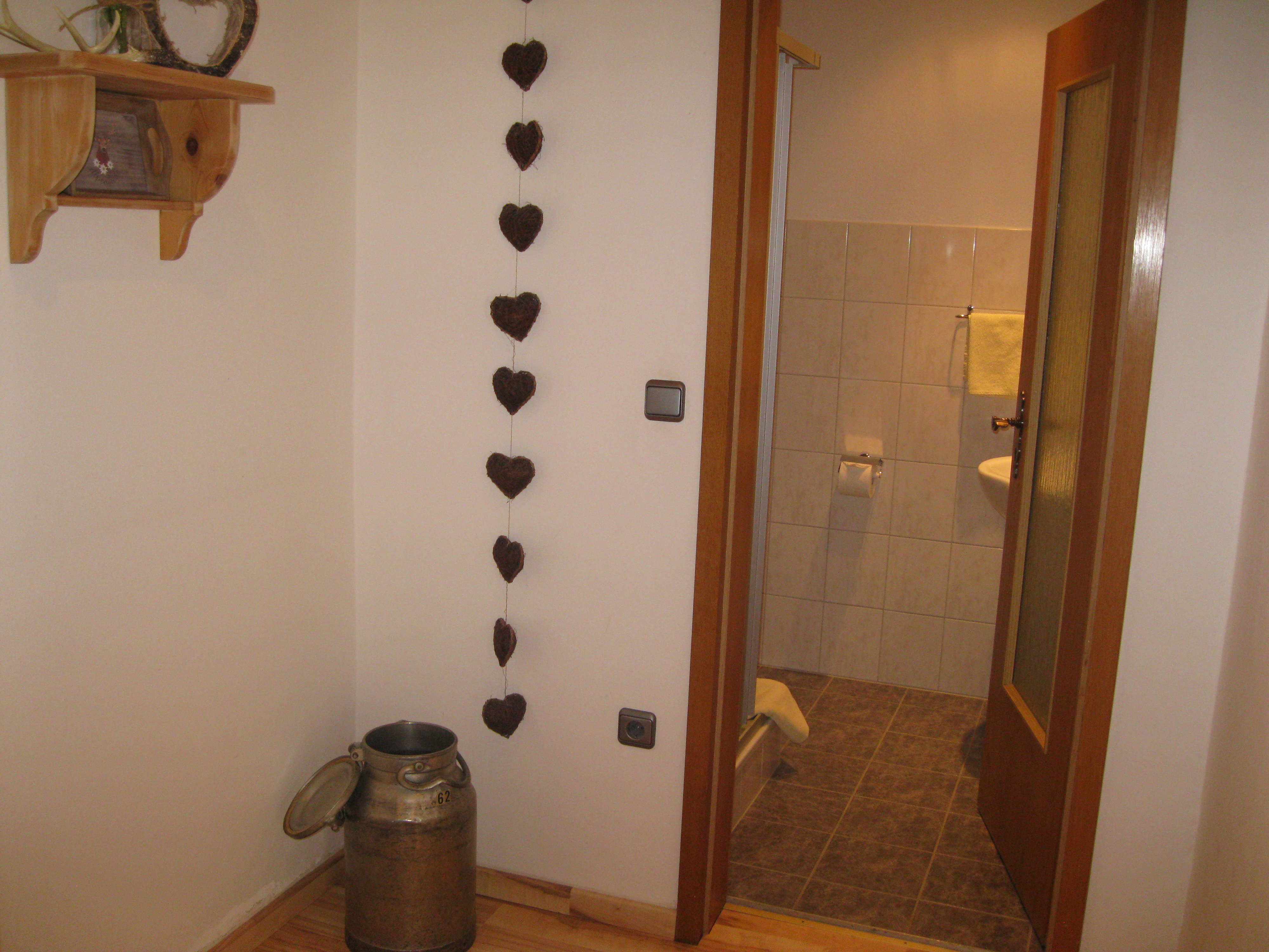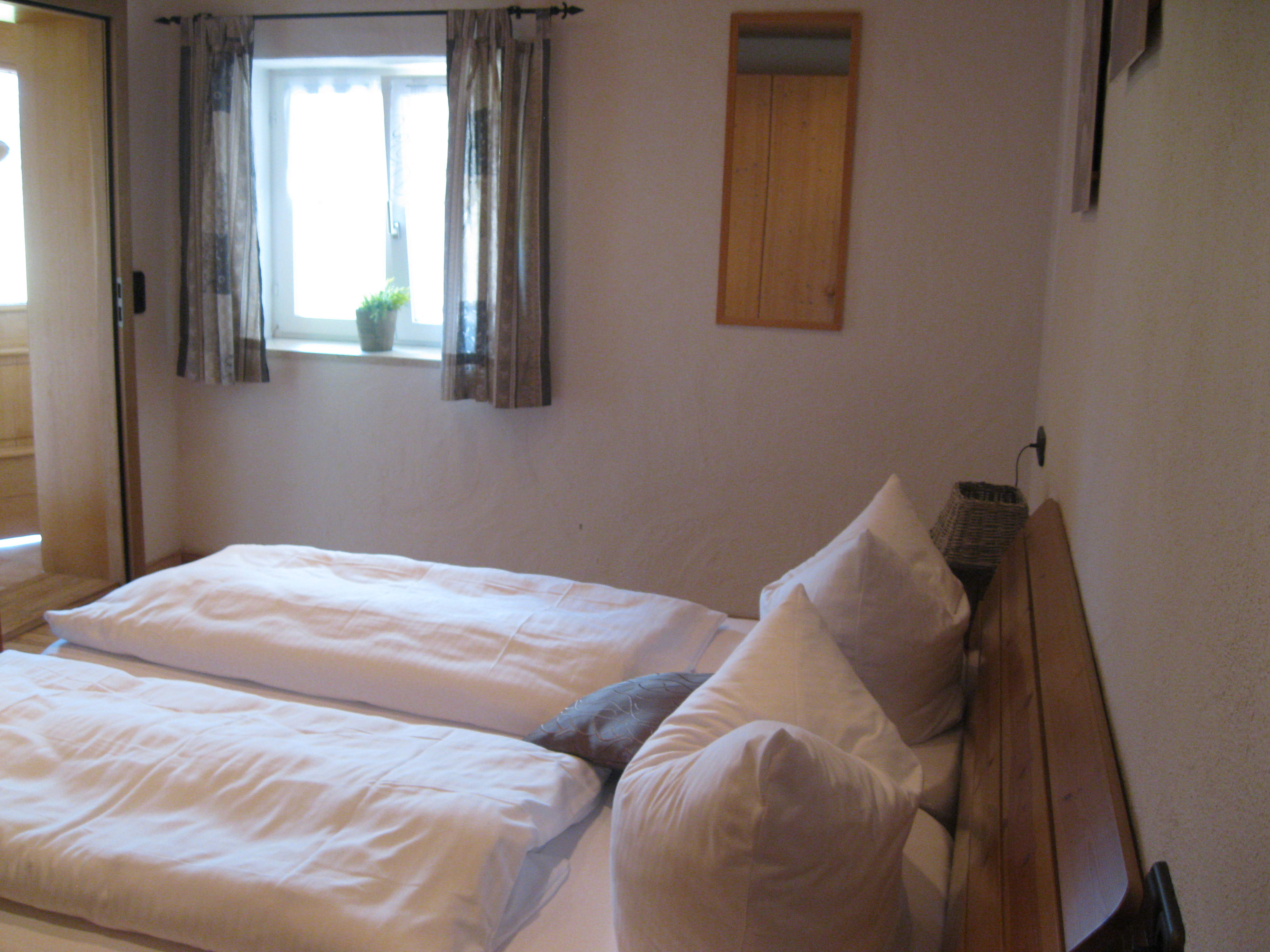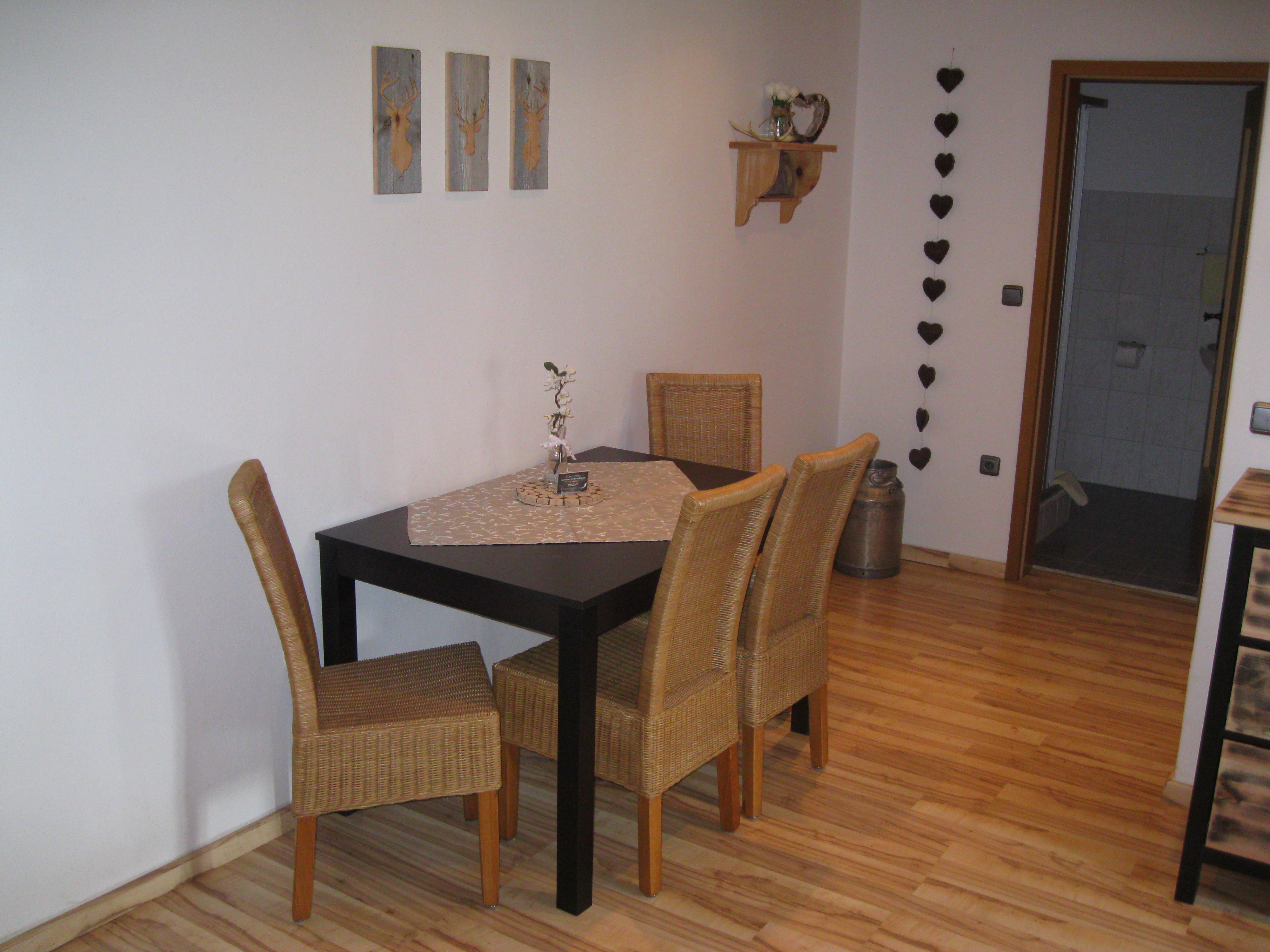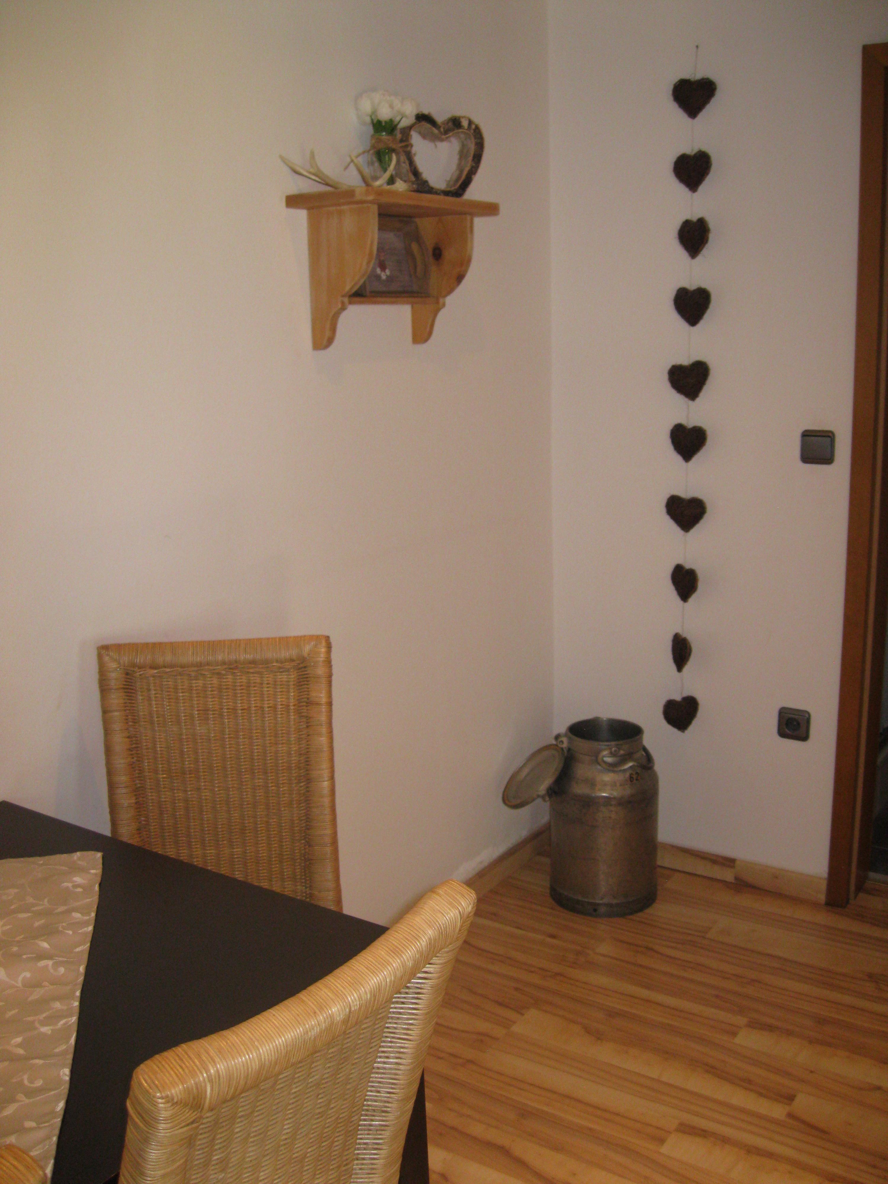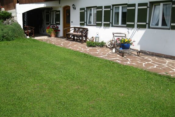 Unsere im Erdgeschoss liegende Ferienwohnung mit separatem Eingang bietet Ihnen einen wunderschönen Bergblick von Ihrer Terrasse. Die Wohnung hat eine Wohnfläche von 55 m² und ist ideal für 2 Personen. Sie verfügt über eine komplett ausgestattete Küche mit Wasserkocher, Toaster und Kaffeemaschine sowie Sat-TV. Das Badezimmer ist mit Dusche und WC ausgestattet. Es gibt ein Schlafzimmer und einen großen Wohnraum mit Sofa. Ein Esstisch mit Stühlen steht Ihnen zur Verfügung. Die Terrasse bietet eine gemütliche Sitzgelegenheit, von der aus Sie die herrliche Berglandschaft genießen können.