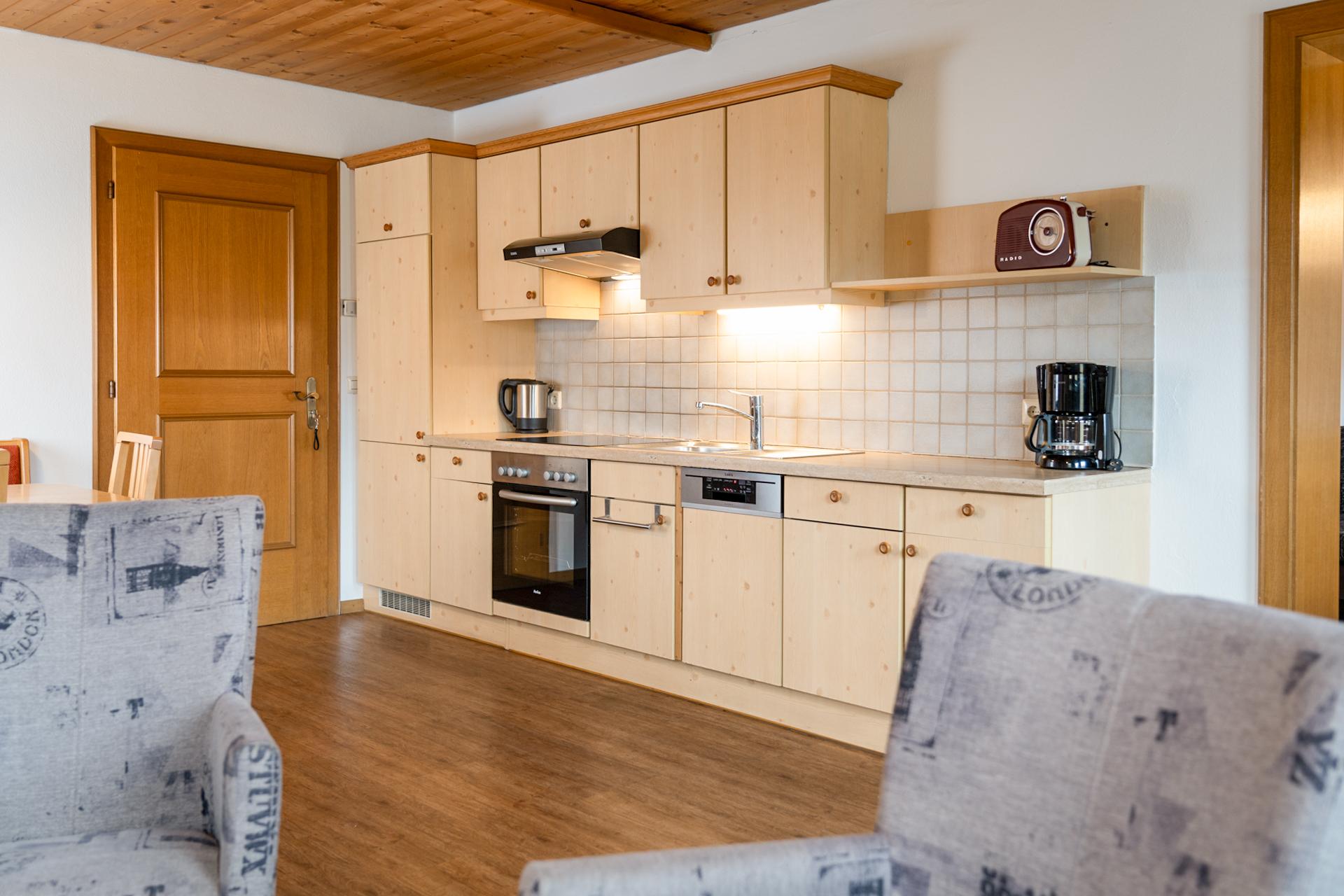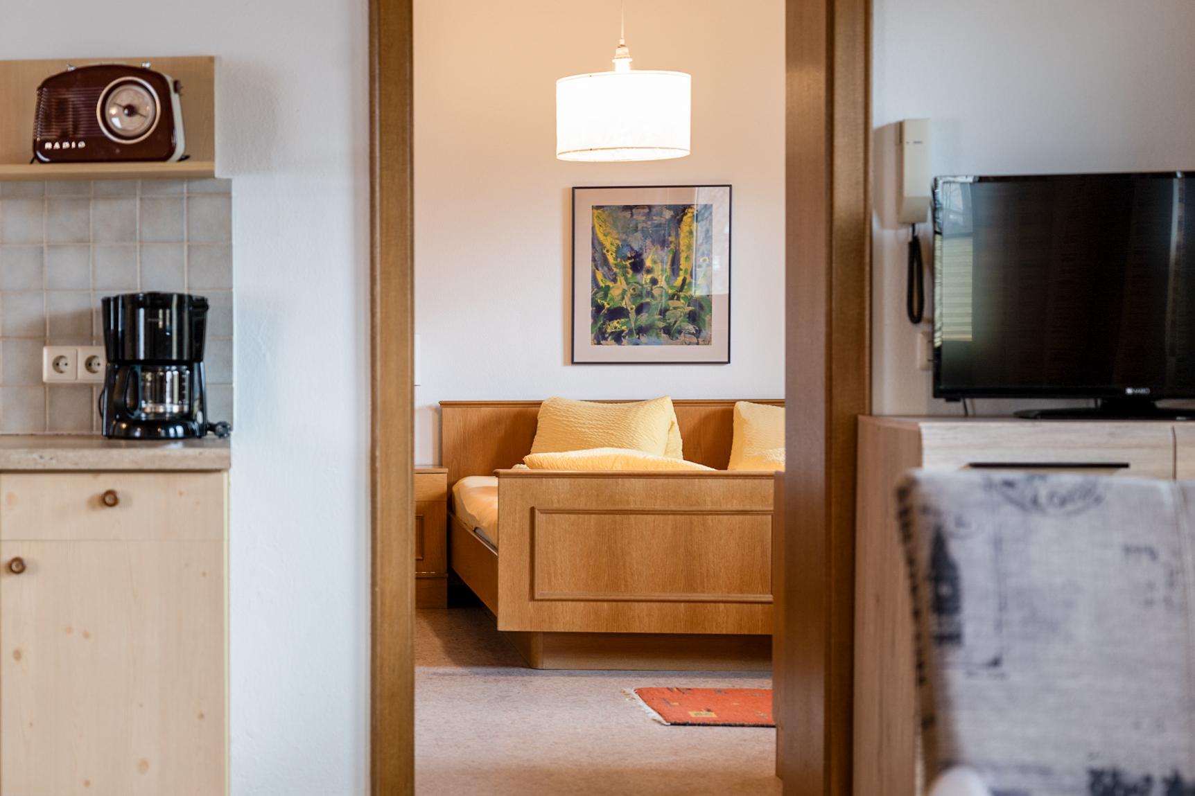 Wohnküche, 2 Schlafzimmern, Dusche, WC, Sat-TV, WLAN, Parkplatz.