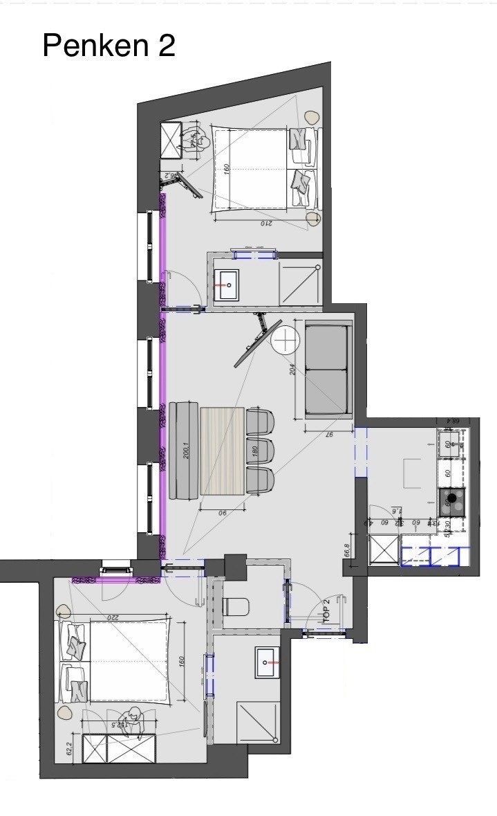• 2 Schlafzimmer mit 2 Badezimmer