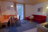 • 1 Wohn-Schlafraum bzw. Wohnküche mit Geschirrspüler, Mikrowelle, Wasserkocher,