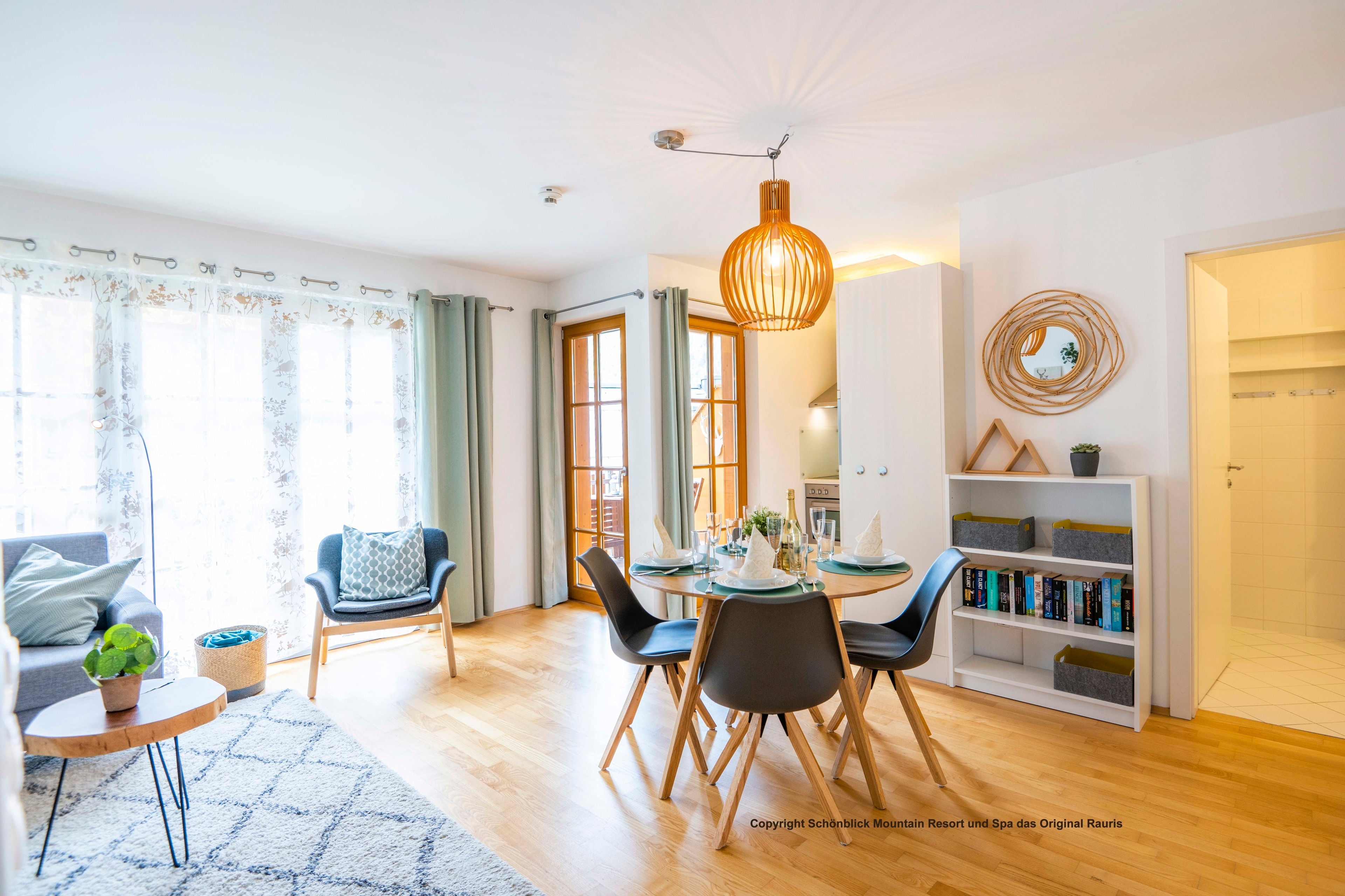 Die Apartment-/Chalet-Anlage besteht aus 15 Häusern mit 114 Ferienwohnungen, einem schönen Wellness- und Spa-Bereich und einer Rezeption. Die Apartments (Nichtraucher) sind alle sehr hochwertig und geschmackvoll eingerichtet. Im Keller der Gebäude befinden sich Allgemeinräume wie Schi- und Fahrradkeller. Inmitten der Ferien-Anlage befindet sich der Spa-Bereich mit Hallenbad, Sauna, Infrarotkabine, Dampfbad, Massageraum und Solarium. WLAN ist gegen eine Gebühr im Apartment verfügbar! Durch die Tiefgarage gelangen Sie von allen Gebäuden aus bequem zum Hauptgebäude mit Rezeption und Wellness-Bereich. Im Resort gibt es ausreichend kostenlose Parkplätze. Tiefgaragenplätze sind gegen eine Gebühr vorhanden. An der Rezeption helfen wir Ihnen gerne und geben Auskünfte über Rauris, die vielen Freizeitmöglichkeiten in Rauris, oder den umliegenden Orten. Wir bieten auch die Möglichkeit eines Brot- und Gebäckservices an der Rezeption an.