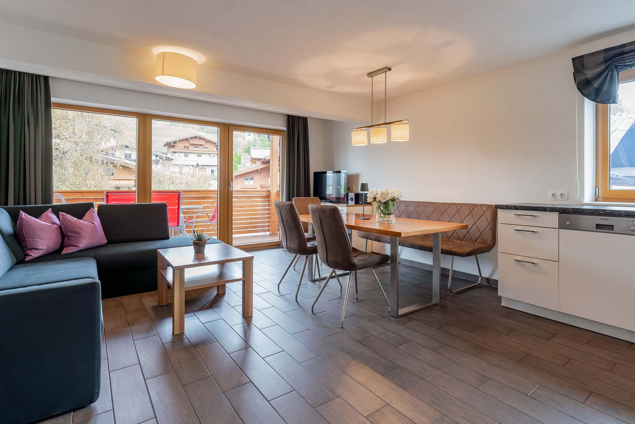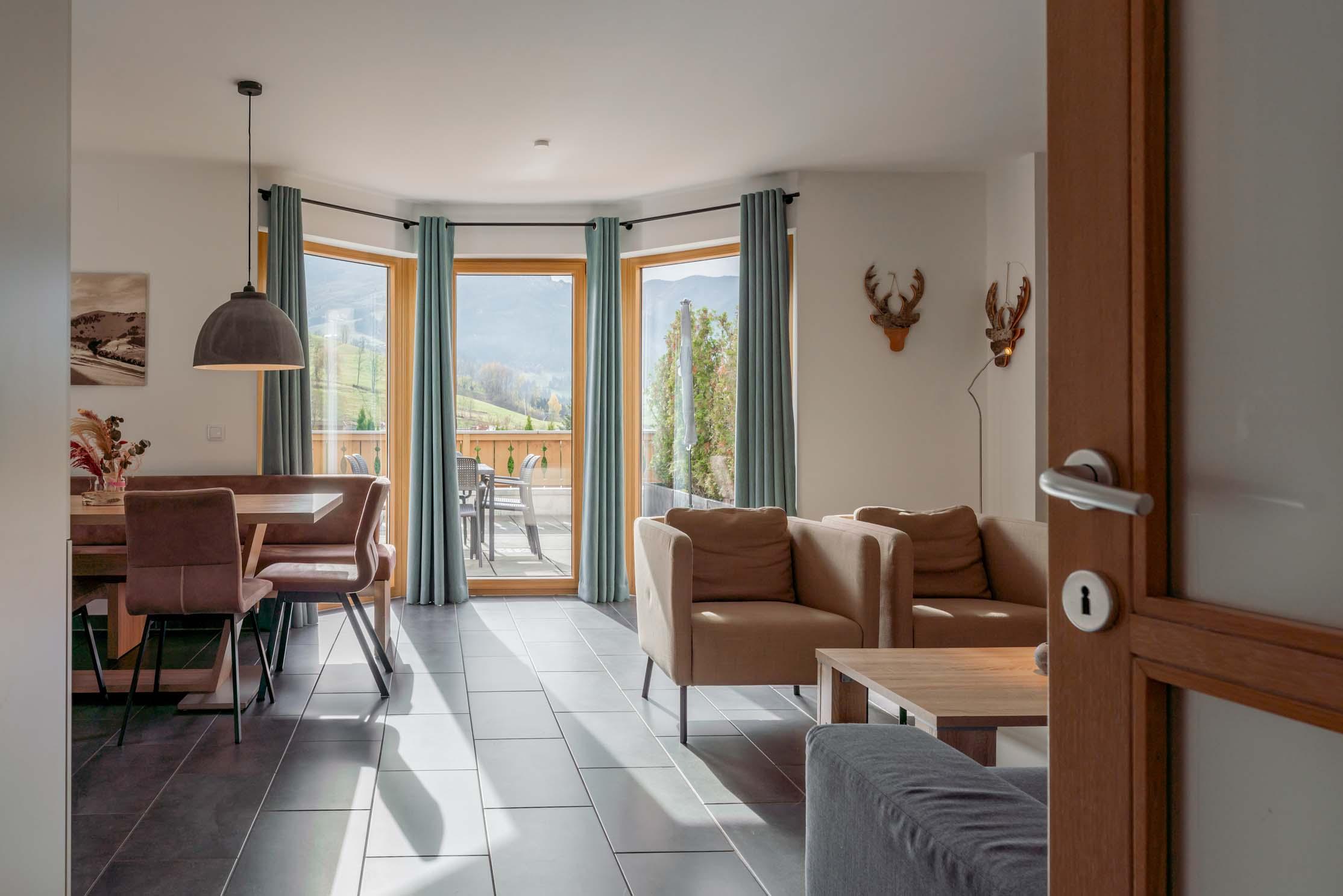 Vom Balkon der Appartements haben Sie einen Logenblick auf die Salzburger Bergwelt. Ihr ganz persönliches Hideaway: Die Appartements des AlpenParks Maria Alm liegen direkt im Zentrum in der Dorfresidence oder je nach Wunsch in der Residence Schmiedhöfl.