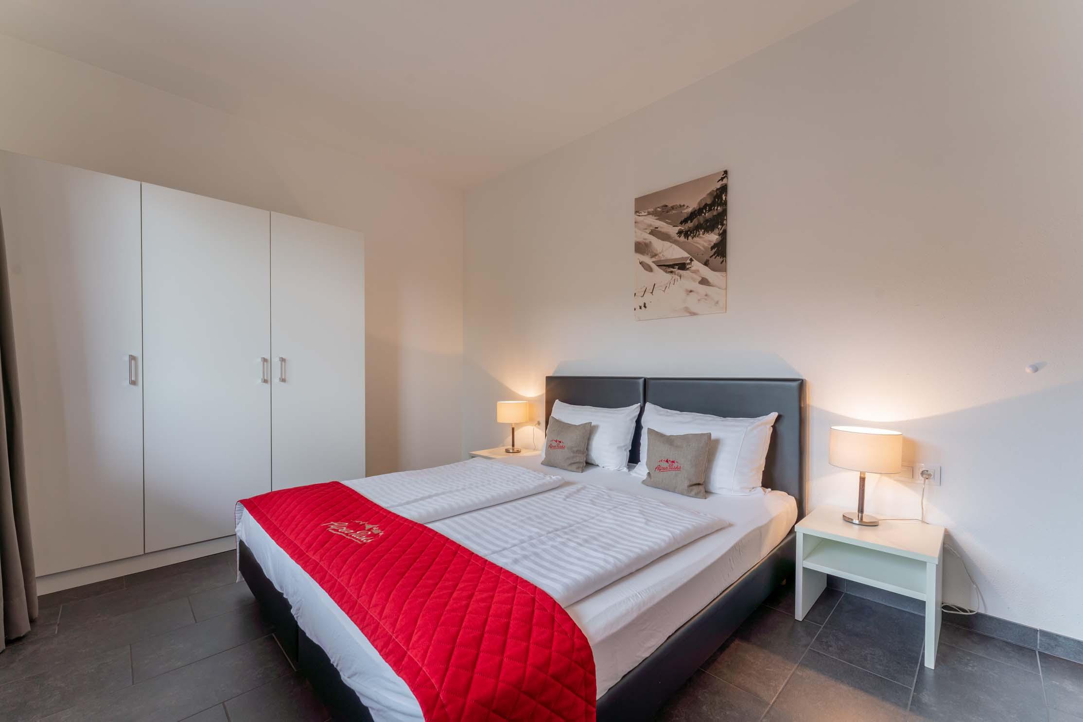• 2 Schlafzimmer (Doppelbett, Kleiderschrank, 1 Schlafzimmer mit Fenster zum Gang)