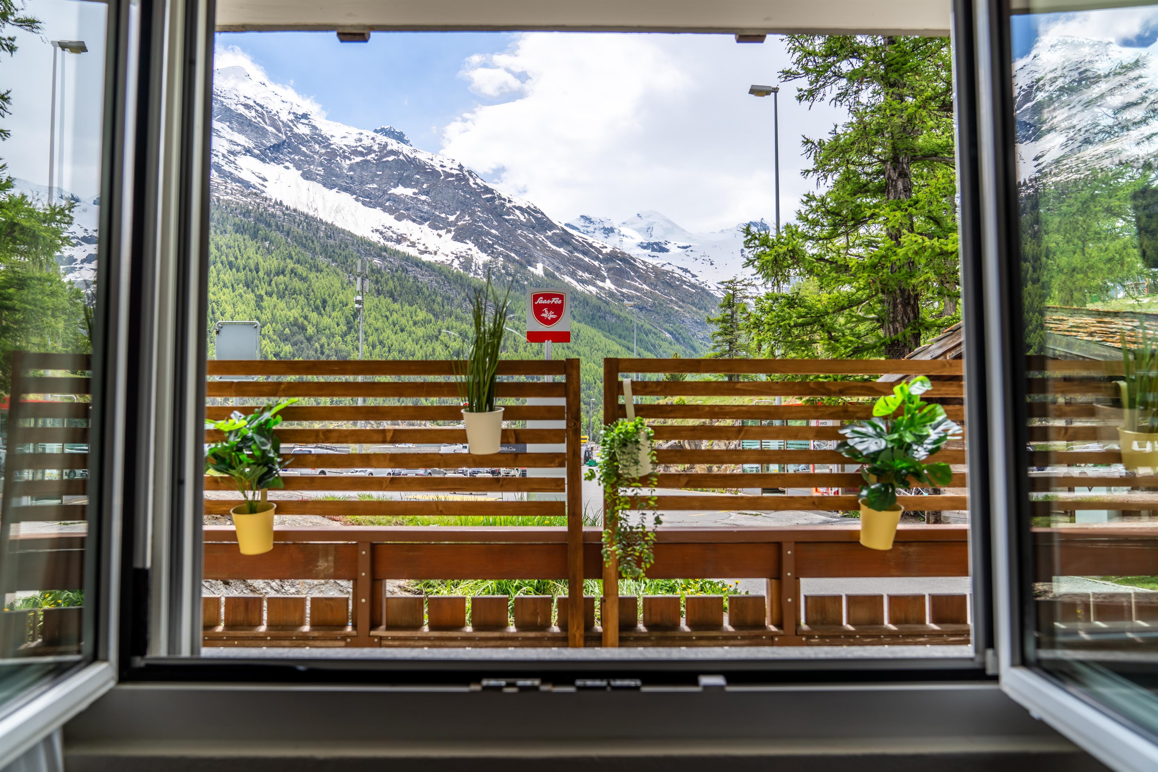 - Parkplatz und Bushaltestelle „Saas Fee, Parkplatz Nord“ direkt vor der Tür