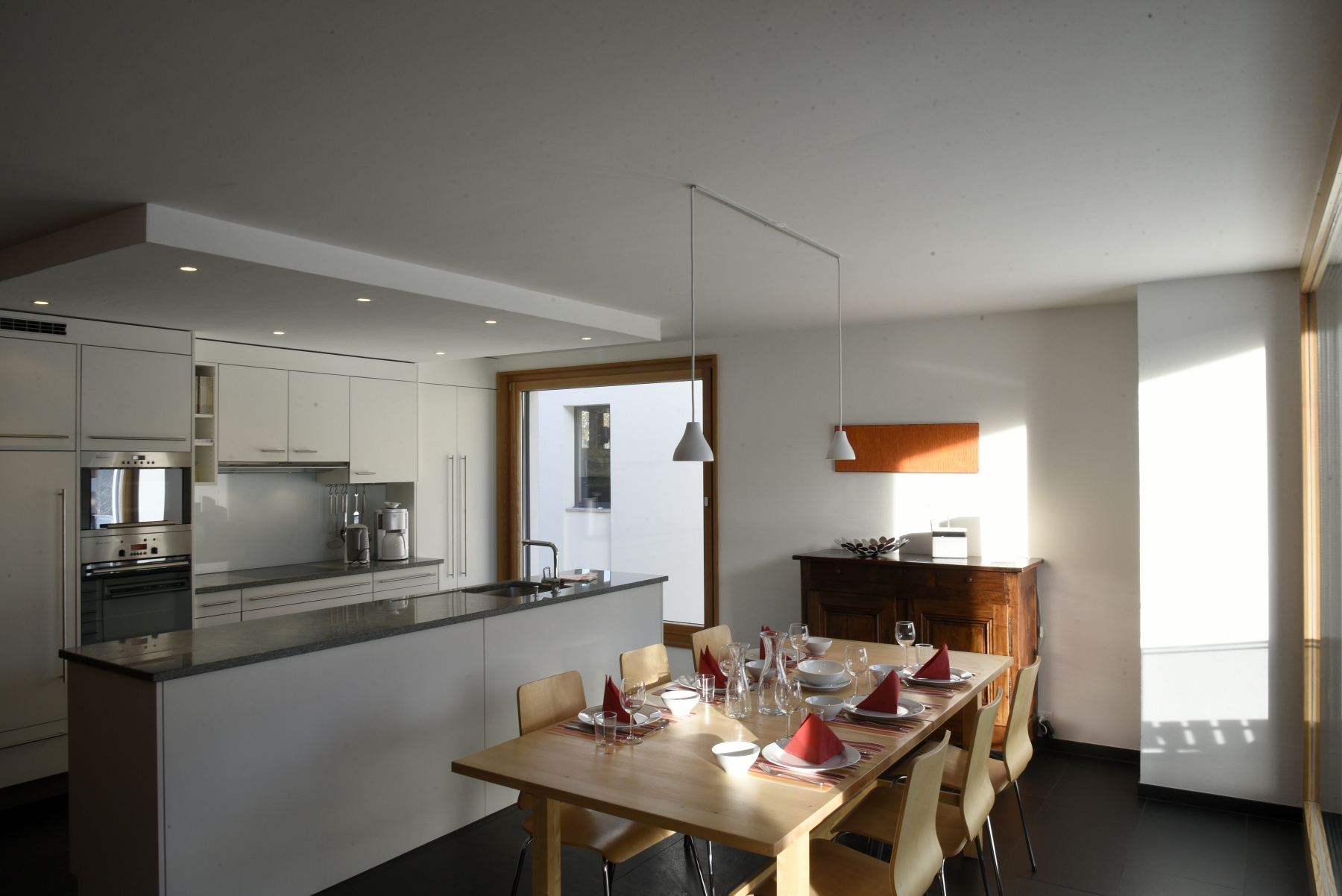3 Schlafräume, Babybett, Babyhochstuhl, Backofen, Balkon, Cheminée, Fondue-Set, Geschirrspüler, Haustiere nicht erlaubt, Internetverbindung, Kachelofen, Kaffeemaschine, Kinderbett, Küche, Küchenwäsche, Kühlschrank, Lift, Mikrowelle, Nichtraucherzimmer-/wohnung, Parking, Raclette-Set, Radio, Terrasse, Tisch- und Küchenwäsche, Töpfe Pfannen Geschirr, TV, Wäschetrockner im Haus, Waschmaschine im Haus, Wasserkocher, WiFi
