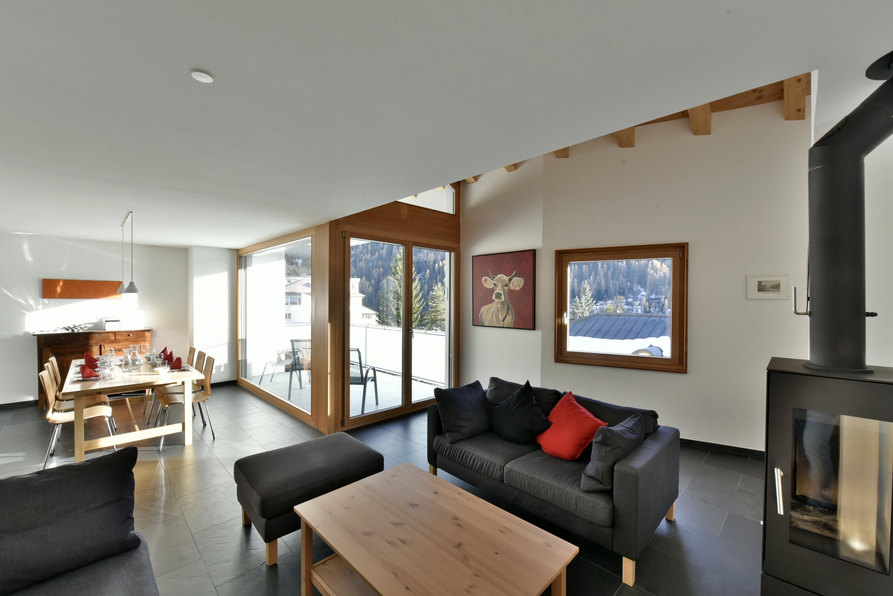 Die Wohnung verfügt über 1 offenes Wohn-und Esszimmer mit Schwedenofen, 1 komplett ausgestattete Küche mit allen Extras, Zugang auf Terrasse (Süd 8m2) mit wunderbarem Blick auf die Engadiner Dolomiten. 1 Schlafzimmer mit 2 Einzelbetten (Etagenbett, 1 Einzelbett), 1 Dusche mit WC/Lavabo. Im Obergeschoss, 1 Doppelschlafzimmer (1 Einzelmatratze),1 Doppelschlafzimmer (2 Einzelmatratzen), 1 grosses Bad mit Wanne/Dusche, WC und Doppellavabo. Offene Galerie mit Couch/Sofa, Satelliten/Kabel TV, Telefon, Internet-WLAN. Das alles erwartet Sie in der Ferienwohnung CRAISTA 8, wir freuen uns auf Sie!