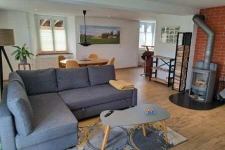 Kommen Sie nach Saignelégier in den Freibergen und geniessen Sie einen angenehmen Aufenthalt in einer komplett renovierten 2-Zimmer-Wohnung. Die Wohnung ist sehr gut ausgestattet (Geschirrspülmaschine, komplettes Geschirr, Nespresso-Kaffeemaschine…). Im geräumigen Wohnzimmer mit einem bequemen Sofa, Kabelfernsehen und einem Esstisch sorgt ein Schwedenofen mit Holz für eine behagliche Ambiance. Im Schlafzimmer steht ein grosses Doppelbett. Das Bad mit Dusche ist vom WC getrennt. Die Unterkunft befindet sich mitten im Dorf Saignelégier, in der Nähe von Lebensmittelgeschäften und dem öffentlichen Verkehr. Mit dem Jura-Pass können Sie die öffentlichen Verkehrsmittel kostenlos benutzen und profitieren in unserer Region von Ermässigungen auf viele Aktivitäten.