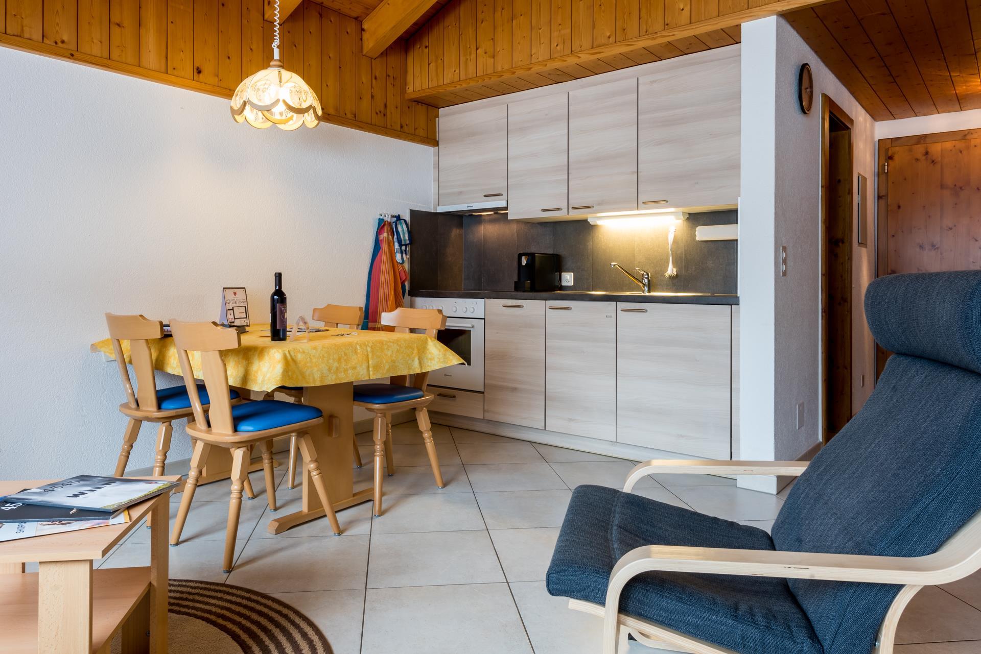 Studio (32 m2), 4. Stock mit 2 Klappbetten, Ess- und Sitzecke, Wohnküche mit Geschirrspülmaschine, Dusche/WC, Südbalkon, Sat-TV/CD-Player mit Radio/Telefon/Wireless.