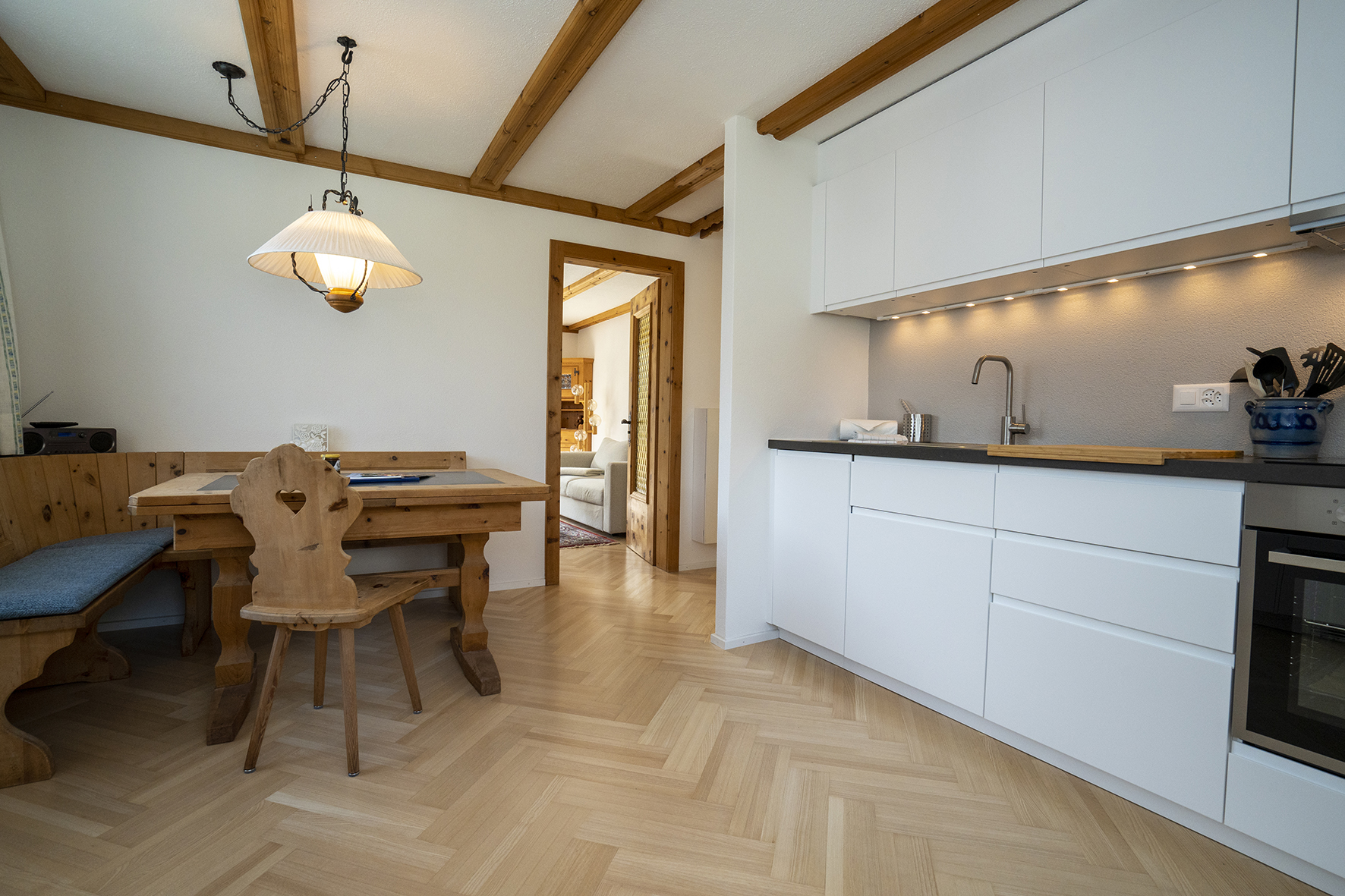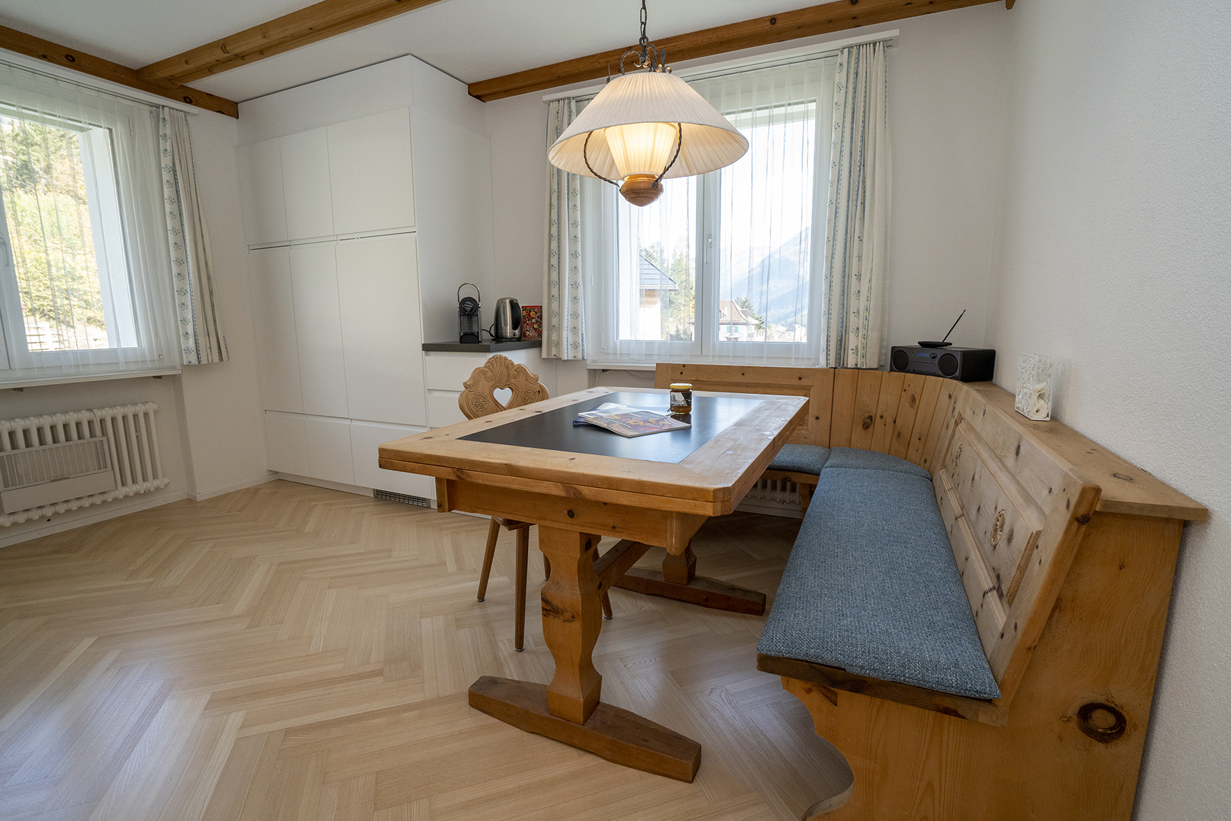 inkl. Bettwäsche, Frottéwäsche, Küchenwäsche, Endreinigung, WLAN, Flat TV, Radio, Strom, Heizung, Skiraum, Veloraum, Aussenparkplatz.