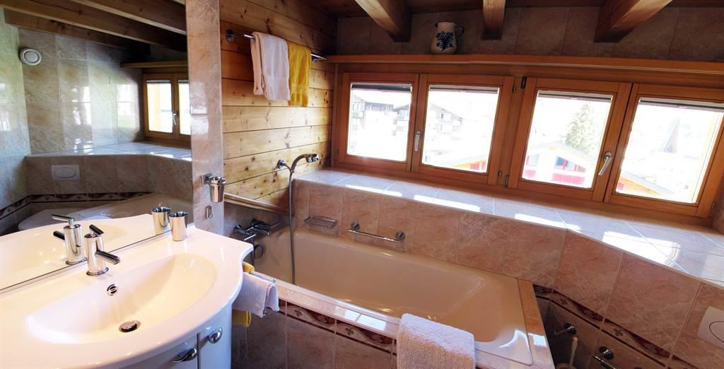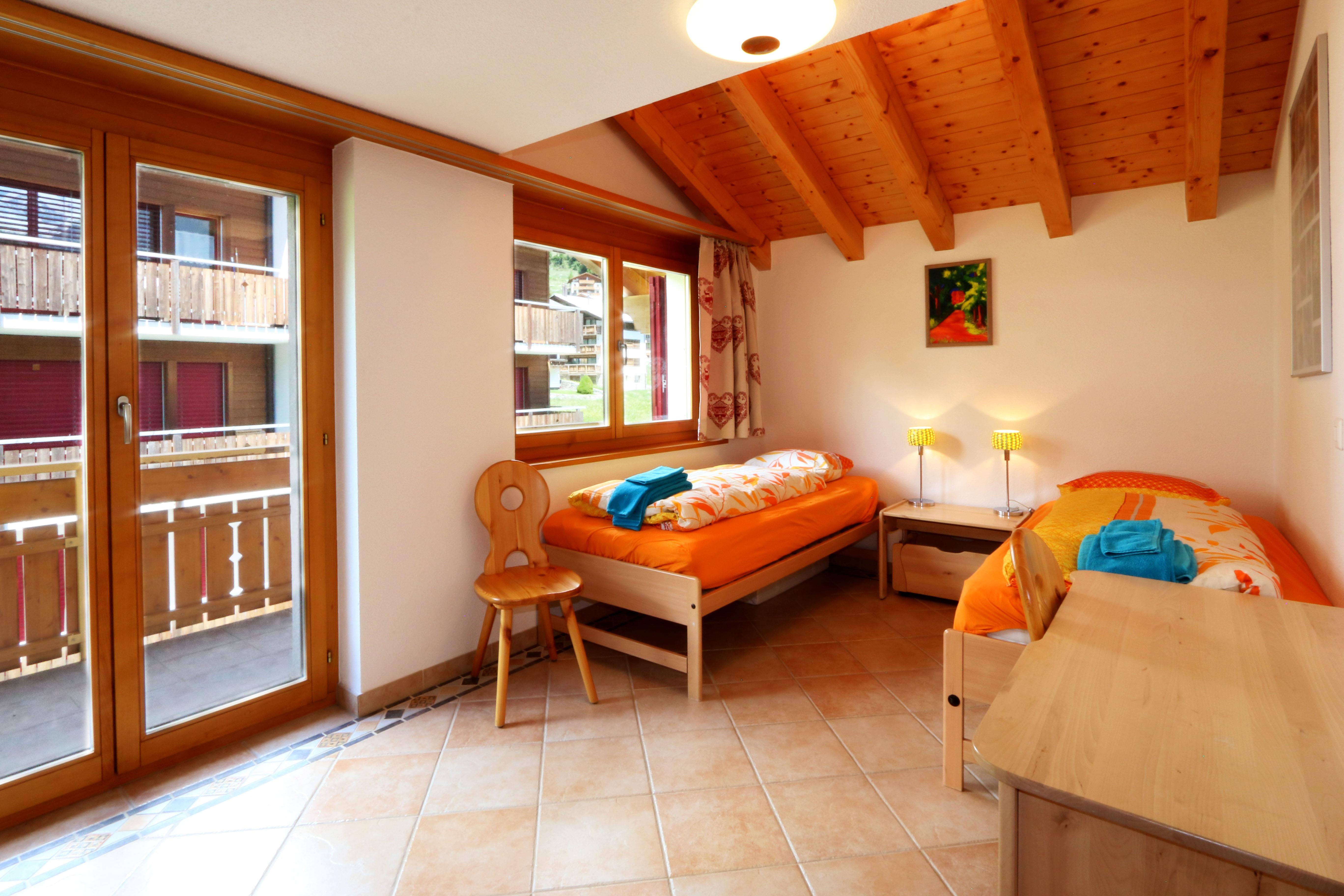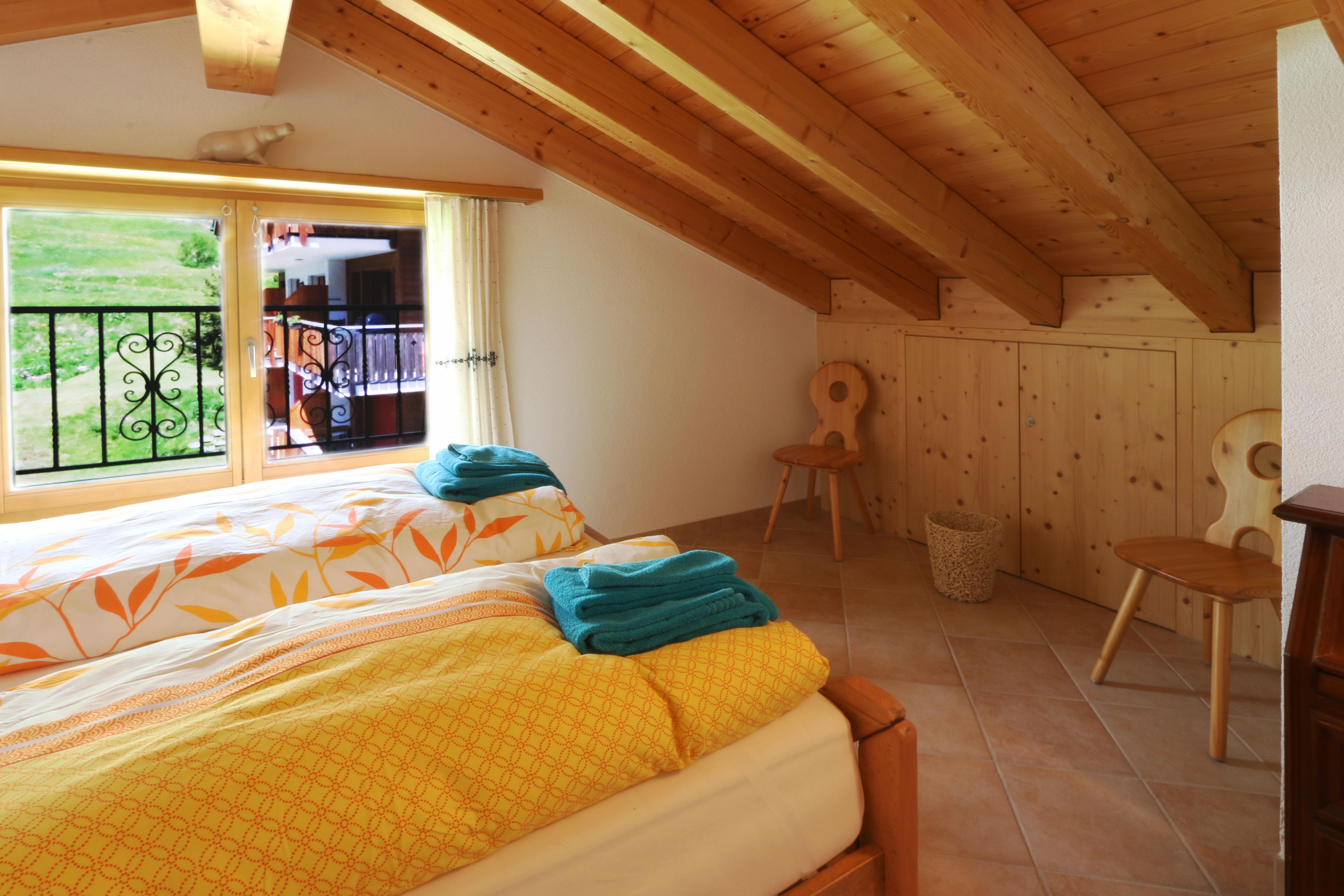 Diese Maisonette-Wohnung verfügt über ein Doppelzimmer, 1 Schlafzimmer mit zwei Einzelbetten, Dusche / WC, Bad / WC, großes Wohnzimmer mit Schlafsofa und Balkon mit herrlichem Panoramablick. Die Küche ist komplett ausgestattet und verfügt über einen Esstisch sowie direkten Zugang zum Balkon. Gratis Wifi. Im Gebäude stehen allen Gästen eine Sauna und ein Whirlpool zur Verfügung. Der Skiraum befindet sich im Erdgeschoss.