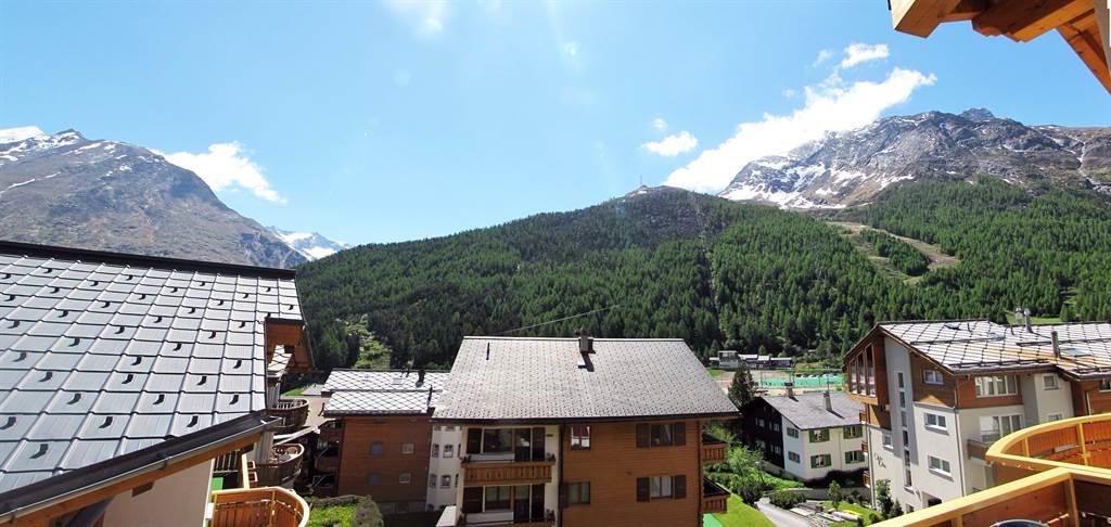 Wahrscheinlich eine der besten Lagen in Saas Fee! Dominic B (Ski in, Ski out) ist ein modernes Maisonette-Apartment mit 2 Schlafzimmern. Es liegt etwas erhöht neben dem Dorfzentrum direkt bei den Pisten. Schnallen Sie sich morgens die Skis an und fahren Sie als erste auf die frische Piste. Am Abend fahren Sie mit den Skiern direkt zu Ihrer Wohnungstür.