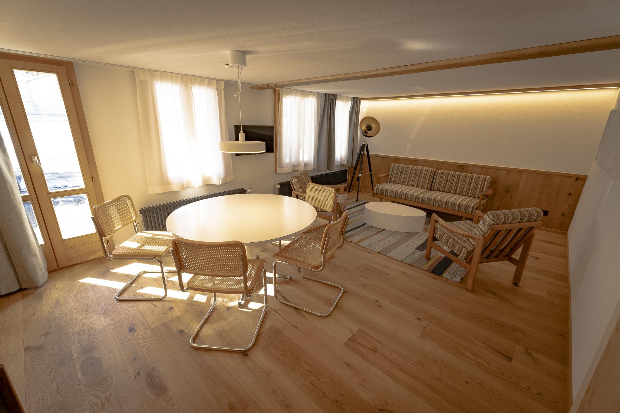 Die Wohnung wurde im 2024 neu renoviert. Sie bietet einen schönen Wohnraum mit Essecke, ein neues Bad mit Dusche, eine neue Küche und ein Schlafzimmer. Direkt vor dem Wohnraum befindet sich der Sitzplatz mit schöner Aussicht auf die Berge.