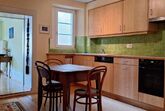 Im Inneren erwartet die Gäste ein großzügiger Eingangsbereich, der in den heißen Sommermonaten angenehm kühl bleibt. Rechter Hand öffnet sich eine Galerie voller Ölgemälde und Kunstobjekte, die das Auge erfreuen. Die große Küche im ersten Stock bietet einen einladenden Tisch für gemeinsame Mahlzeiten, während der angegliederte Essbereich mit seinem großen, ausziehbaren Holztisch, schönen Teppich sowie Pastell- und Ölgemälden für eine gemütliche Atmosphäre sorgt. Gegenüber der Küche lädt der Wohnbereich zum Entspannen ein, ergänzt durch eine kleinere Bibliothek für Leseratten. Die Bequemlichkeit wird durch zwei Ohrensessel und einen CD-Player noch erhöht. Im zweiten Stock befinden sich das Badezimmer, ein großes und ein kleines Schlafzimmer, beide mit genügend Ablagemöglichkeiten, einschließlich Einbauschränken und einer Kommode für eine komfortable Unterbringung.