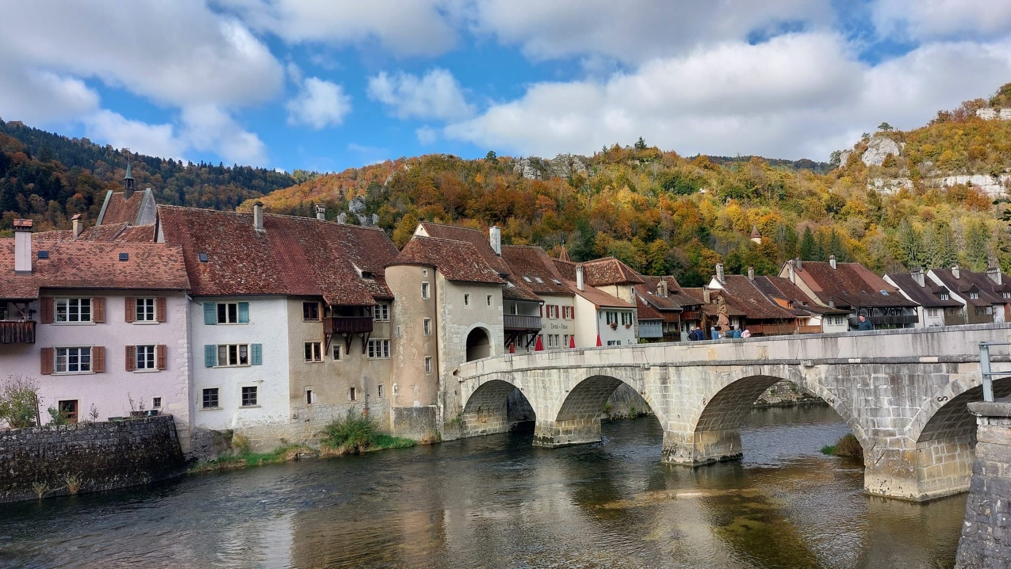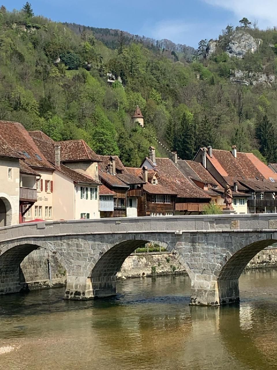 Außen schmiegt sich das Haus an die malerische Umgebung der Hauptgasse des mittelalterlichen Städtchens. Die Gäste können in die Atmosphäre von St-Ursanne eintauchen, indem sie durch die Umgebung schlendern oder die nahegelegenen kleinen Läden in Gehdistanz erkunden. Die außergewöhnliche Lage des Hauses verspricht einzigartige Impressionen direkt vor der Haustür.
