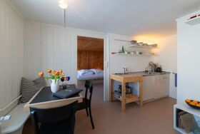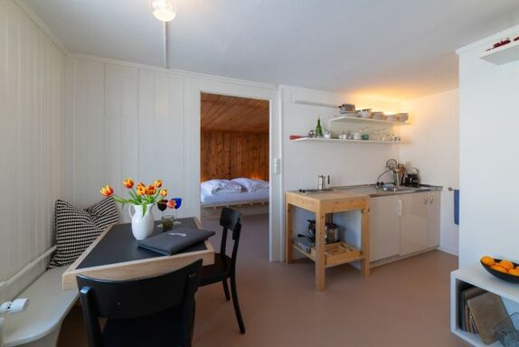 Die 2-Zimmer-Wohnung, die an das Ferienhaus Chammern angebaut ist, bietet Platz für zwei Personen und kann separat oder zum Haus dazu gemietet werden. Auf einer Ebene befinden sich eine offene Küche mit Essplatz, ein Badezimmer sowie im hinteren Bereich ein geräumiges Schlafzimmer. Im Winter wie auch im Sommer lädt das nah gelegene Skigebiet Wolzenalp zu den verschiedensten Aktivitäten wie Wandern, Schlitteln, Schneeschuhlaufen ein. Der Ort ist der ideale Ausgangspunkt für die verschiedensten Aktivitäten. Der Thurweg liegt vor der Haustür, aber auch rund ums Haus ist viel Platz zum Verweilen und Spielen. Die Wohnung wurde um 1900 ursprünglich als Stickereilokal erbaut; dies bezeugen die hohen Fenster, die viel Licht ins Innere bringen und heute einen schönen Blick auf die Landschaft bieten.
