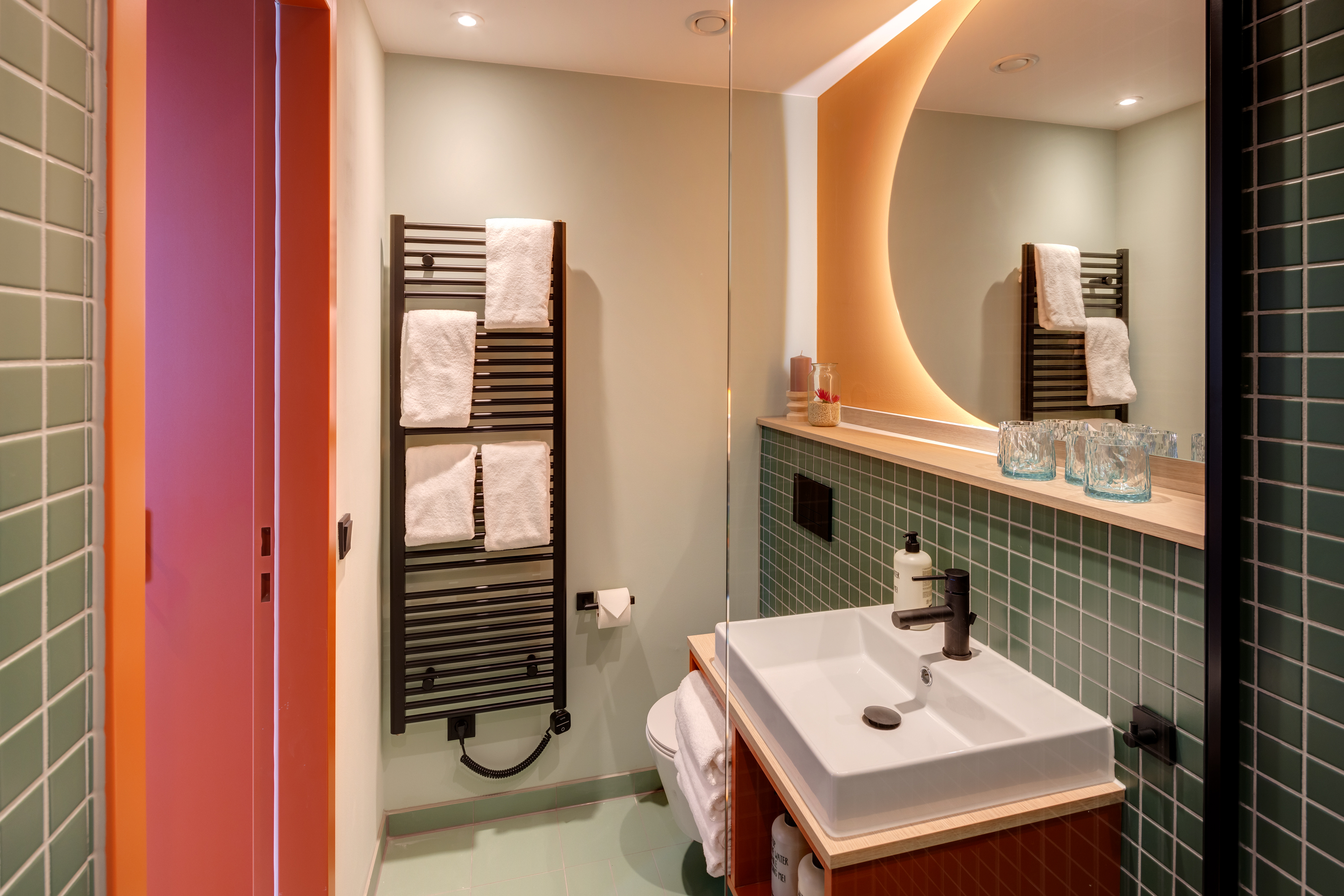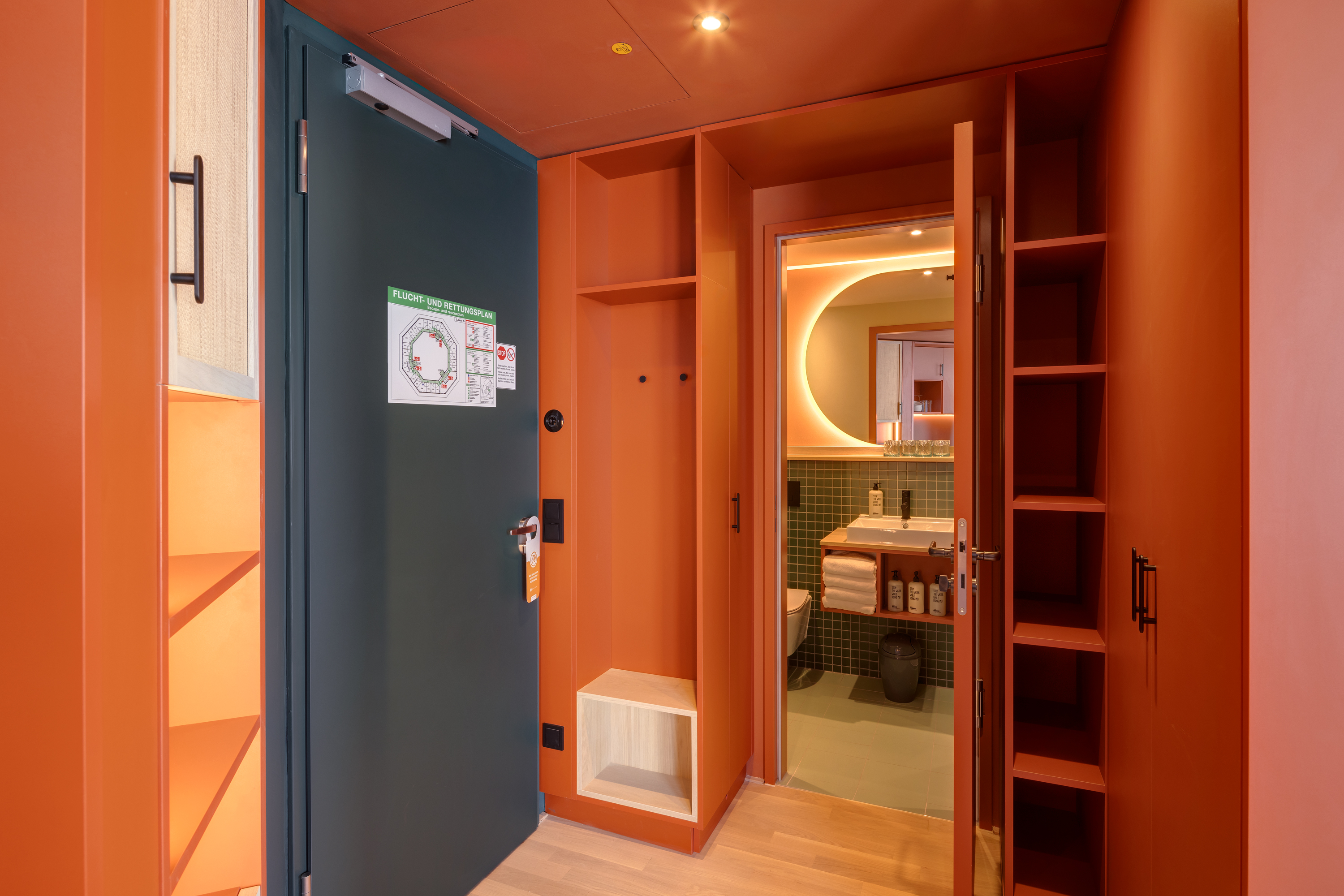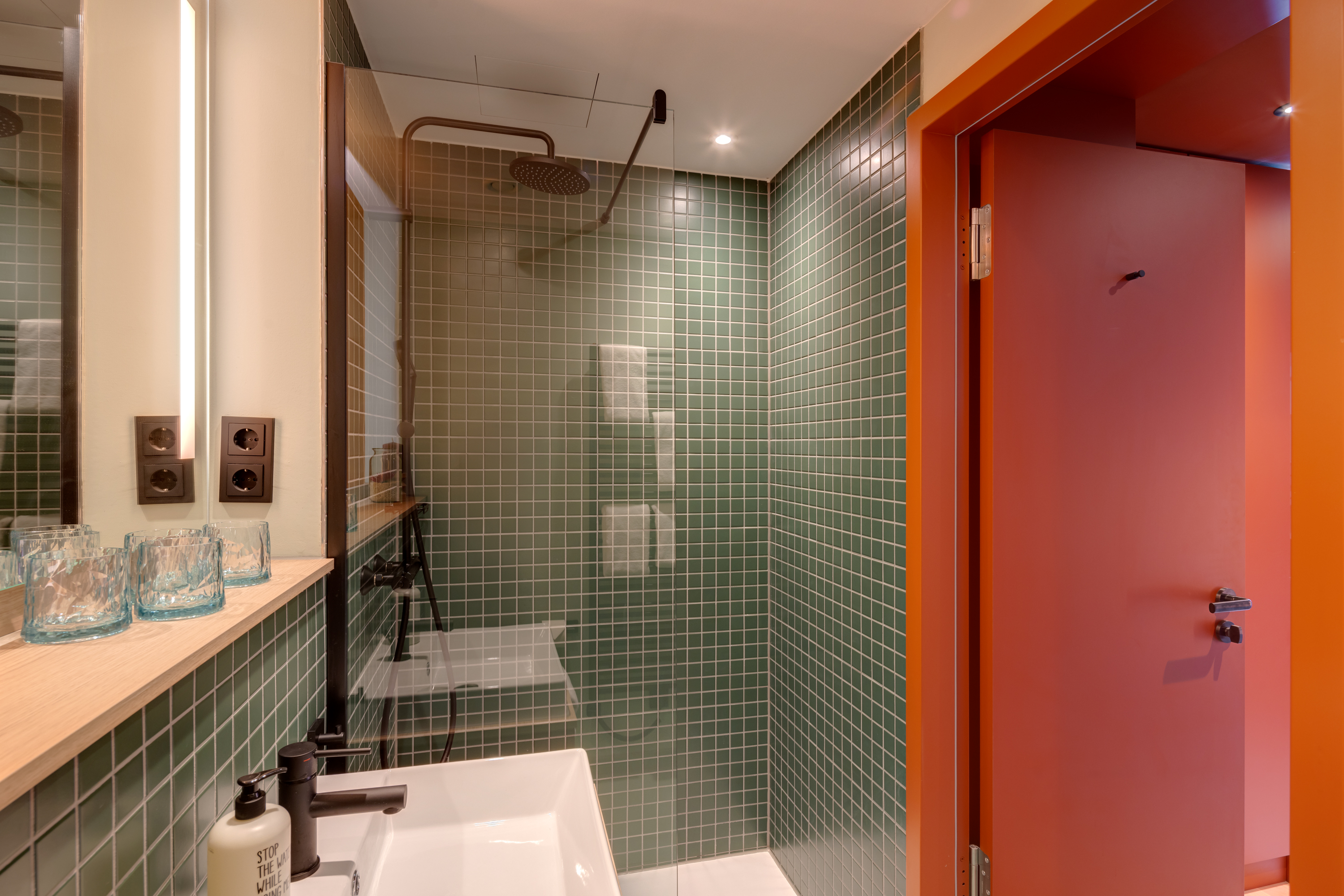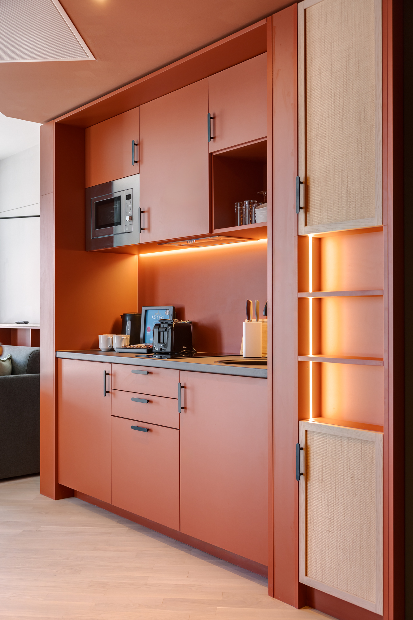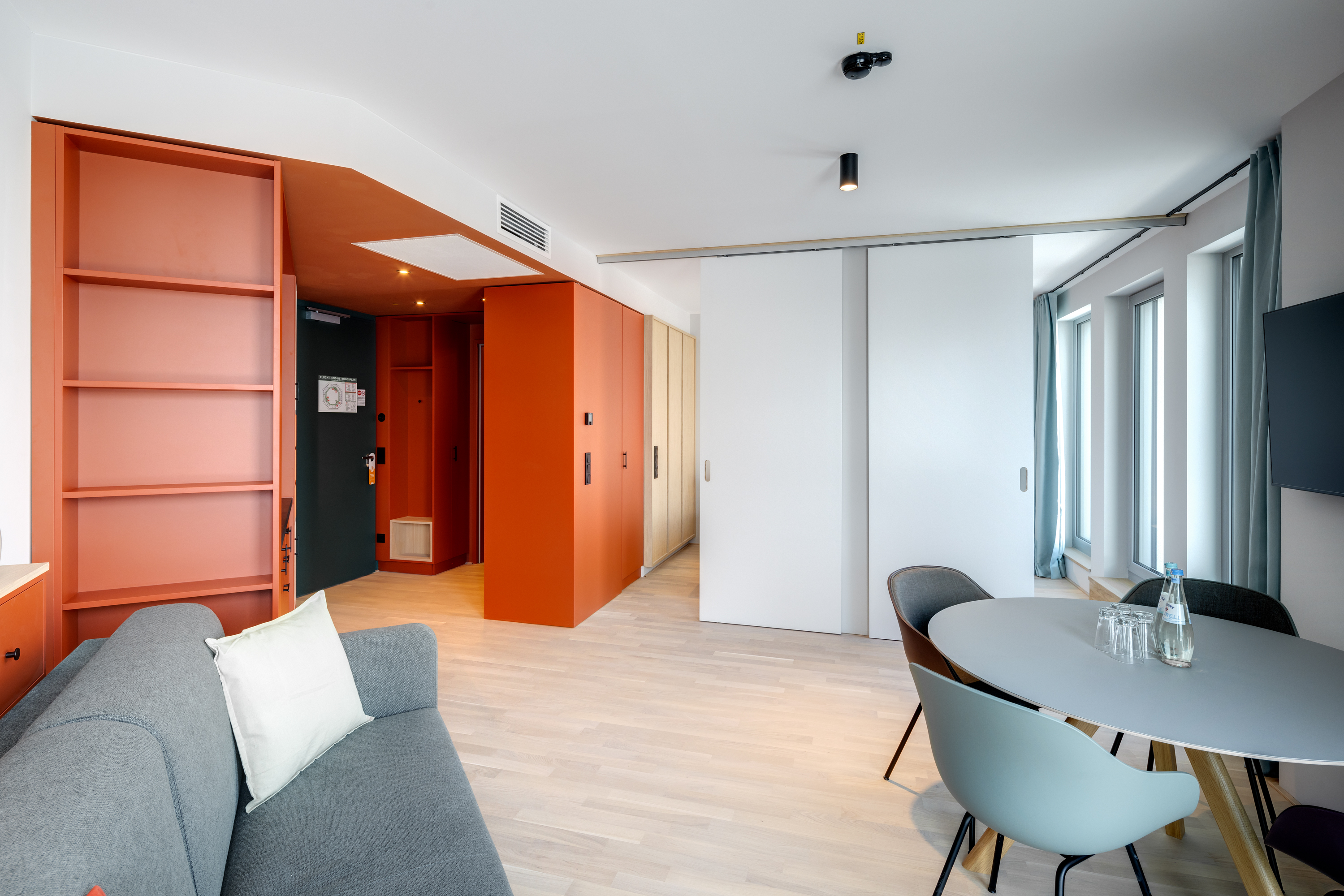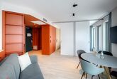 Ein-Zimmer-Apartment mit Dachterrasse und Panorama Ausblick auf die Stadt. Das Studio Superior bietet viel Platz für bis zu 4 Personen, was es auch ideal für Familien macht. Neben einen bequemen Doppelbett für den erholsamen Schlaf, verfügt das Studio zusätzlich über ein Schlafsofa oder Stockbettsofa. Egal ob Sie als Familie reisen oder einfach nur mehr Platz benötigen, das Studio Superior bietet Ihnen den Komfort und die Flexibilität, die Sie brauchen. Die geschmackvolle Einrichtung und das zeitgemäße Design schaffen eine angenehme Atmosphäre. Die Küchenzeile ist mit modernen Geräten wie Herd, Kühlschrank, eine Mikrowelle und Spülmaschine ausgestattet und bietet Ihnen die Möglichkeit, Ihre Lieblingsgerichte zuzubereiten. Im Badezimmer gibt es eine stilvolle begehbare Dusche, einen großen Handtuchheizkörper sowie einen großen Spiegel mit umlaufender LED-Beleuchtung über dem Waschbecken, der dem Raum Helligkeit und Weite verleiht.