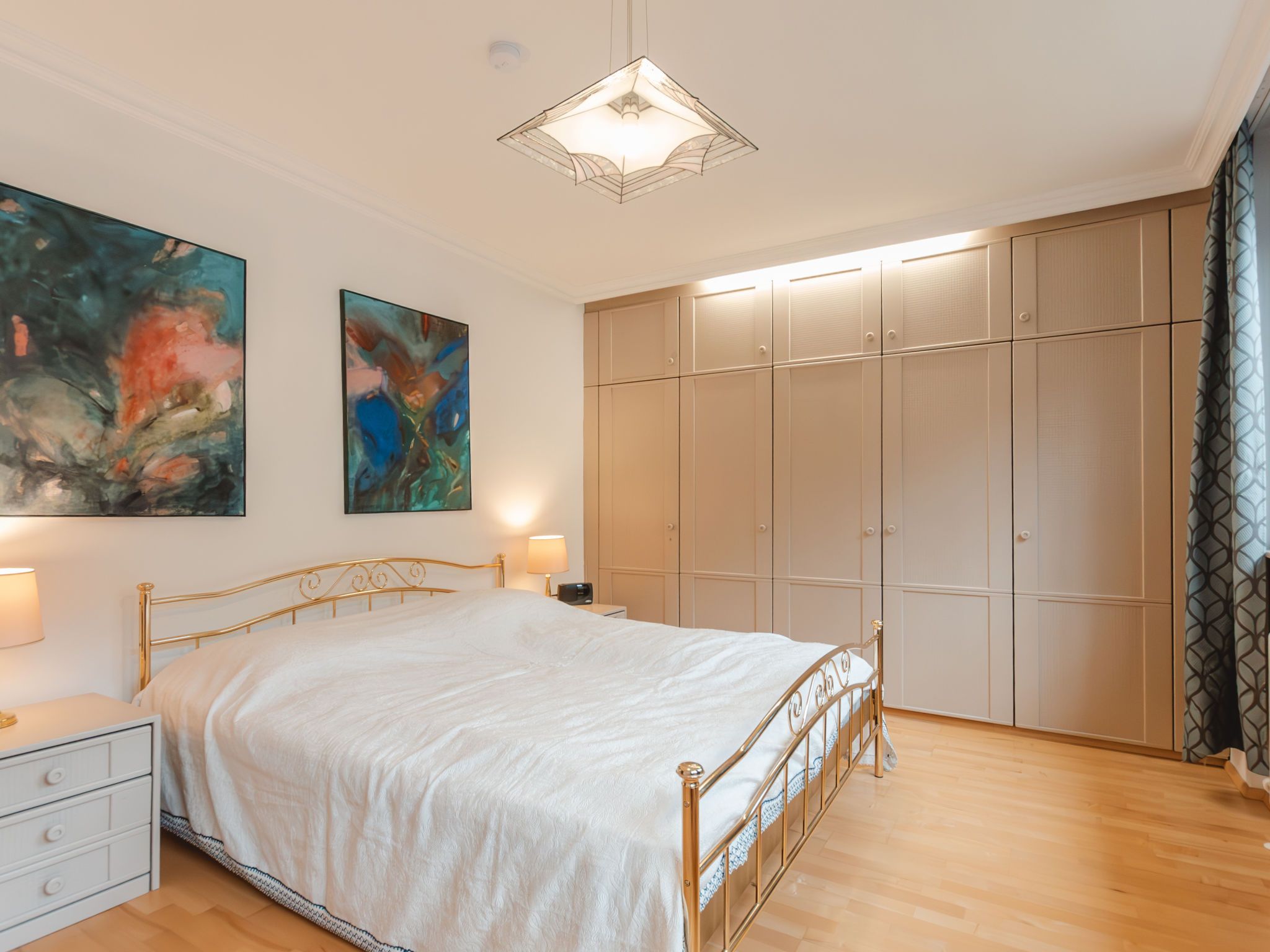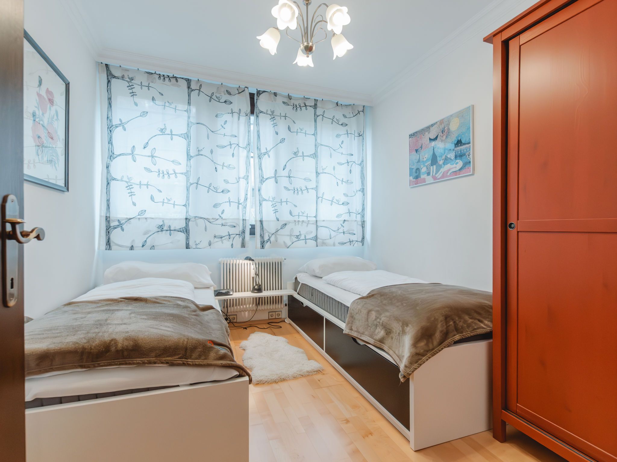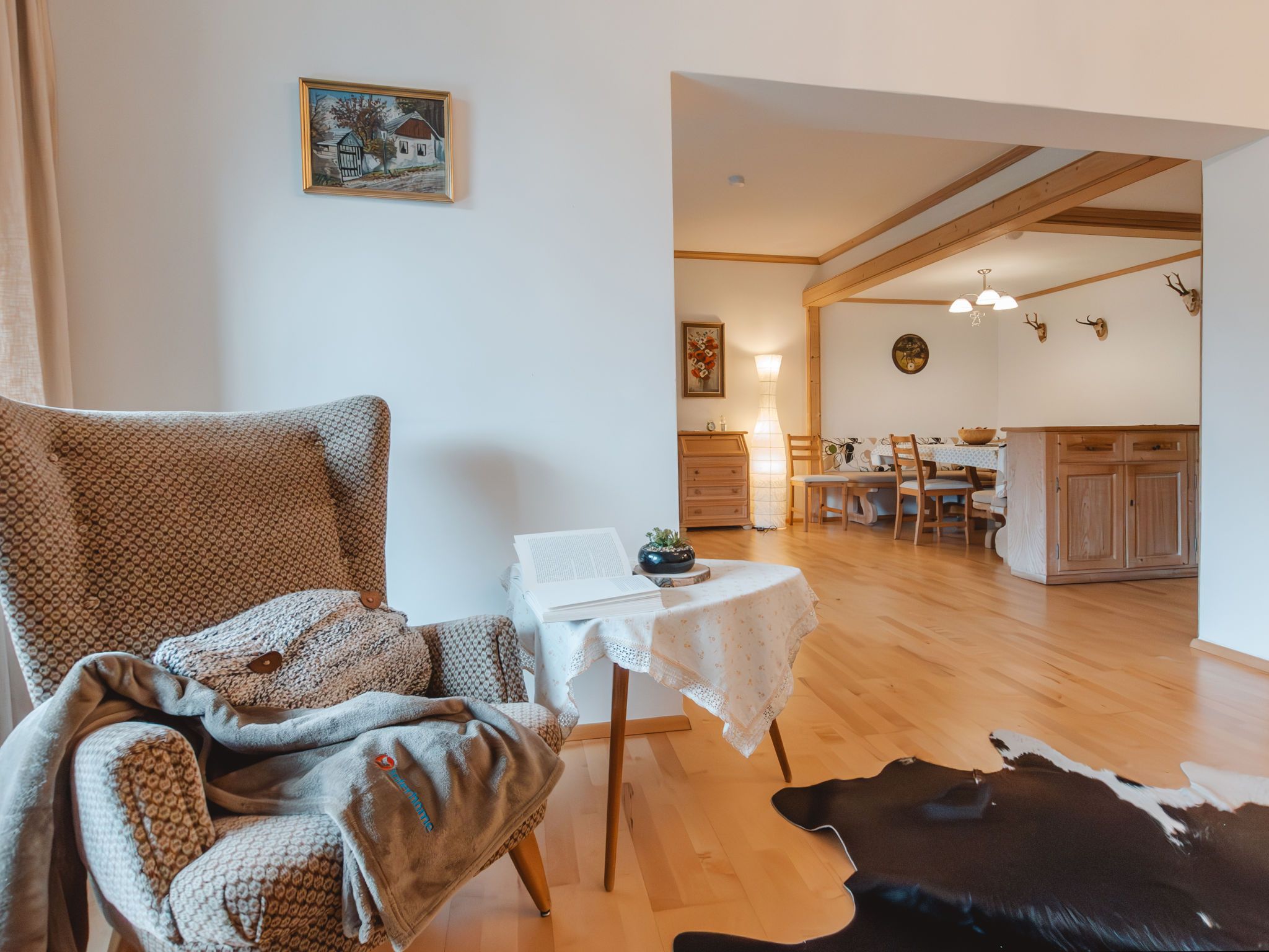 Friedrich, 3-Zimmer-Wohnung 90 m2 im 2. Stock. Objekt geeignet für 4 Erwachsene. Geräumig, modern eingerichtet: Eingang. Esszimmer mit Essecke. Ausgang zum Balkon. 1 Doppelzimmer. 1 Zimmer mit 2 Betten. Offenes Wohnzimmer mit 1 Doppeldiwanbett und Kabel-TV (Flachbildschirm). Kleine Küche (Backofen, Geschirrspüler, 4 Glaskeramikplatten, Toaster, Wasserkocher, elektrische Kaffeemaschine). Bad/WC, sep. WC. Grosser Balkon 8 m2. Schöne Sicht auf die Berge und die Ortschaft. Garage Nr. 71. Bitte beachten: geeignet für Familien. Nichtraucher-Unterkunft. Rauchmelder. 50402-000680-2020