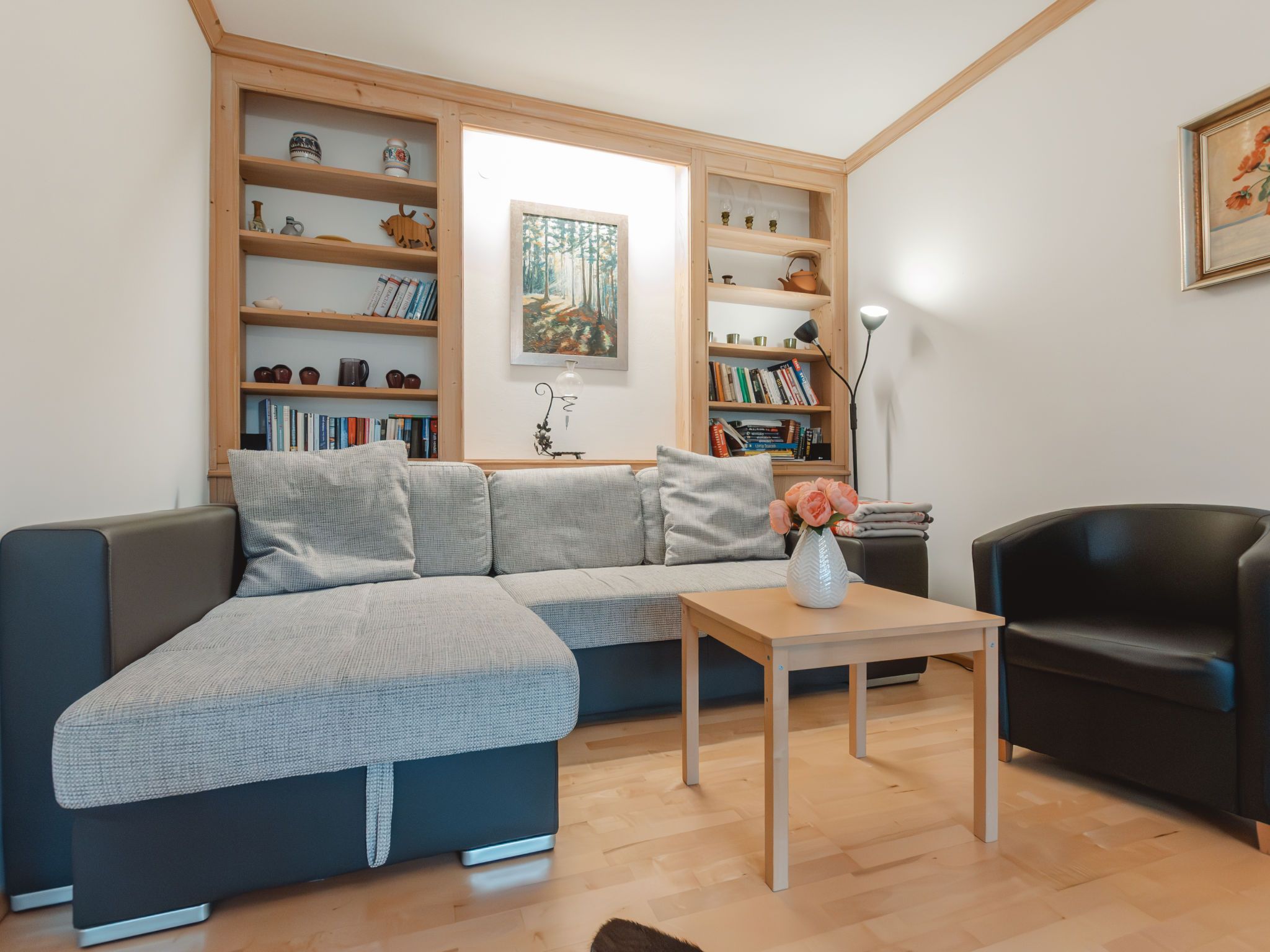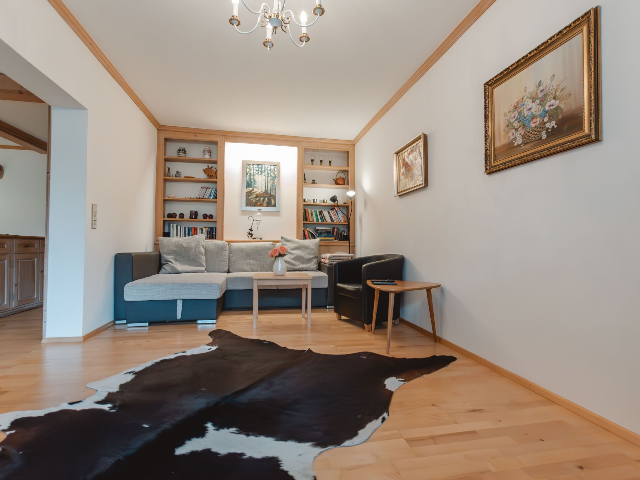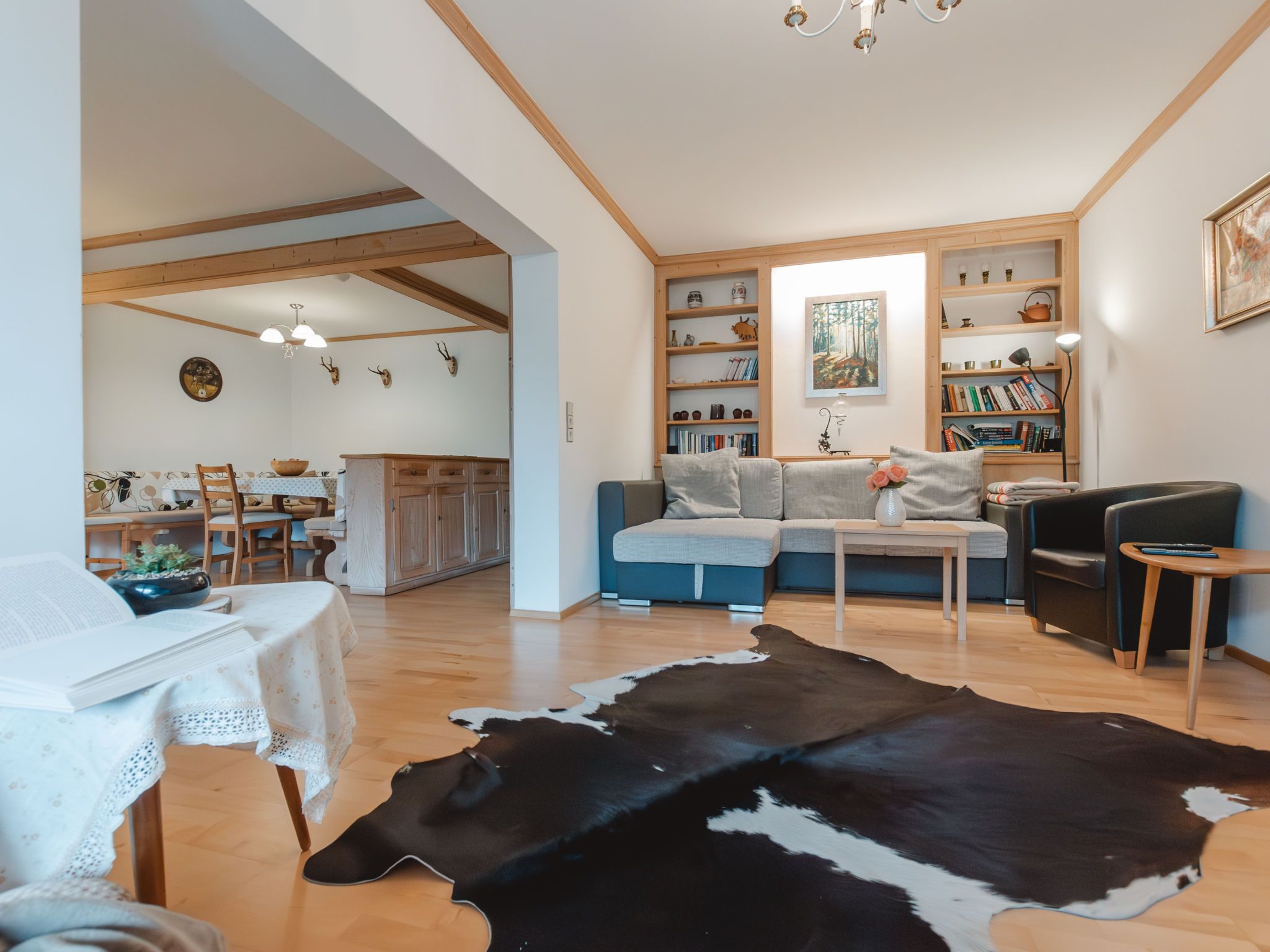 Friedrich, 3-Zimmer-Wohnung 90 m2 im 2. Stock. Objekt geeignet für 4 Erwachsene. Geräumig, modern eingerichtet: Eingang. Esszimmer mit Essecke. Ausgang zum Balkon. 1 Doppelzimmer. 1 Zimmer mit 2 Betten. Offenes Wohnzimmer mit 1 Doppeldiwanbett und Kabel-TV (Flachbildschirm). Kleine Küche (Backofen, Geschirrspüler, 4 Glaskeramikplatten, Toaster, Wasserkocher, elektrische Kaffeemaschine). Bad/WC, sep. WC. Grosser Balkon 8 m2. Schöne Sicht auf die Berge und die Ortschaft. Garage Nr. 71. Bitte beachten: geeignet für Familien. Nichtraucher-Unterkunft. Rauchmelder. 50402-000680-2020