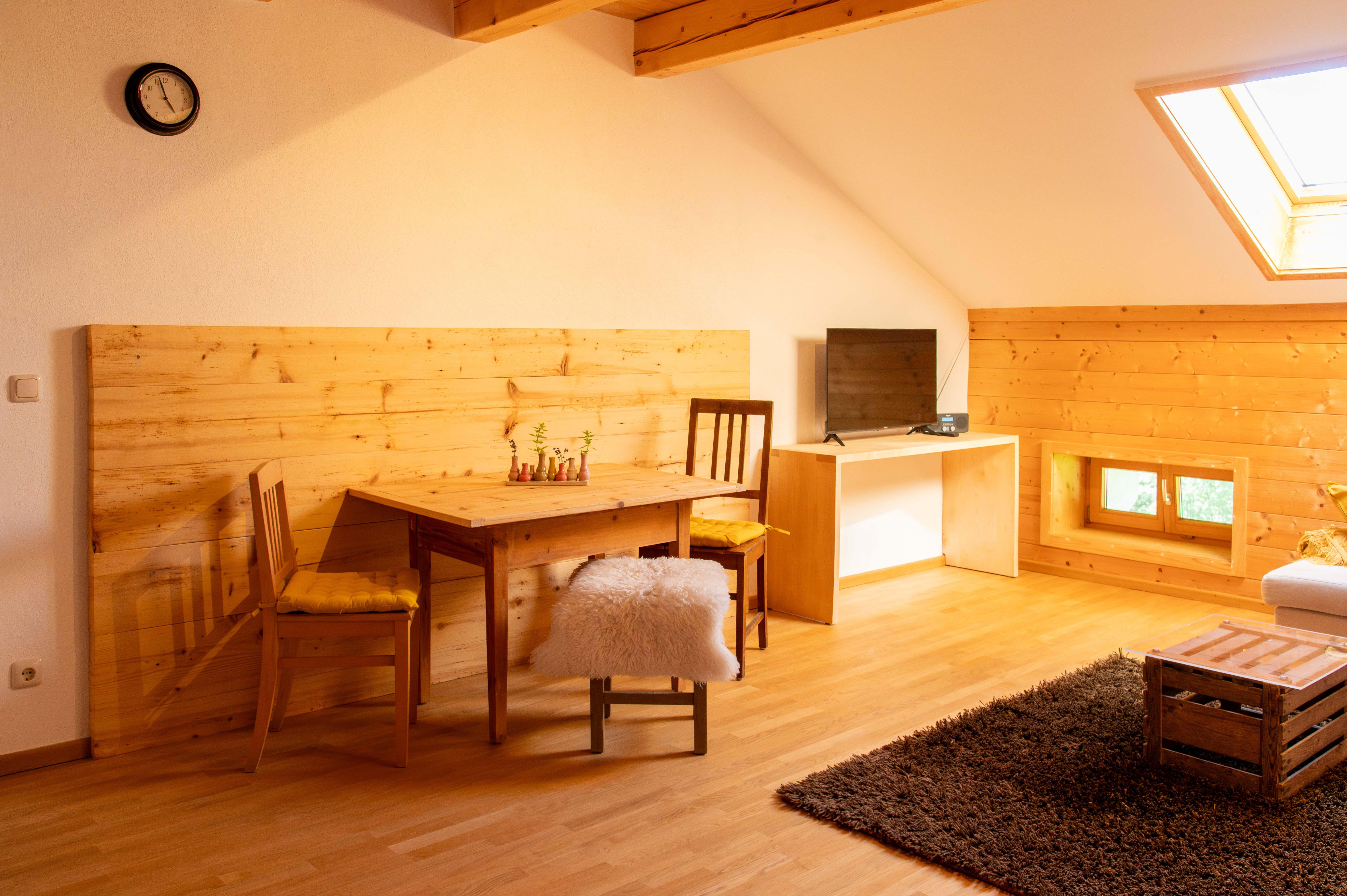 Neue Ferienwohnung im 2. Obergeschoß mit großer komfortablen Wohnküche, Küchenzeile mit Spülmaschine, 1 großes Schlafzimmer mit Doppelbett, Bad mit DU/WC und Fußbodenheizung, Sat-TV, seperater Eingang, Balkon mit Sitzgelegenheit, Nichtraucher. W-LAN