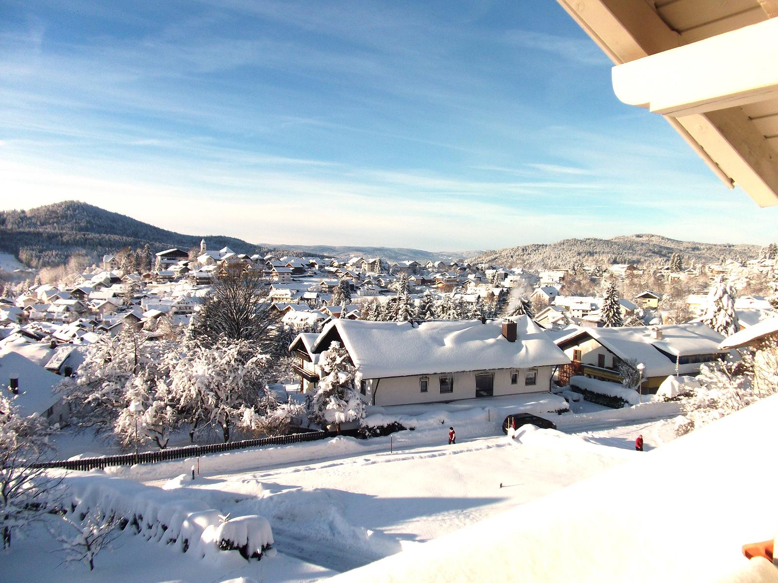 Bodenmais und die umliegenden Berge. Die sonnigen Balkone und Terrassen laden