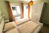 Im Schlafzimmer steht ein Doppelbett mit 2 Nachtkästchen und