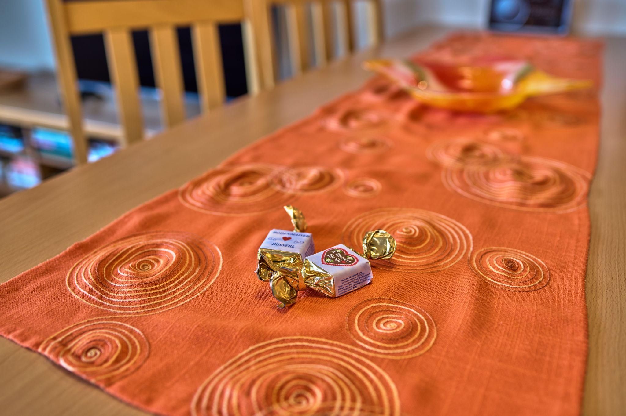 Tisch und Eckbank. Beides ist nach Süden ausgerichtet. Der Wohn/Kochbereich