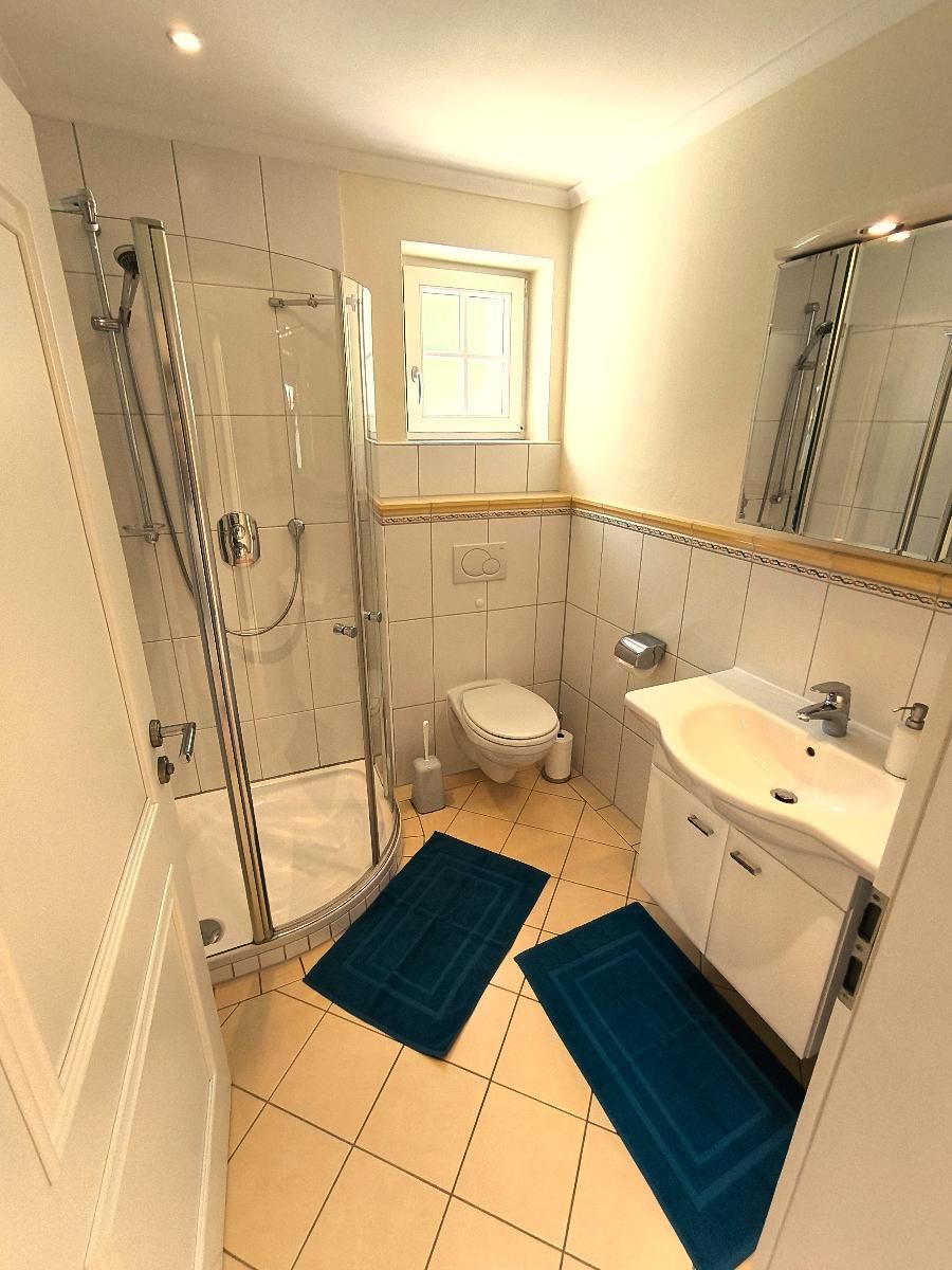 ist mit Dusche, WC und Waschbecken ausgestattet.