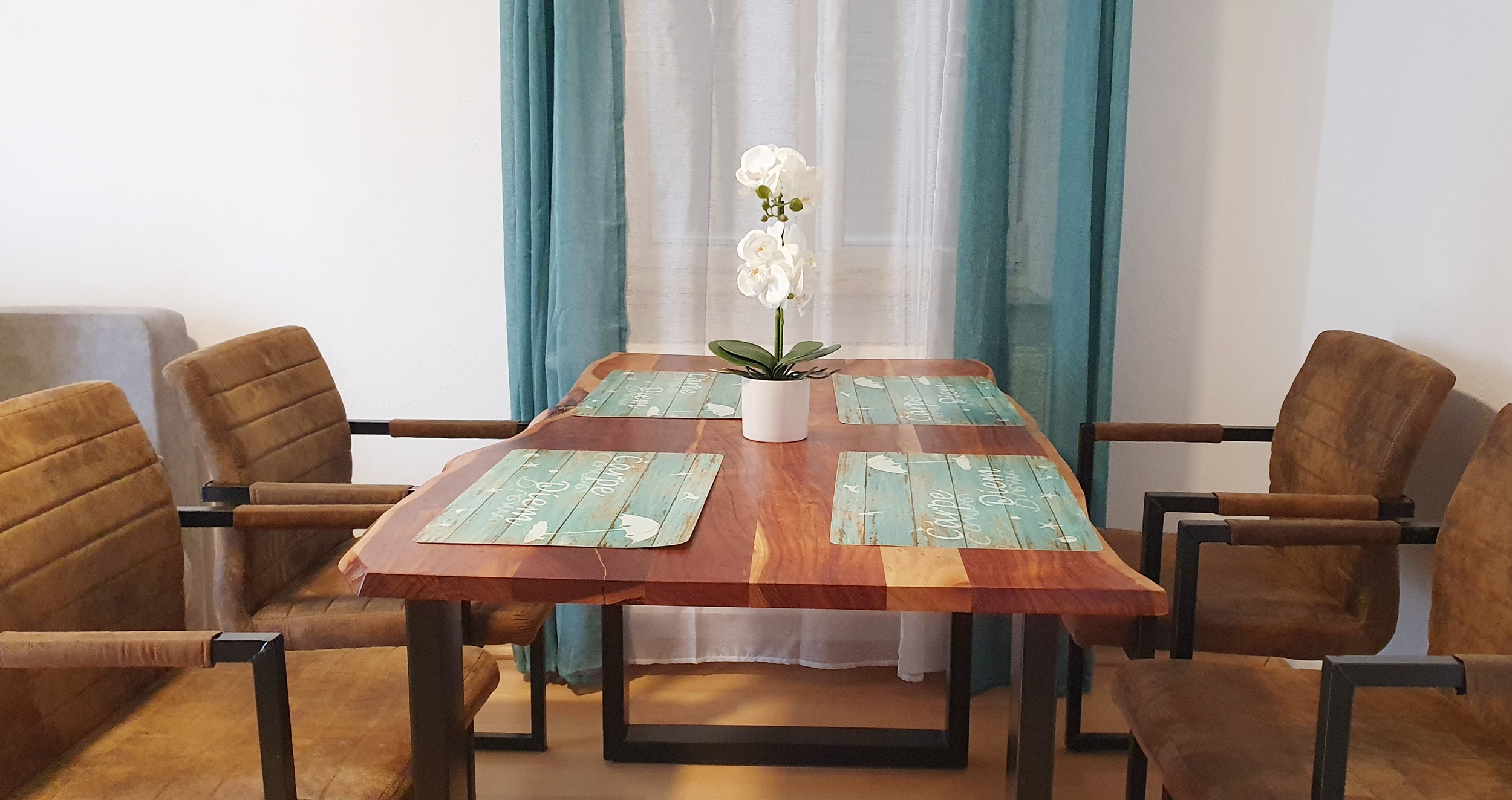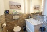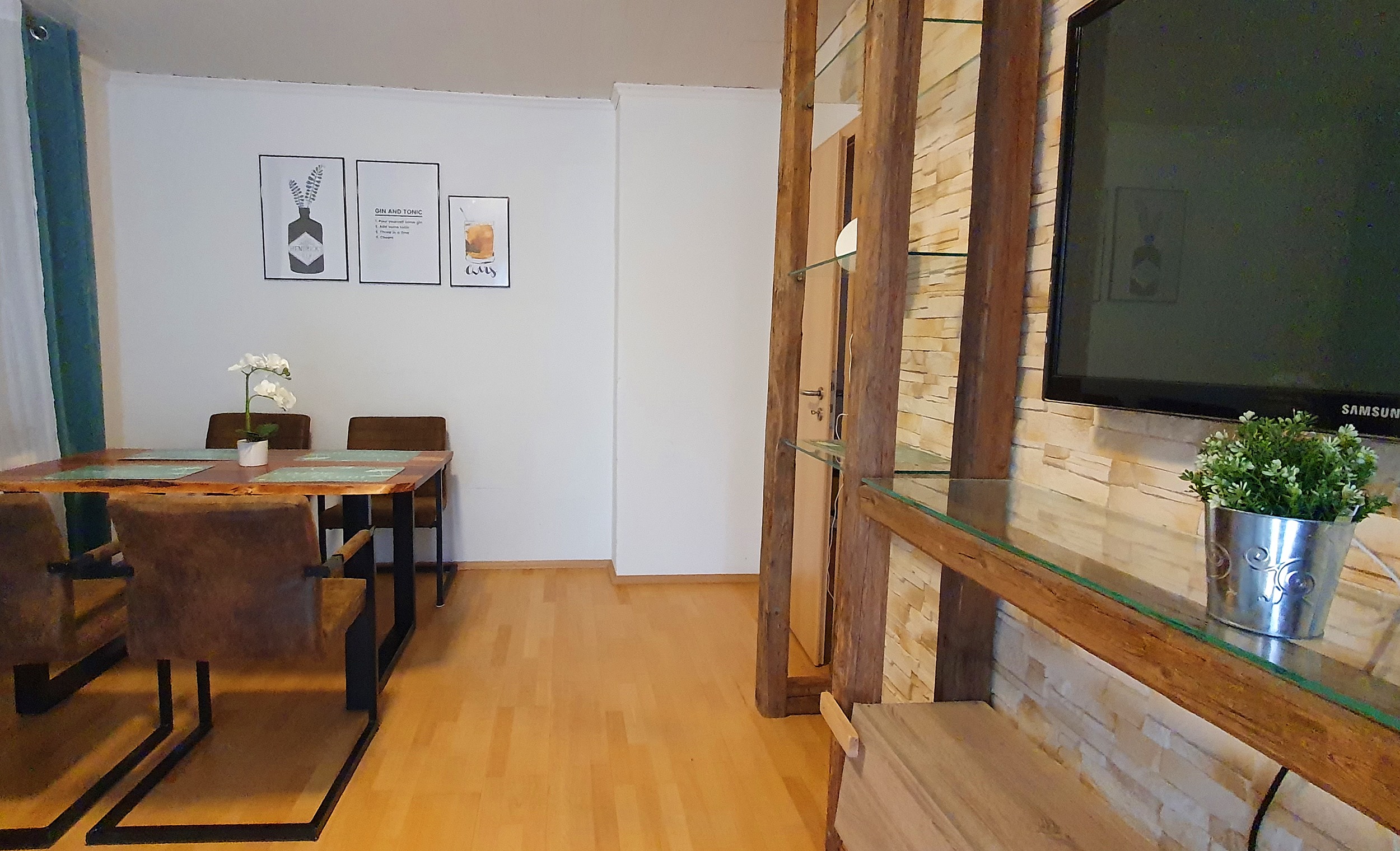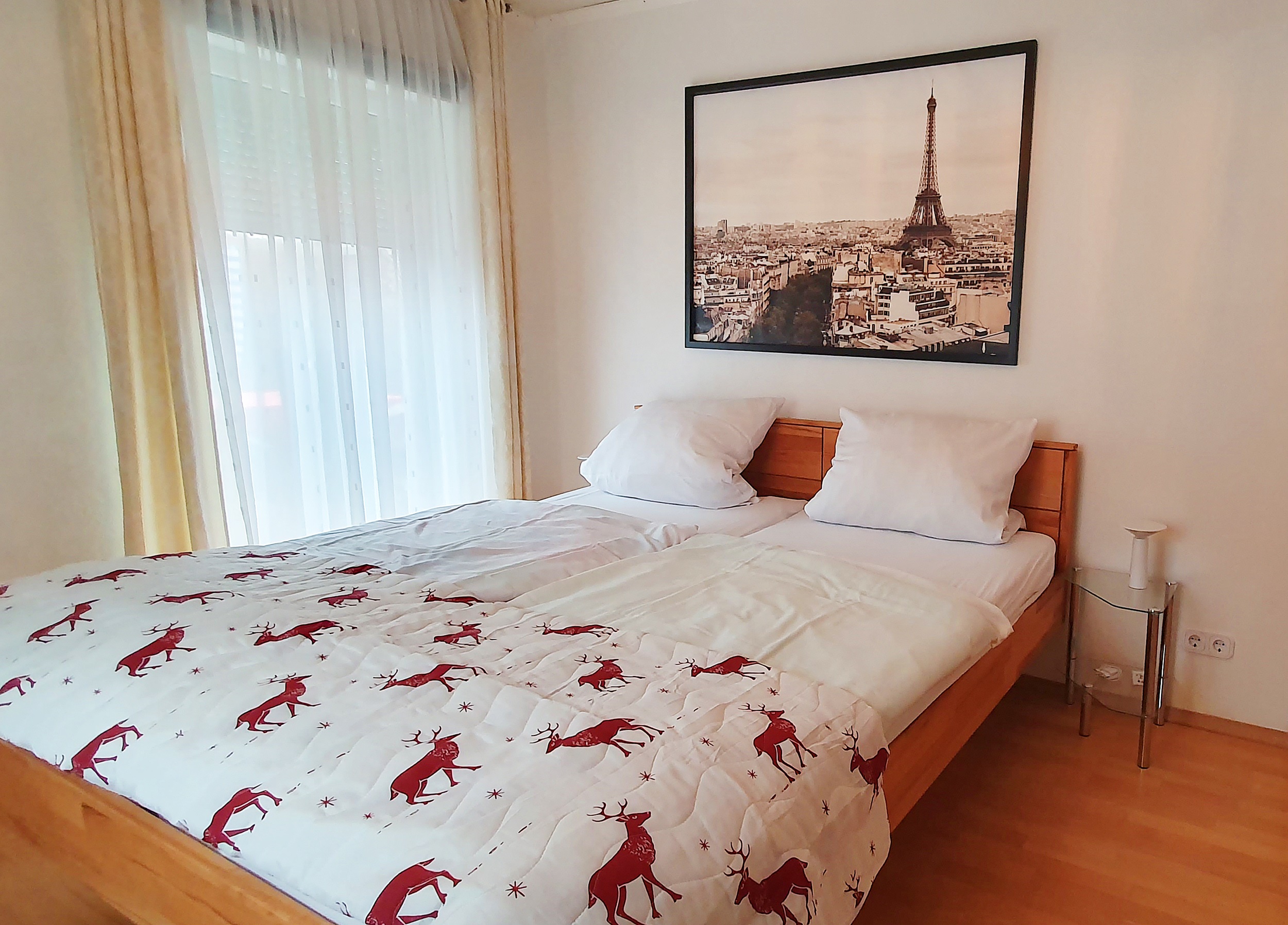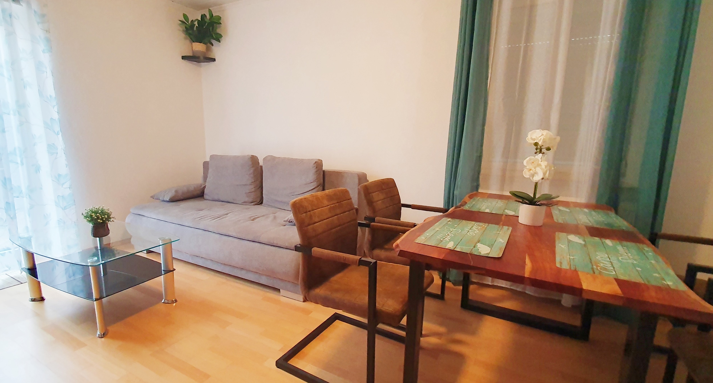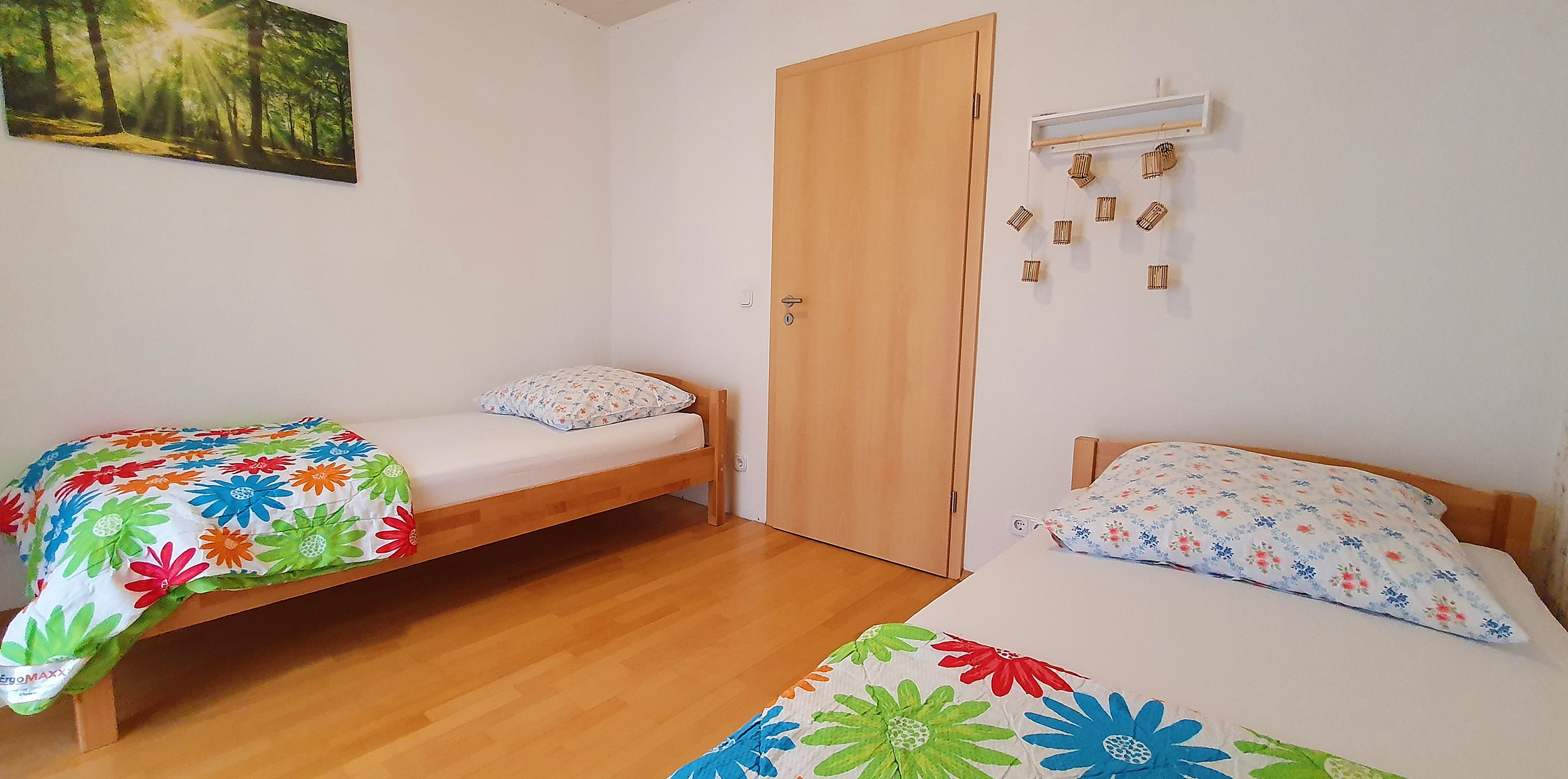Die 65m² große Ferienwohnung befindet sich im Erdgeschoss und kann mit zwei bis vier Personen belegt werden. In der Wohnung befindet sich eine voll ausgestattete Küche, ein Wohnzimmer mit Essecke, ein Schlafzimmer mit Doppelbett, ein Schlafzimmer mit Ausziehbett für zwei Personen sowie ein neu renoviertes Bad mit Dusche und WC. Von dieser Wohnung aus haben Sie Zutriitt auf die Terrasse. Geschirrspüler, Kaffeemaschine und Mikrowelle vorhanden.