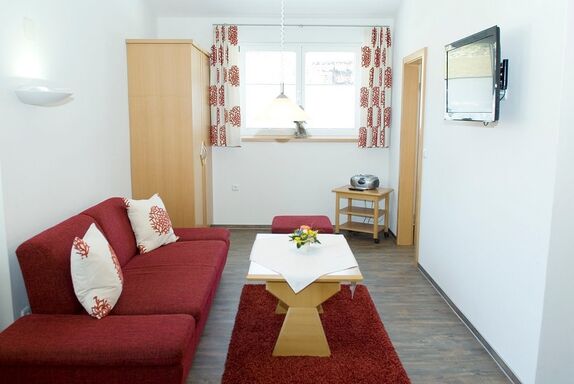 Die gemütliche, kleine Ferienwohnung mit Balkon befindet sich im Obergeschoss des Hauses. Sie bietet auf ca. 35 m² Platz für max. 4 Personen.