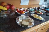 Sonstige Ausstattung: Duschgel, Seife, Kosmetikspiegel, Fön, Gästepantoffel.
