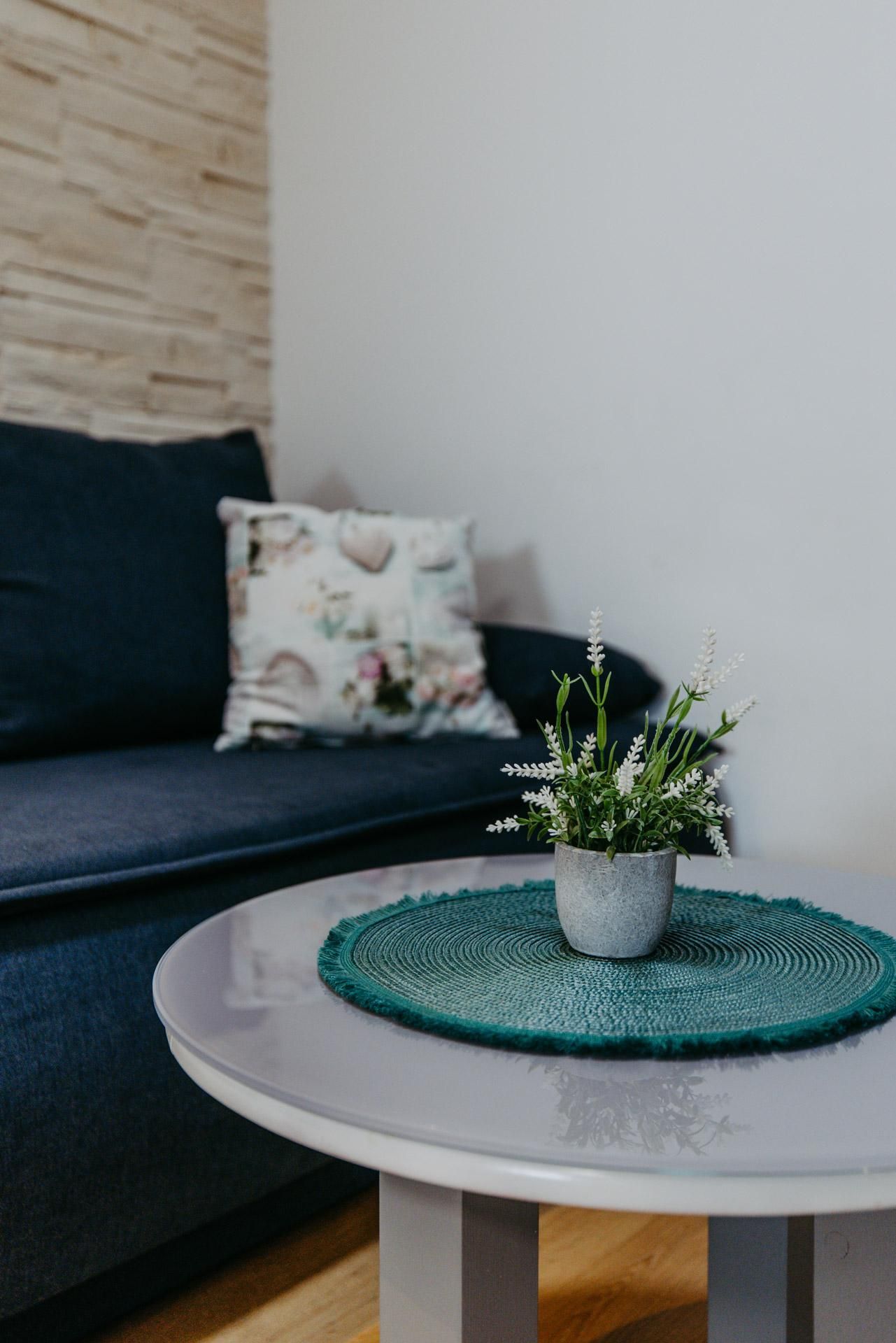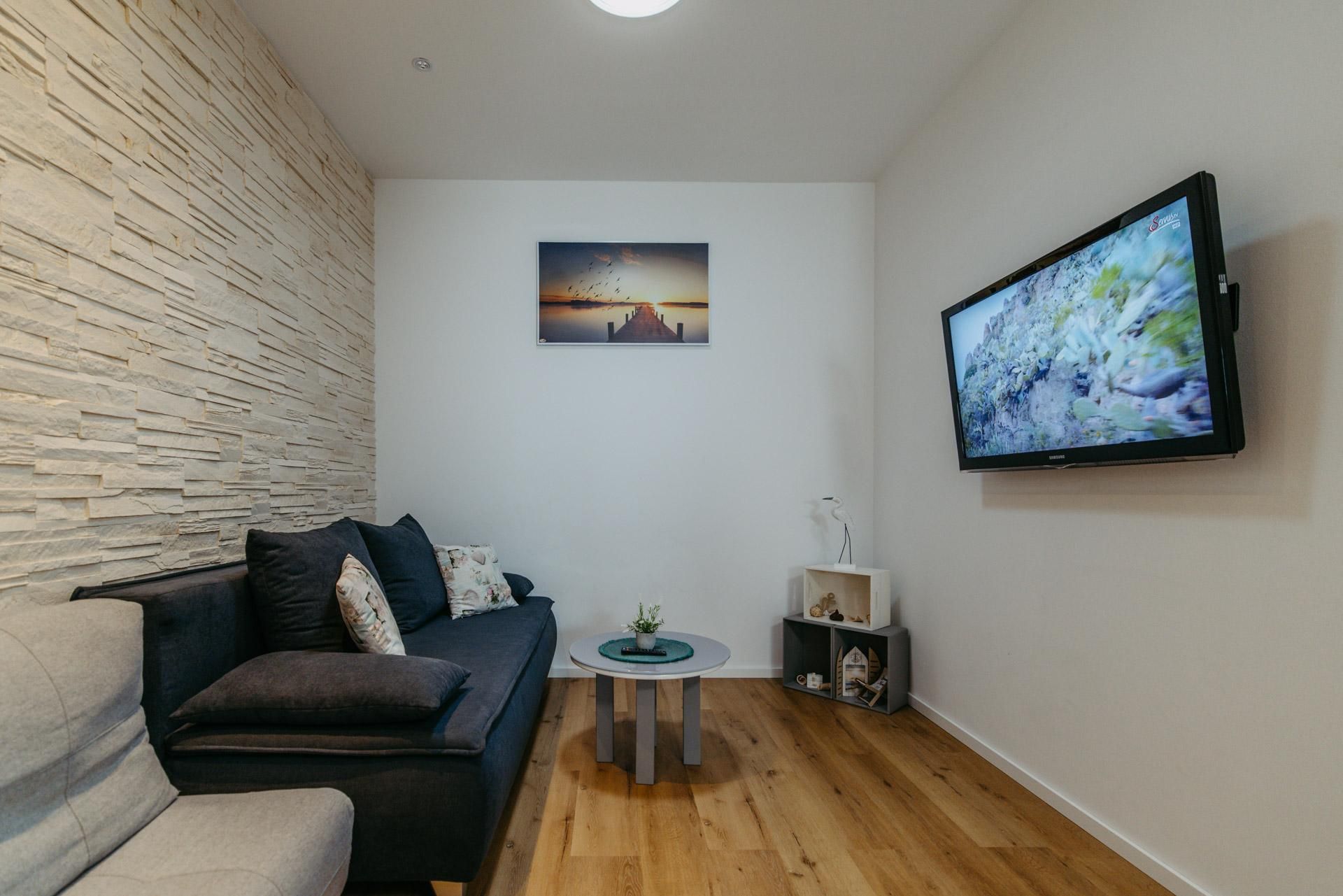 Ferienwohnung Marlena bietet eine Klimaanlage für heiße Sommertage. Im Eingangsbereich bietet sich eine gemütliche Ecke an, um den Tag mit der Morgensonne zu beginnen oder den Tag entspannt ausklingen zu lassen.