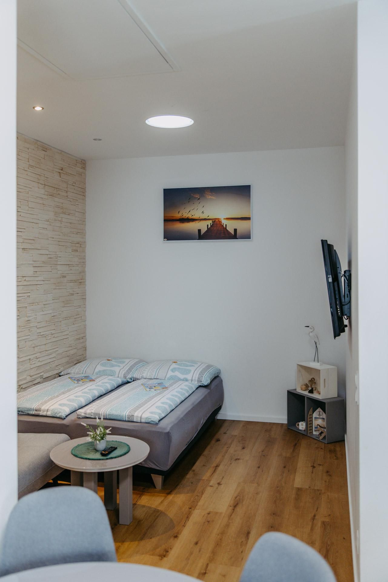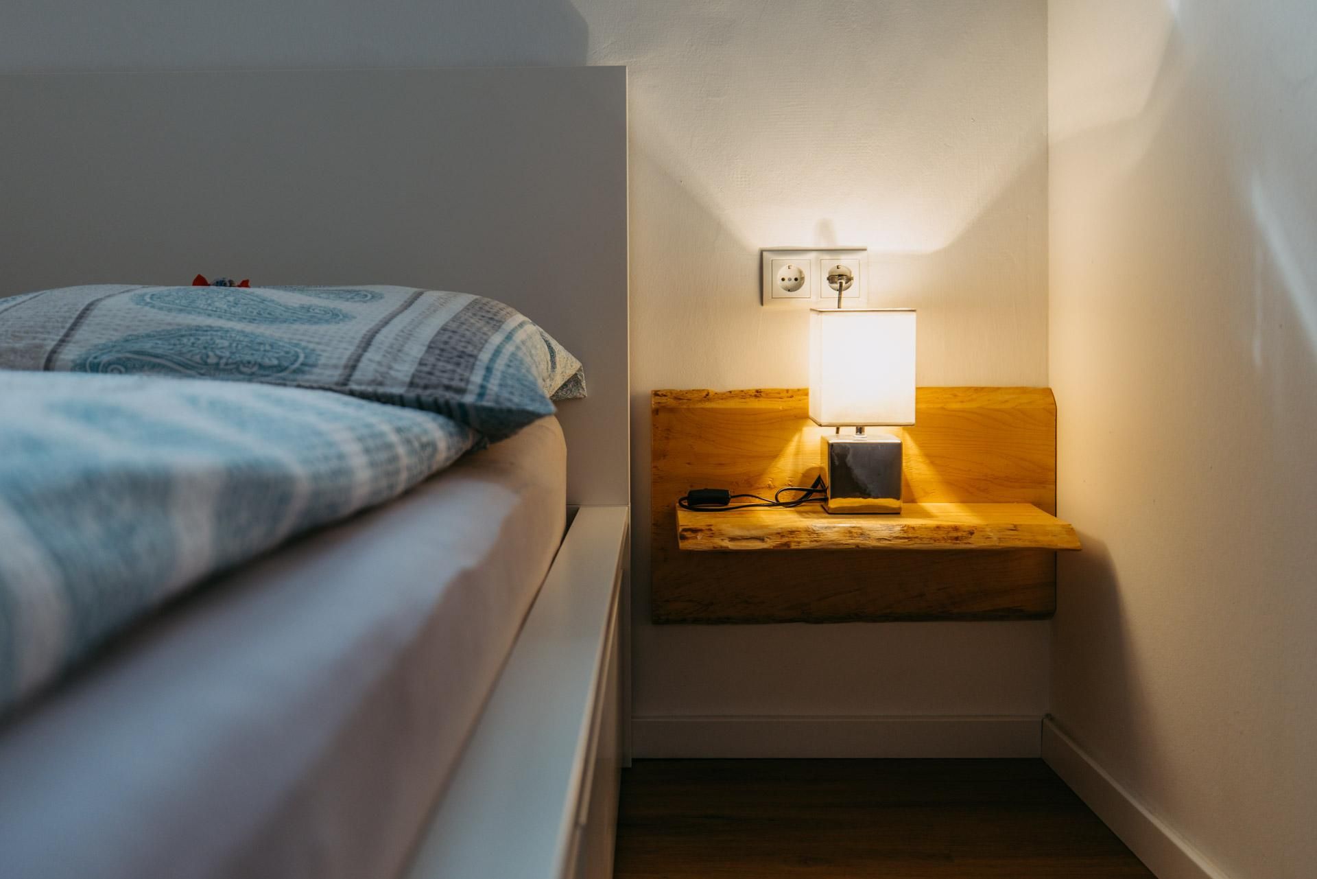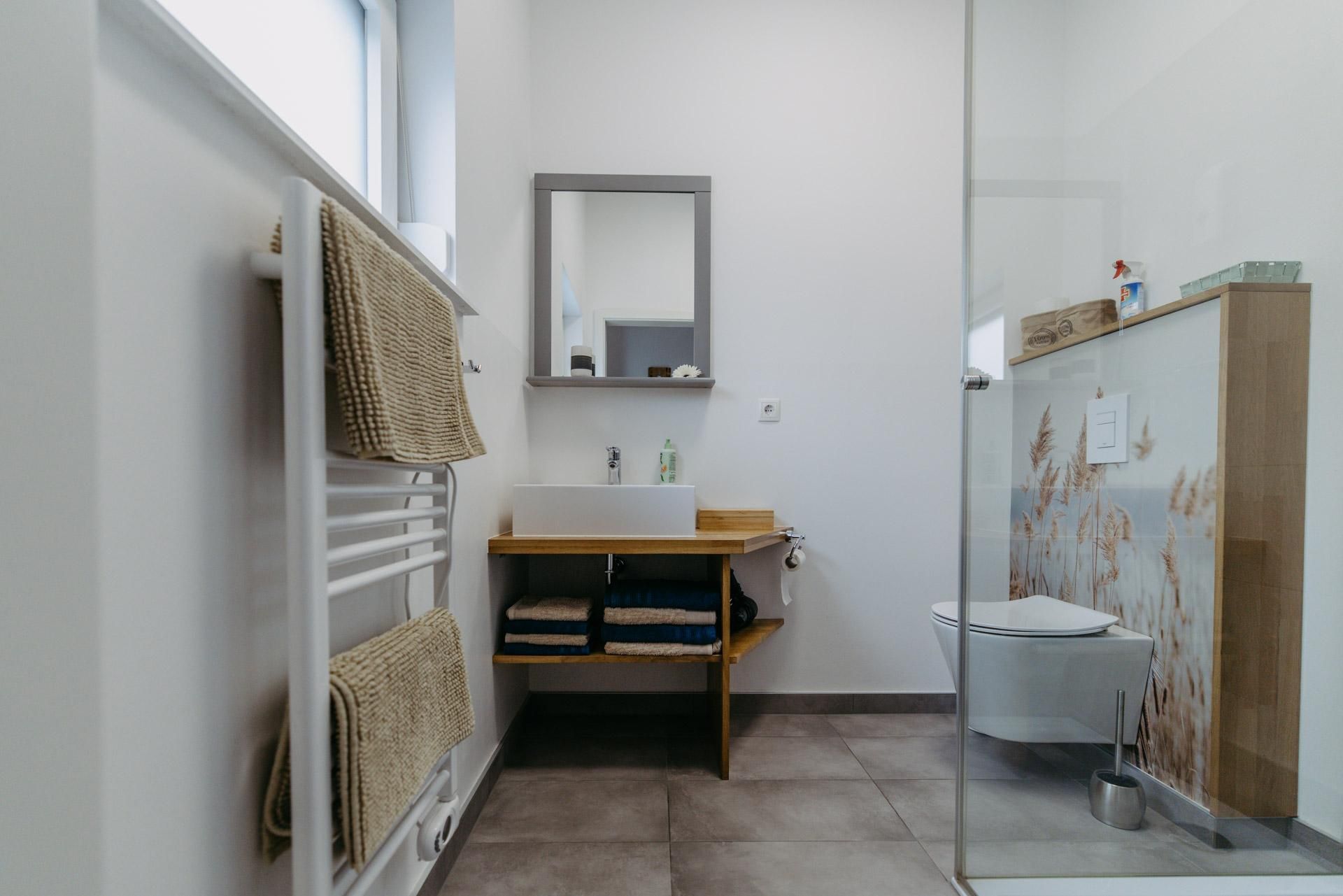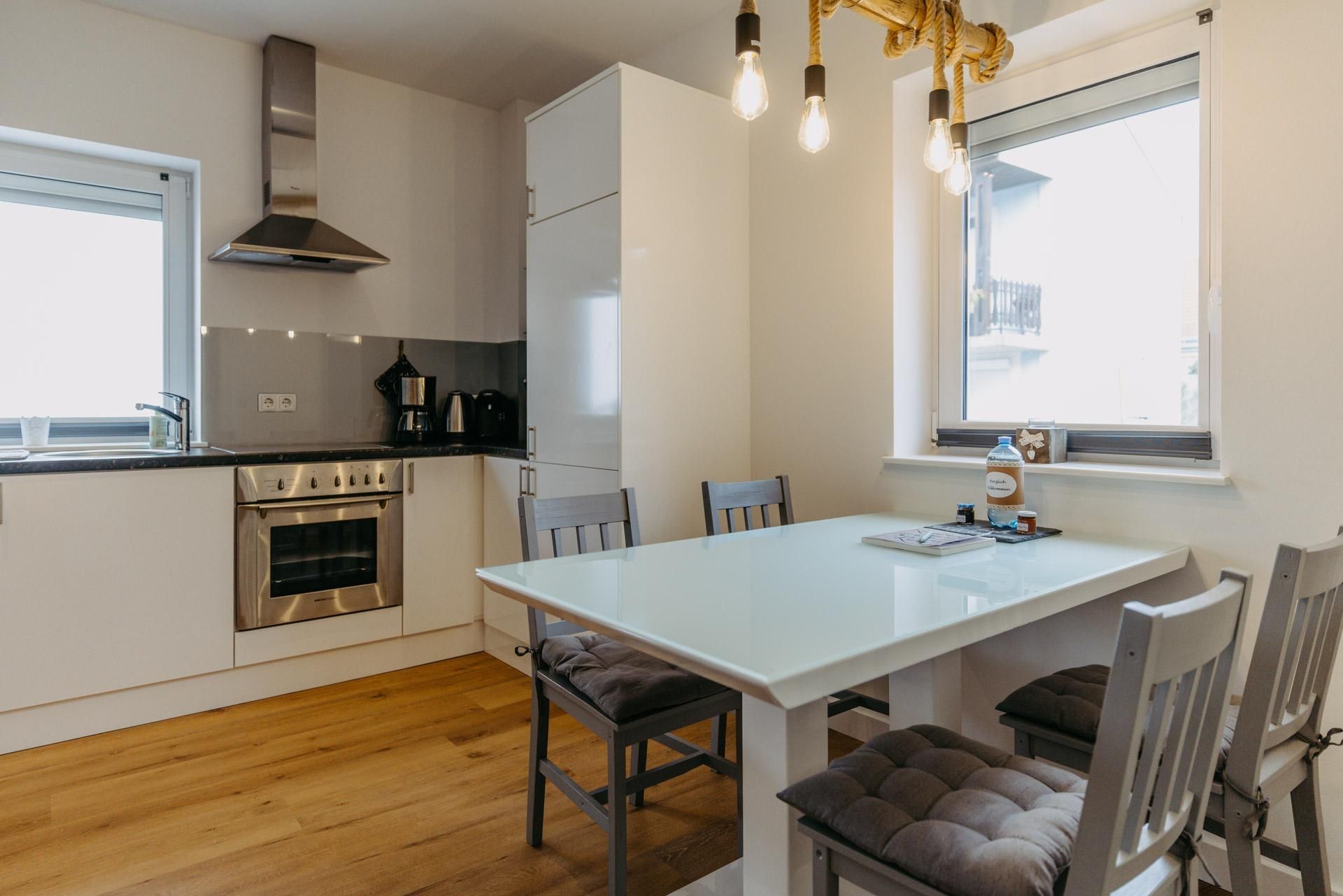 Unsere 45 m² Ferienwohnung Marlena unterteilt sich in einen sehr gemütlichen und mit viel Liebe eingerichteten Wohn-Essbereich. Die erstklassig ausgestattete offene Wohnküche bietet alles für ein gemeinsames Frühstück, Mittag- und Abendessen mit der ganzen Familie. Die Couch kann zum Schlafen von einer Person genutzt werden, aber auch ausgezogen für zwei Personen. Der große Flat-TV und das kostenlose WLAN sorgen für Unterhaltung bei Groß und Klein. Ein separates Schlafzimmer mit Doppelbett lädt zum gemütlichen Schlaf ein. Das modern eingerichtete Badezimmer ist mit WC und Dusche ausgestattet.