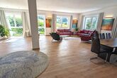 Ganz neu ist unsere mondäne Wohnung Suite Deluxe auf ca. 140 qm auf einer Ebene für bis zu 8 Personen entstanden - ohne Stufen und mit ebenerdiger kleiner Terrasse und an den angrenzenden Wiesen.