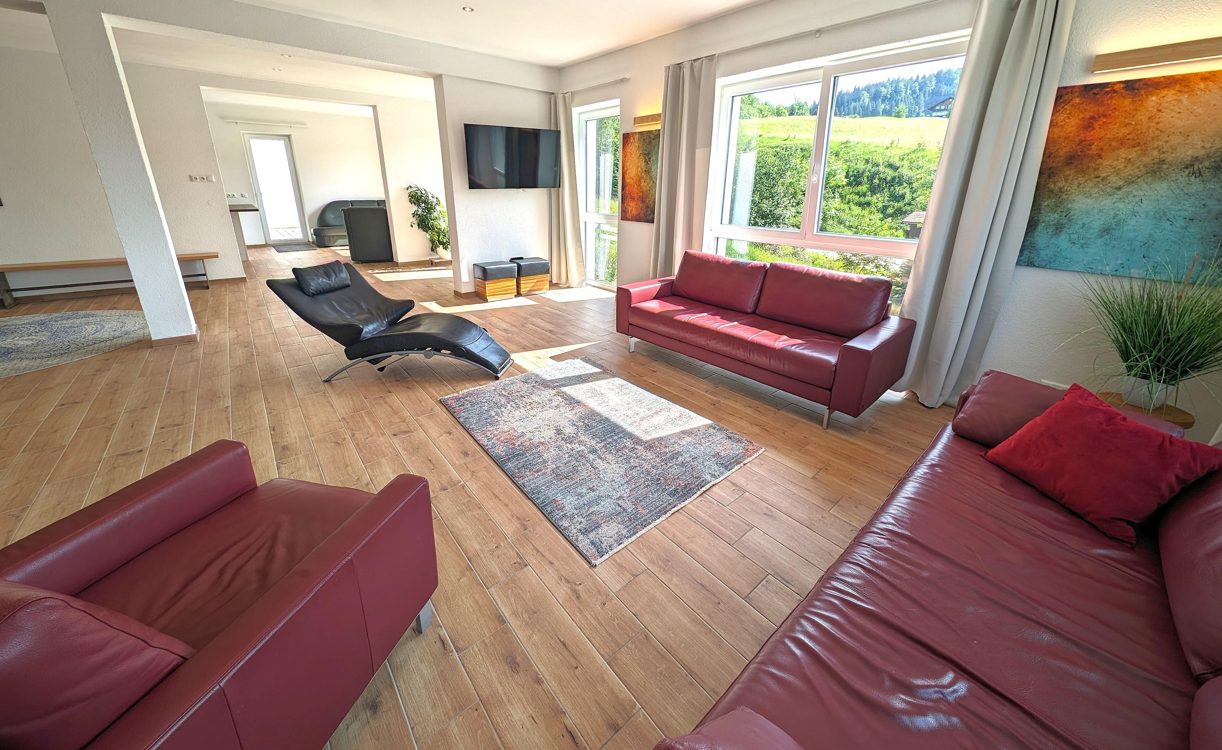 Die Suite Deluxe soll Ihnen noch mehr Exklusivität bringen - dafür sorgt der XXL Wohn/Essbereich mit riesigen Fensterfronten nach Norden und Westen für sonnendurchfluteten Stunden im Herzen Allgäus. Auch ansonsten haben wir uns viel Mühe gegeben, damit Ihnen an nichts fehlt - Allgäu auf moderne Art.