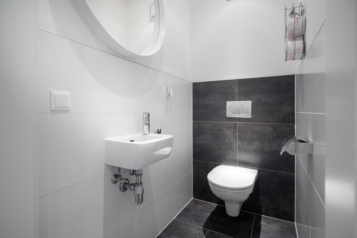 -> ein Badezimmer mit Regendusche, Toilette und Bidet